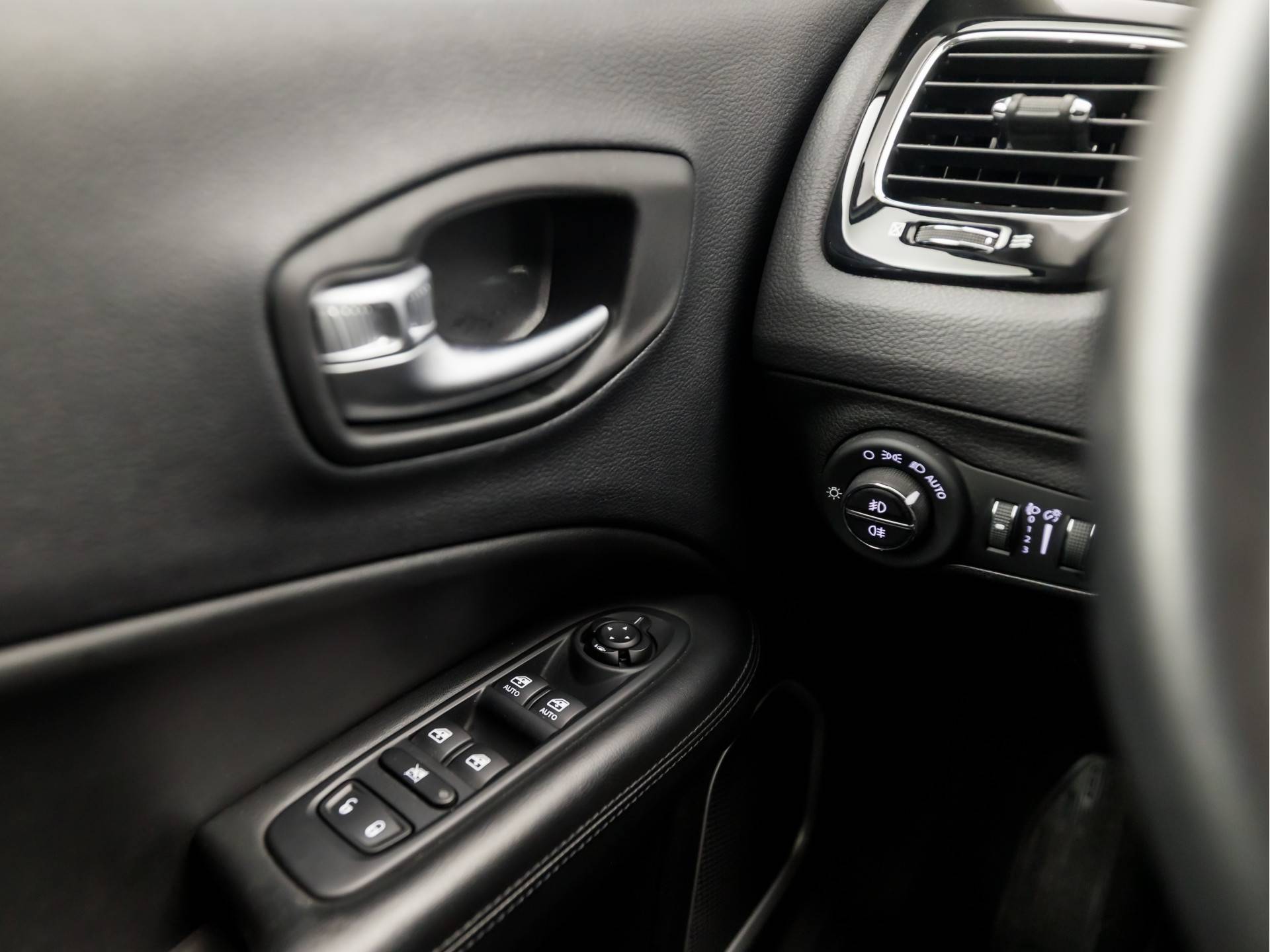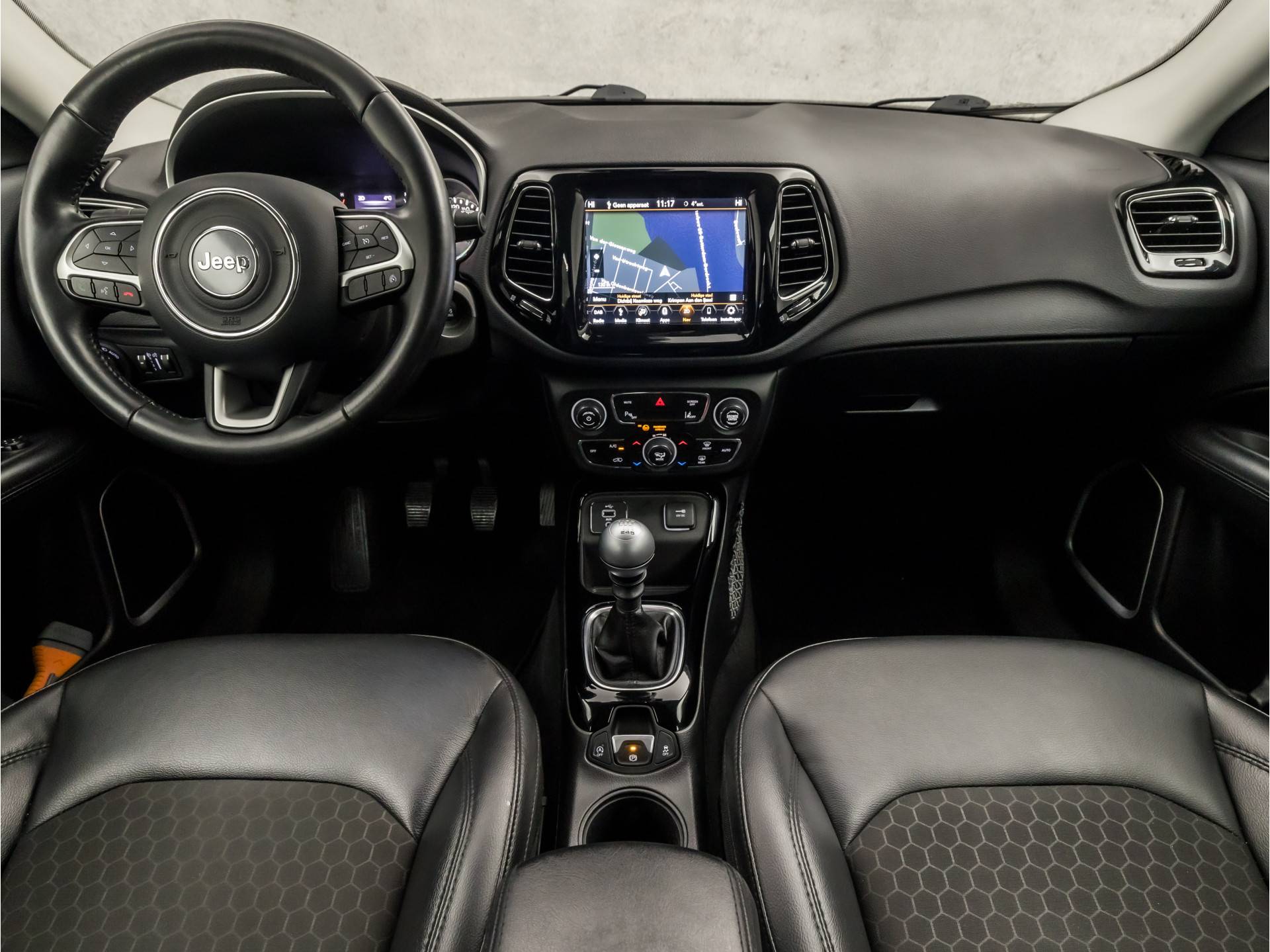 'Boem is ho'? Niet met deze achteruitrijcamera. U ziet achter net zo goed als voor en krijgt een duidelijk geluidssignaal! Een goede veiligheidsvoorziening is de stuurbediening voor belangrijke functies. De auto is natuurlijk voorzien van een navigatiesysteem en het audio-installatiesysteem biedt glasheldere geluidskwaliteit dankzij DAB-ontvangst. De achteropkomend verkeer waarschuwing geeft een signaal als degene achter u te dicht op u zit. Ook handig en veilig bij het wisselen van rijbaan. Automatische airconditioning regelt volautomatisch de temperatuur. U kiest de gewenste temperatuur en het systeem doet de rest. Met cruise control rijdt u rustiger en meer ontspannen, en bovendien zuiniger. Deze Jeep is voorzien van keyless entry, lederen stuur, isofix-aansluiting, centrale deurvergrendeling met afstandsbediening en lederen versnellingspook.