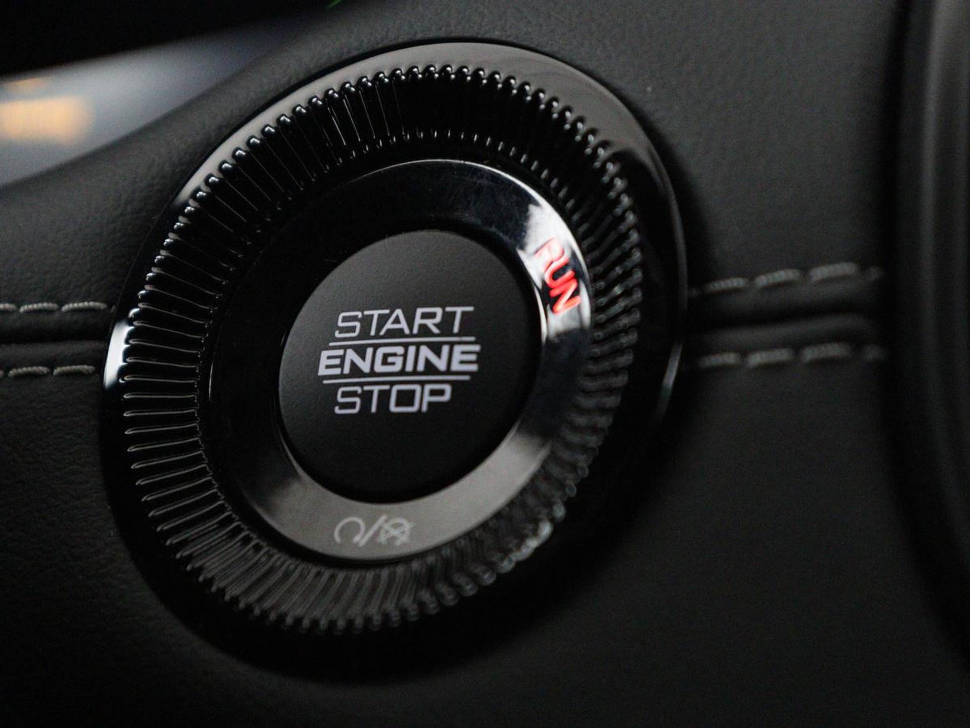 Interieurkleur: Lederen bekleding zwart, grijze stiksels, geventil