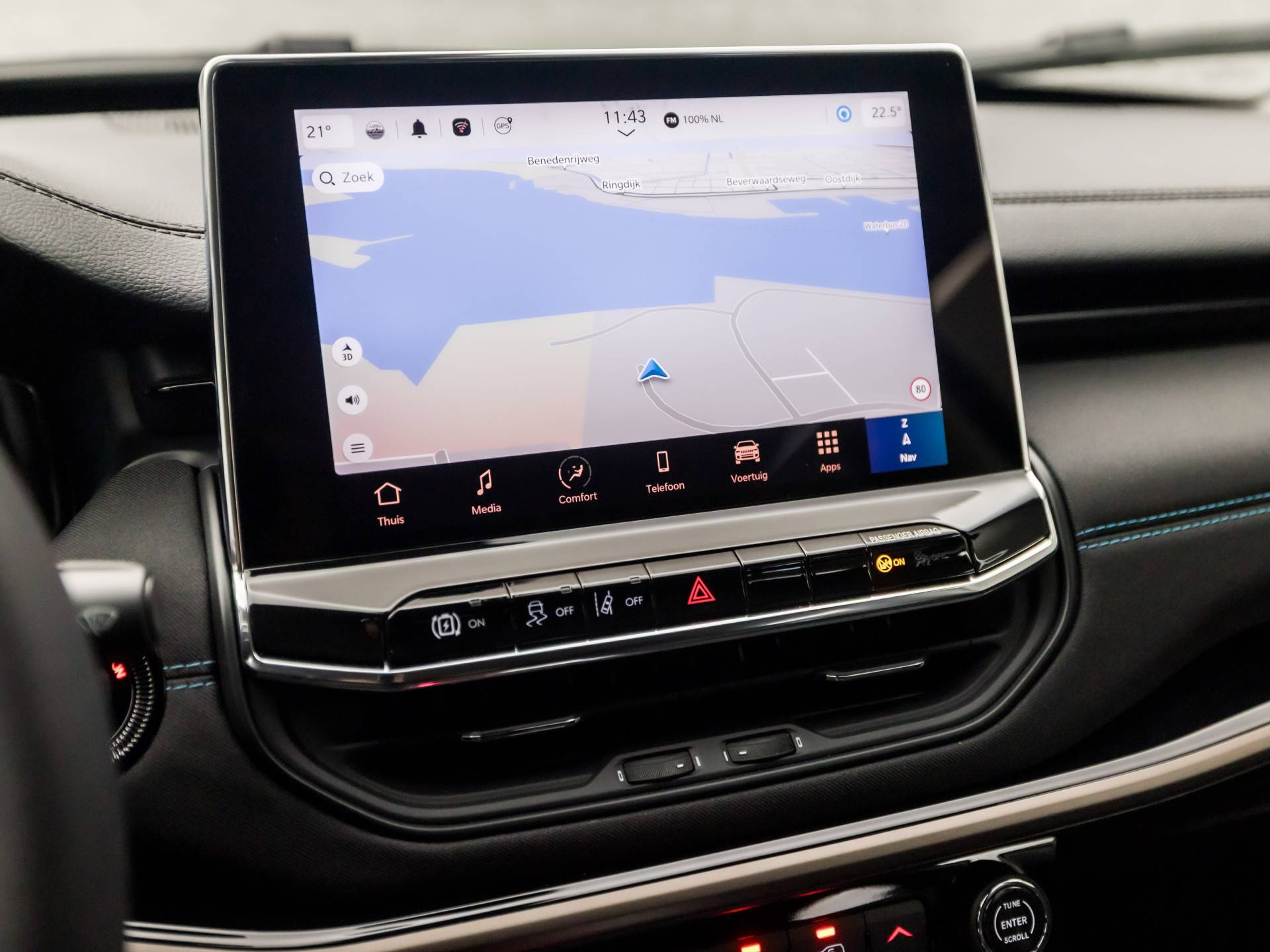 Als bestuurder van deze Jeep bent u nooit alleen. U wordt onderweg bijgestaan door technologische hulpmiddelen die samen met u de weg in de gaten houden. Als het nodig is, grijpen ze zelfs in, door te remmen of bij te sturen. U rijdt ook veiliger omdat deze auto voor u de verkeersborden langs de weg kan lezen. De belangrijkste borden worden op uw instrumentarium geprojecteerd, zodat u ze niet kunt missen. Mooi binnen de lijnen van de rijstrook blijven? Het Lane-keeping systeem helpt altijd een handje. Voor meer veiligheid detecteert deze auto het risico van een aanrijding tijdig via de forward collision warning. In deze Jeep vinden we verder een hill hold functie, Abs - anti blokkeer systeem met brake assistant, vermoeidheidsherkenning en bandenspanningcontrolesysteem.