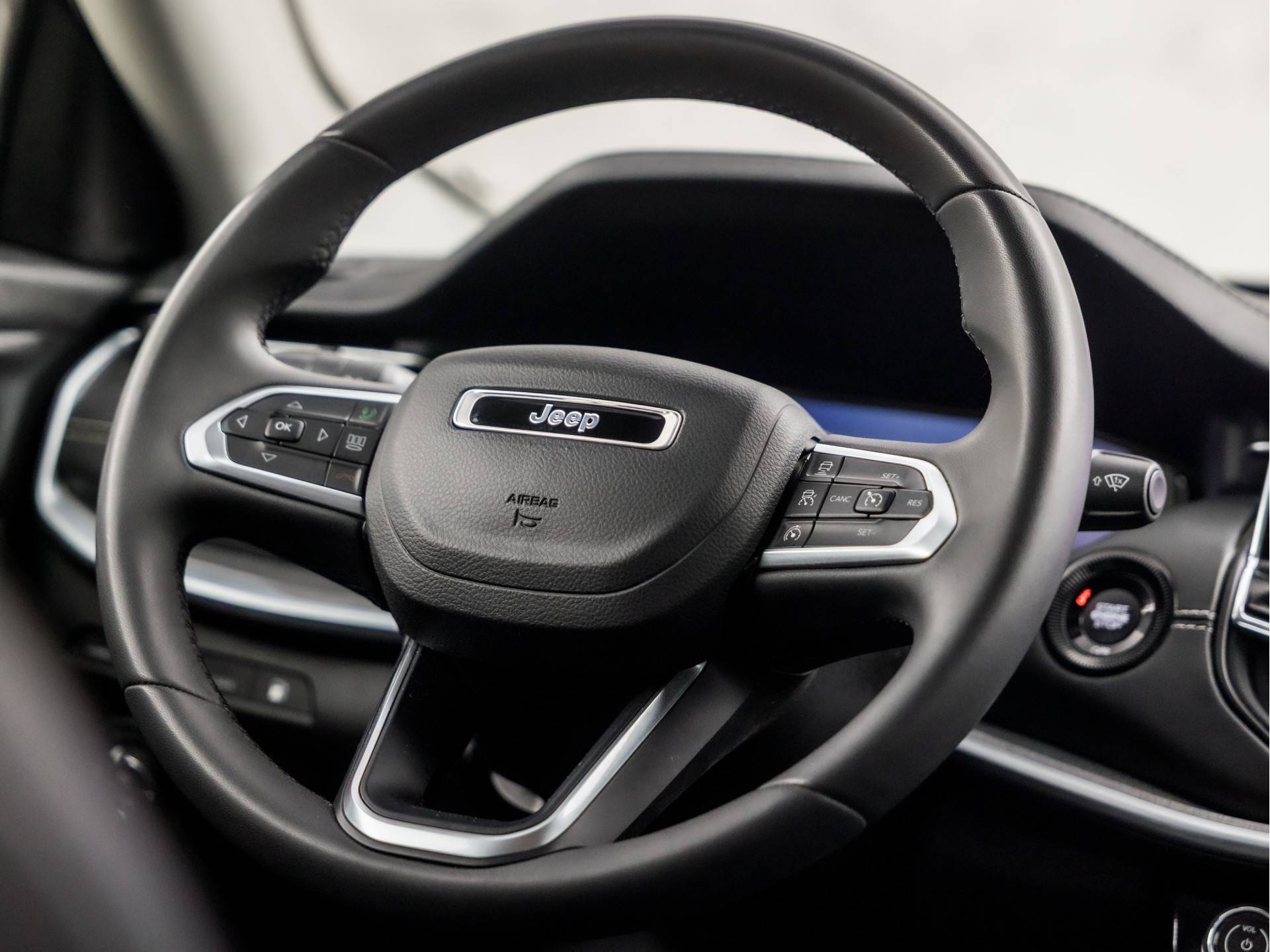 Begeef u op de geweldige rit door de digitale wereld van mobiliteit waar alles wat u wenst voor comfort en veiligheid, wordt geprojecteerd op het digitale dashboard. Alles vrij achter? De achteruitrijcamera laat het meteen zien. Adaptive cruise control is veilig en comfortabel. De snelheidsregelaar houdt automatisch afstand tot het voertuig dat voor u rijdt. Functies activeren en storingen opsporen? Bij deze auto gaat het eenvoudig via uw smartphone. Overal en altijd. Het navigatiesysteem loodst u snel naar uw reisdoel. Met met leder bekleed dashboard, automatische airconditioning, draadloos opladen, DAB ontvangst, regensensor en keyless entry is deze Jeep helemaal compleet.