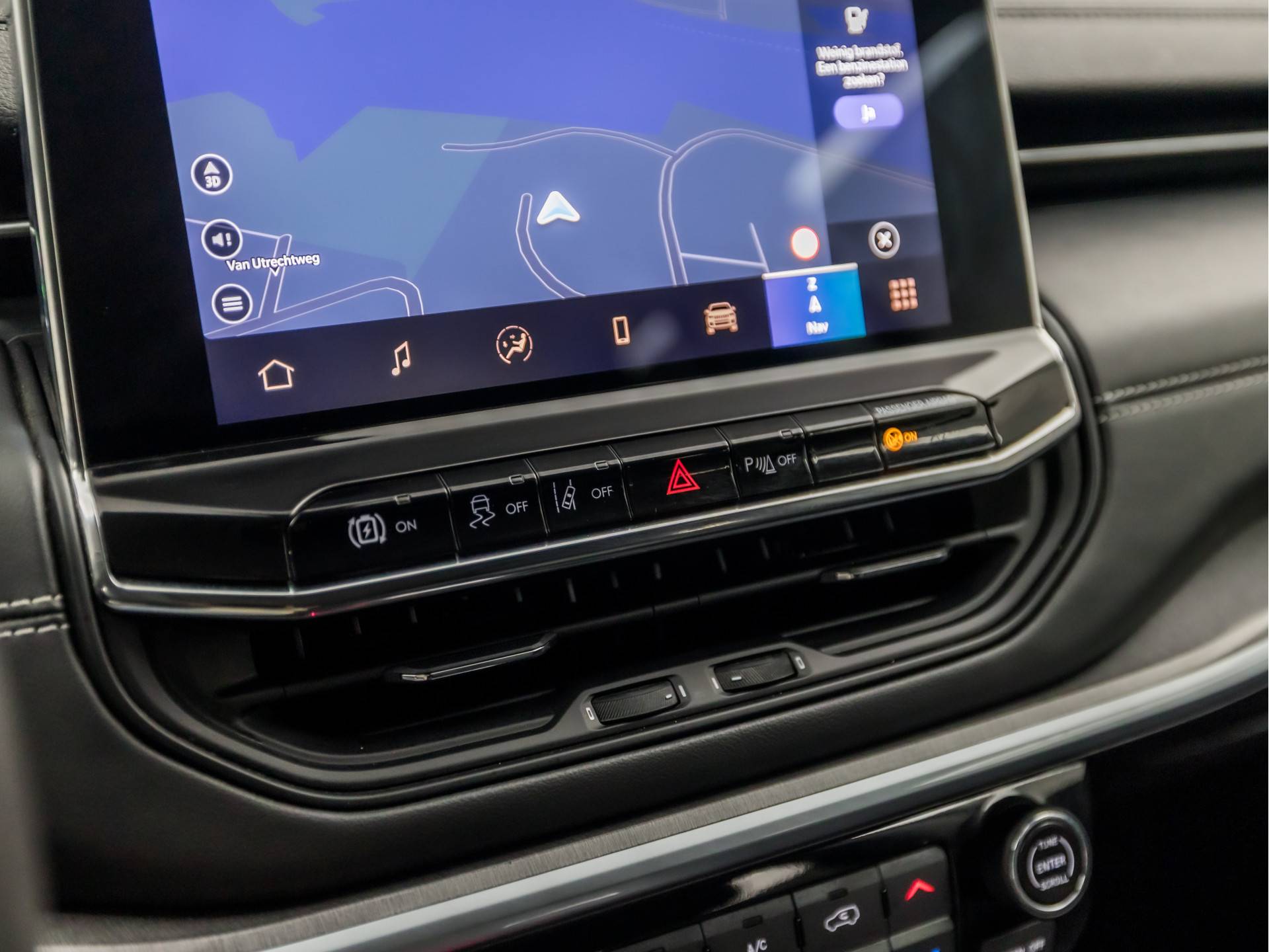 Tijdens de rit wordt u als bestuurder ondersteund door verschillende systemen die de weg en uw omgeving in de gaten houden. In het instrumentarium kunt u bovendien de verkeersborden zien die u onderweg tegenkomt. Zo helpt deze Jeep u om veiliger te rijden. Het Lane-keeping systeem let constant op en waarschuwt of corrigeert als u onoplettend over de lijnen van de rijstrook gaat. Het risico van een kop-staartbotsing wordt aanzienlijk verminderd door de forward collision warning. De auto is ook uitgerust met hill hold functie, vermoeidheidsherkenning, autonoom remsysteem en bandenspanningcontrolesysteem.