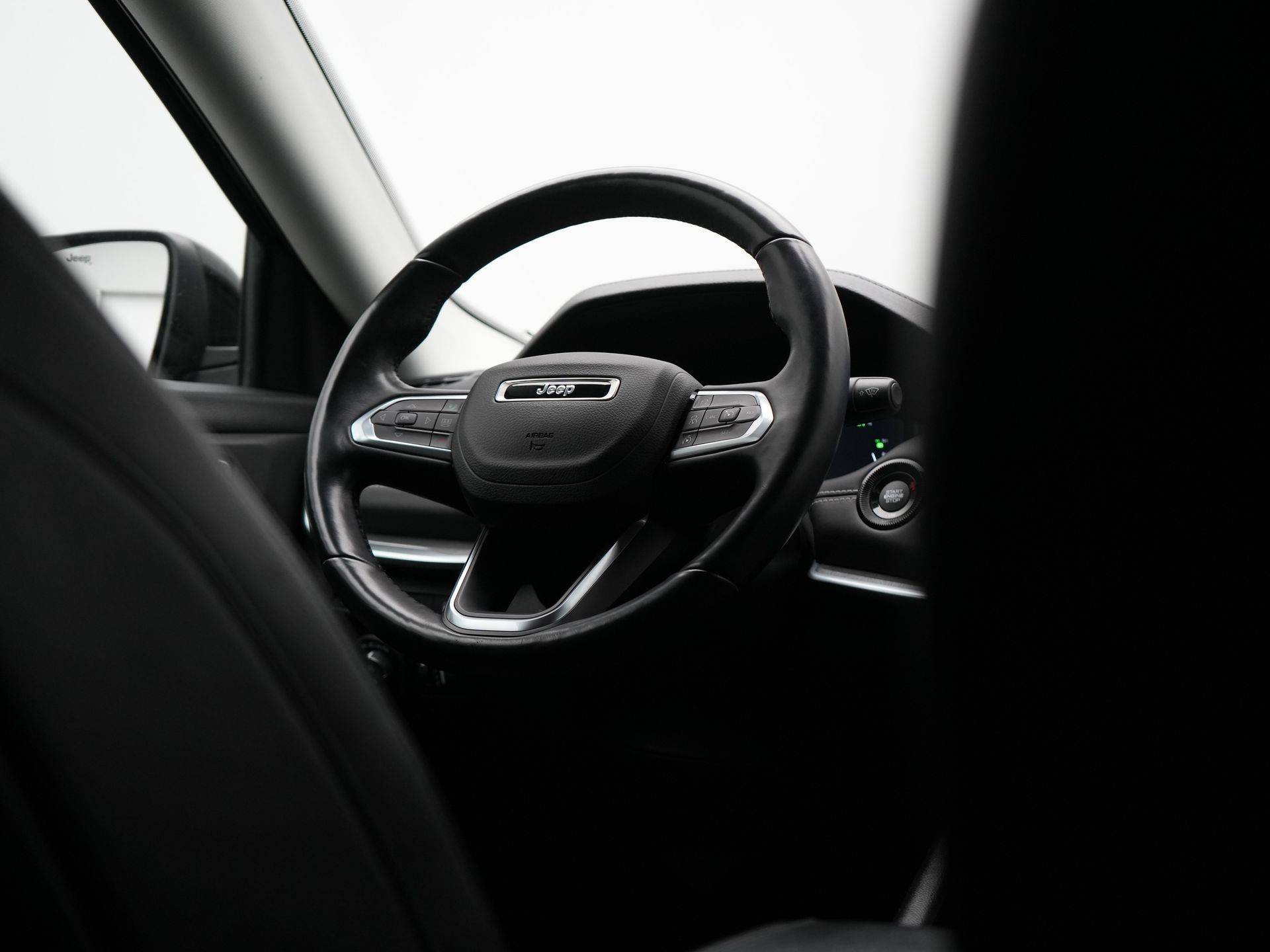 U wordt geïntroduceerd tot de digitale wereld van mobiliteit waarop alles wat u wenst wordt geprojecteerd op het digitale dashboard. Hoeveel ruimte heeft u nog bij het inparkeren? De achteruitrijcamera brengt helder in beeld wat zich achter de auto bevindt en geeft een geluidssignaal. Adaptive cruise control houdt de ingestelde snelheid vast en houdt automatisch afstand tot uw voorligger. Deze Jeep Compass is voorzien van remote services. Via uw smartphone bedient u diverse functies ook op afstand en krijgt u informatie over de status van uw auto. Met het full map navigatiesysteem kiest u de snelste route naar uw eindbestemming. De uitrusting van deze Jeep is met automatische airconditioning, draadloos opladen, DAB ontvangst, regensensor, keyless entry en automatisch dimmende binnenspiegel behoorlijk compleet.