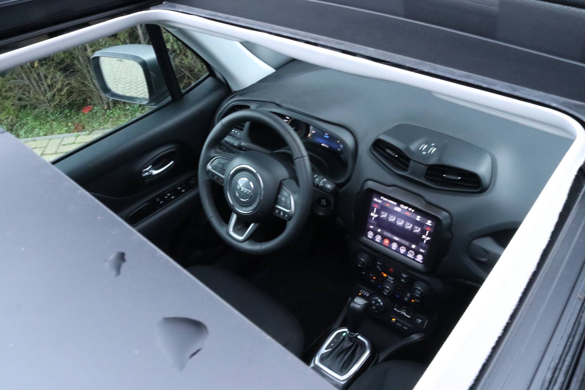 Bij het ontwerpen van de Jeep Renegade stonden uw comfort en uw veiligheid centraal. Glibberen of glijden is er met deze vierwielaandrijving niet bij. Op deze 4WD kunt u onder alle omstandigheden rekenen. Op koude en donkere dagen zijn de verwarmbare voorstoelen een uitkomst. Het interieur baadt in daglicht dankzij het elektrisch bediende glazen panoramadak. Bij de rijke uitrusting horen ook warmtewerend glas, led-verlichting, elektrische handrem en in delen neerklapbare achterbank. Ongelukken of parkeerschade? Dat gebeurt u niet meer, met de achteruitrijcamera. U bedient het navigatiesysteem en het audiosysteem met DAB-radio via knoppen op het stuur. Zo kunt u steeds uw aandacht gericht houden op de weg. De automatische airconditioning zorgt onder alle omstandigheden voor een prettige temperatuur. Slimme ruitenwissers? De regensensor zorgt ervoor! Nooit te snel, altijd constant: dat is het voordeel van de aanwezige cruise control. Extra opties op deze auto zijn: buitentemperatuurmeter, automatisch dimmende spiegels, isofix-aansluiting, usb-aansluiting en centrale deurvergrendeling met afstandsbediening. Het zal u verbazen hoe deze auto in staat is om voor u de omgeving en het verkeer om u heen in de gaten te houden. Een belangrijke bijdrage aan de veiligheid onderweg levert de verkeersbord-detectie in deze Jeep. Bij een noodstop levert de Brake Assist automatisch nóg meer remkracht om de remweg te verkorten. Maak nu een afspraak voor een proefrit!