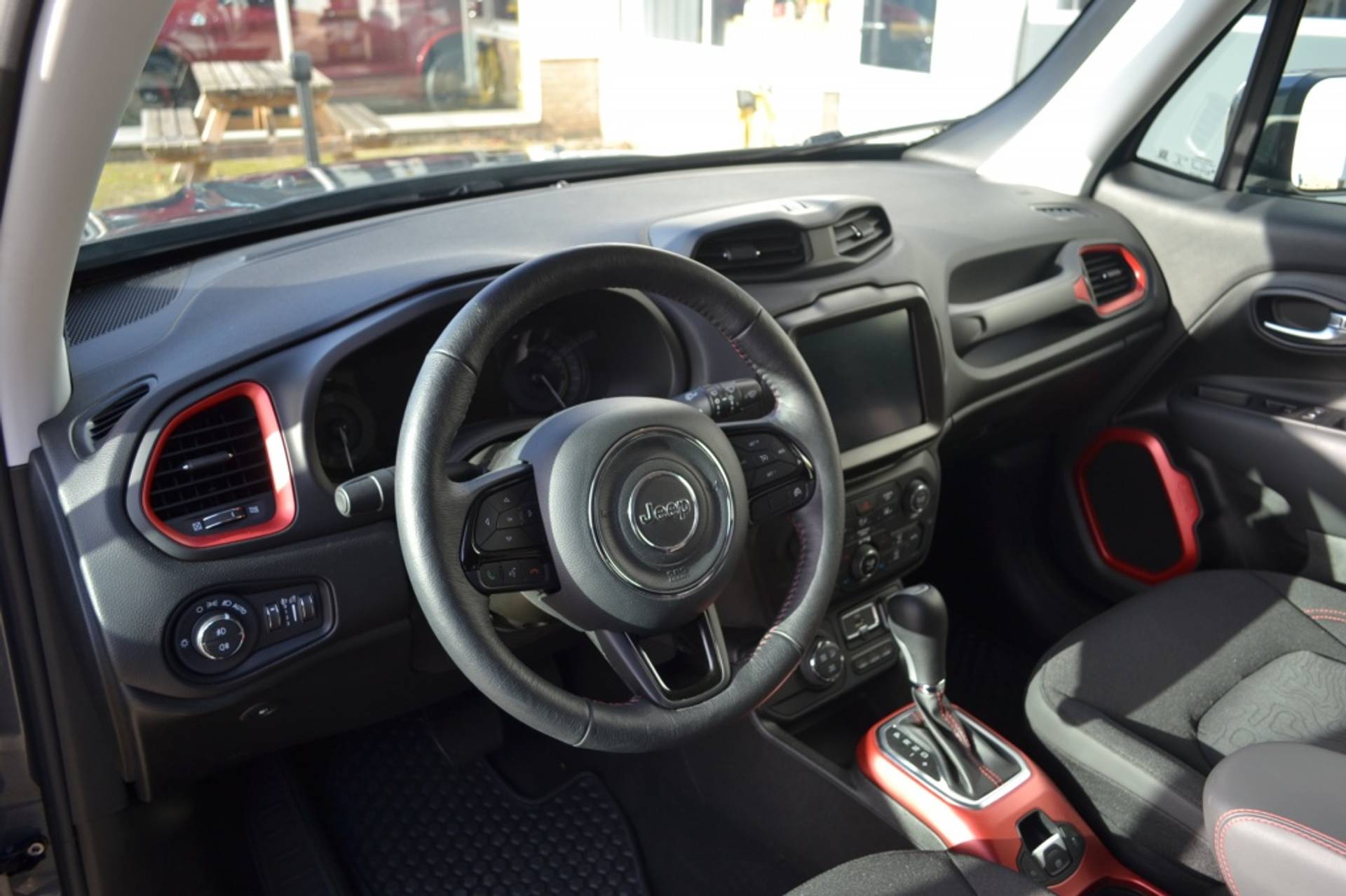 Geen nekkramp of spiegelwerk meer bij het achteruitrijden: de achteruitrijcamera kijkt en ziet alles! Adaptive cruise control is een comfortabele en veilige optie. Het systeem reguleert de snelheid en houdt automatisch afstand tot uw voorligger. Dankzij Connected Services weet u precies waar uw auto geparkeerd staat. Ook andere functies, zoals bandenspanning en brandstofniveau, zijn via de app altijd onder handbereik. In deze Renegade vindt u schakelaars op het stuur om het navigatiesysteem te bedienen en het audiosysteem met DAB-ontvangst. Ook is de auto voorzien van automatische airconditioning. De uitrusting van deze Jeep is met regensensor en lederen versnellingspook behoorlijk compleet.