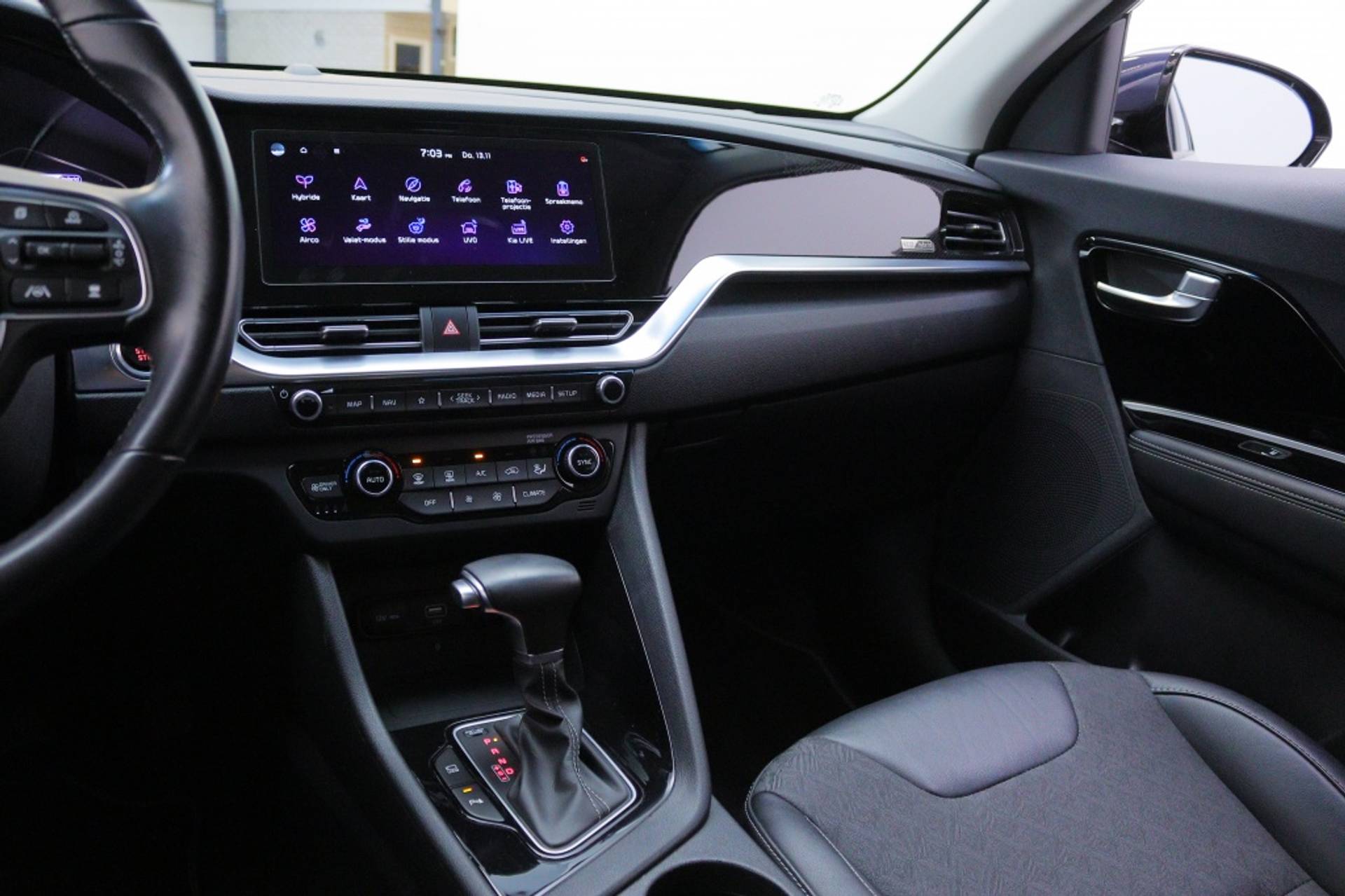 Het interieur van deze Kia Niro is voorzien van luxe en comfort. De airco werkt automatisch en zorgt ervoor dat de temperatuur altijd aangenaam is. Daarnaast is de auto uitgerust met Apple Carplay/Android Auto, waardoor je gemakkelijk en veilig verbinding kunt maken met je smartphone. Zo heb je altijd je favoriete muziek en handige apps binnen handbereik.
