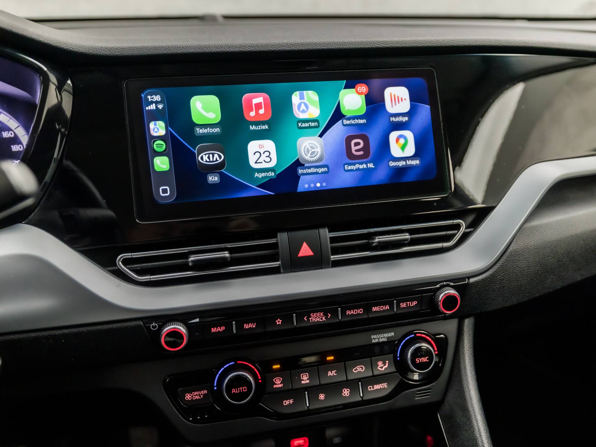 Hoeveel ruimte heeft u nog bij het inparkeren? De achteruitrijcamera brengt helder in beeld wat zich achter de auto bevindt en geeft een geluidssignaal. Adaptive cruise control is een comfortabele en veilige optie. Het systeem reguleert de snelheid en houdt automatisch afstand tot uw voorligger. Als u regelmatig met een aanhanger of een fietsendrager op pad bent, is de afneembare trekhaak een praktische extra. U kunt het audio-installatiesysteem met DAB-ontvangst en het navigatiesysteem bedienen met de knoppen op het stuur. Met automatische airconditioning hoeft u alleen de gewenste temperatuur in te stellen. Het systeem doet de rest. Deze Kia is voorzien van sportstuur met schakelpaddels, regensensor, automatisch dimmende binnenspiegel, isofix-aansluiting, centrale deurvergrendeling met afstandsbediening en bagage afdekhoes.