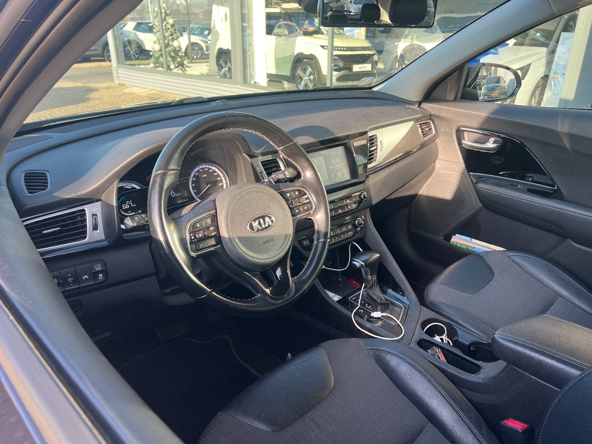 Fraaie vormgeving, hoge kwaliteit en een zeer betaalbare prijs: dit is typisch een Koreaanse auto. Dit is een van de betere hybride auto's. Ideaal rijden door de combi van elektromotor en verbrandingsmotor! Deze Kia is voorzien van een mooie en comfortabele lederen bekleding. Hoe koud het buiten ook is, het verwarmbare stuurwiel en de verwarmbare voorstoelen brengen uw handen, vingers en lichaam snel weer op temperatuur. Xenonverlichting zorgt voor een krachtige en heldere lichtbundel. Bij de uitrusting van deze auto horen onder meer 18 inch lichtmetalen velgen, extra getint glas, in delen neerklapbare achterbank en LED-achterlichten. Ongelukken of parkeerschade? Dat gebeurt u niet meer, met de achteruitrijcamera. Als u de adaptive cruise control inschakelt, regelt de auto zelf de snelheid en de afstand tot de auto voor u. Een subliem geluidsspectrum wordt onder alle omstandigheden geleverd door het high performance audiosysteem. Moet uw smartphone ook even tanken? Bijladen kan supersimpel met de draadloze telefoonlader. Het comfort wordt verhoogd door de aanwezige electronic climate control. De uitrusting van deze auto is met full map navigatiesysteem, DAB ontvangst, regensensor, keyless entry en automatisch dimmende binnenspiegel behoorlijk compleet. In de Kia Niro heeft uw veiligheid en die van uw omgeving prioriteit. Met het Lane-keeping systeem komt u nooit per ongeluk buiten de rijstrook. Het systeem voor vermoeidheidsherkenning neemt het waar als uw concentratie verslapt en geeft u dan een waarschuwing. Wanneer u hard moet remmen, is elke decimeter verkorting van de remweg essentieel. Voor extra remkracht zorgt dan de Brake Assist. De auto is ook uitgerust met dodehoekdetectie, hill hold functie en bandenspanningcontrolesysteem. Neem contact op voor een afspraak en laat een proefrit het bewijs leveren!