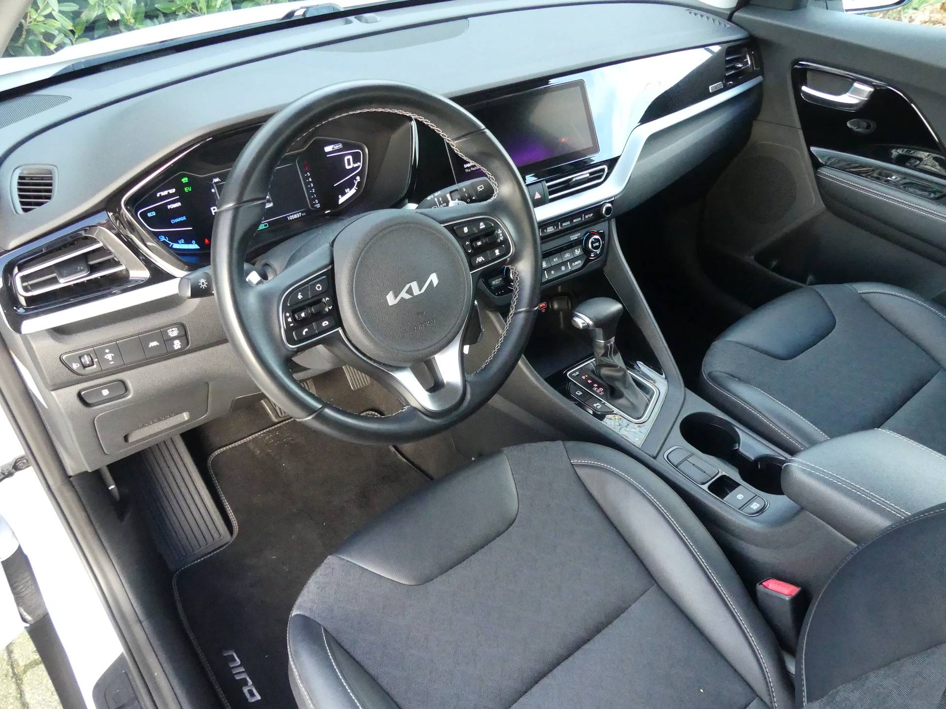 Laat u niets wijsmaken, de reputatie van de Koreaanse automerken is boven iedere twijfel verheven. Dat geldt ook voor deze Kia Niro uit 2022 met zijn tellerstand van 105837 kilometer. Zuinig rijden, minder uitstoot, maximale radius. Door de hybride motor die elektrisch én benzinerijden mogelijk maakt is dit de ideale combi. De uitmonstering van deze auto wordt gecompleteerd door onder meer 16 inch lichtmetalen velgen, halflederen bekleding, LED-dagrijverlichting, in hoogte verstelbare passagiersstoel, in delen neerklapbare achterbank en LED-achterlichten. Een vergeten muurtje, een verborgen paaltje? Dat gebeurt niet meer, dankzij de achteruitrijcamera. Adaptive cruise control is een comfortabele en veilige optie. Het systeem reguleert de snelheid en houdt automatisch afstand tot uw voorligger. Selecteer uw reisbestemming en het full map navigatiesysteem brengt u snel waar u moet zijn. Extra veiligheid is gegarandeerd door de ingebouwde kruisend verkeer detectie. Automatische airconditioning regelt volautomatisch de temperatuur. U kiest de gewenste temperatuur en het systeem doet de rest. Deze Kia is voorzien van sportstuur met schakelpaddels, DAB ontvangst, regensensor, automatisch dimmende binnenspiegel, centrale deurvergrendeling met afstandsbediening en bagage afdekhoes. De automatische veiligheidssystemen in deze Kia fungeren als een extra paar ogen. En dat niet alleen, ze kunnen ook actief ingrijpen, om zo u en uw passagiers te beschermen. Indien u onbedoeld de rijstrook lijkt te verlaten, reageert het Lane-keeping systeem meteen en corrigeert. Bovenop deze veiligheidsfeatures heeft deze Kia bovendien hill hold functie, autonoom remsysteem en bandenspanningcontrolesysteem. Laat het ons meteen weten als u interesse heeft in deze Kia, dan kunnen we een afspraak maken om u de auto te demonstreren.