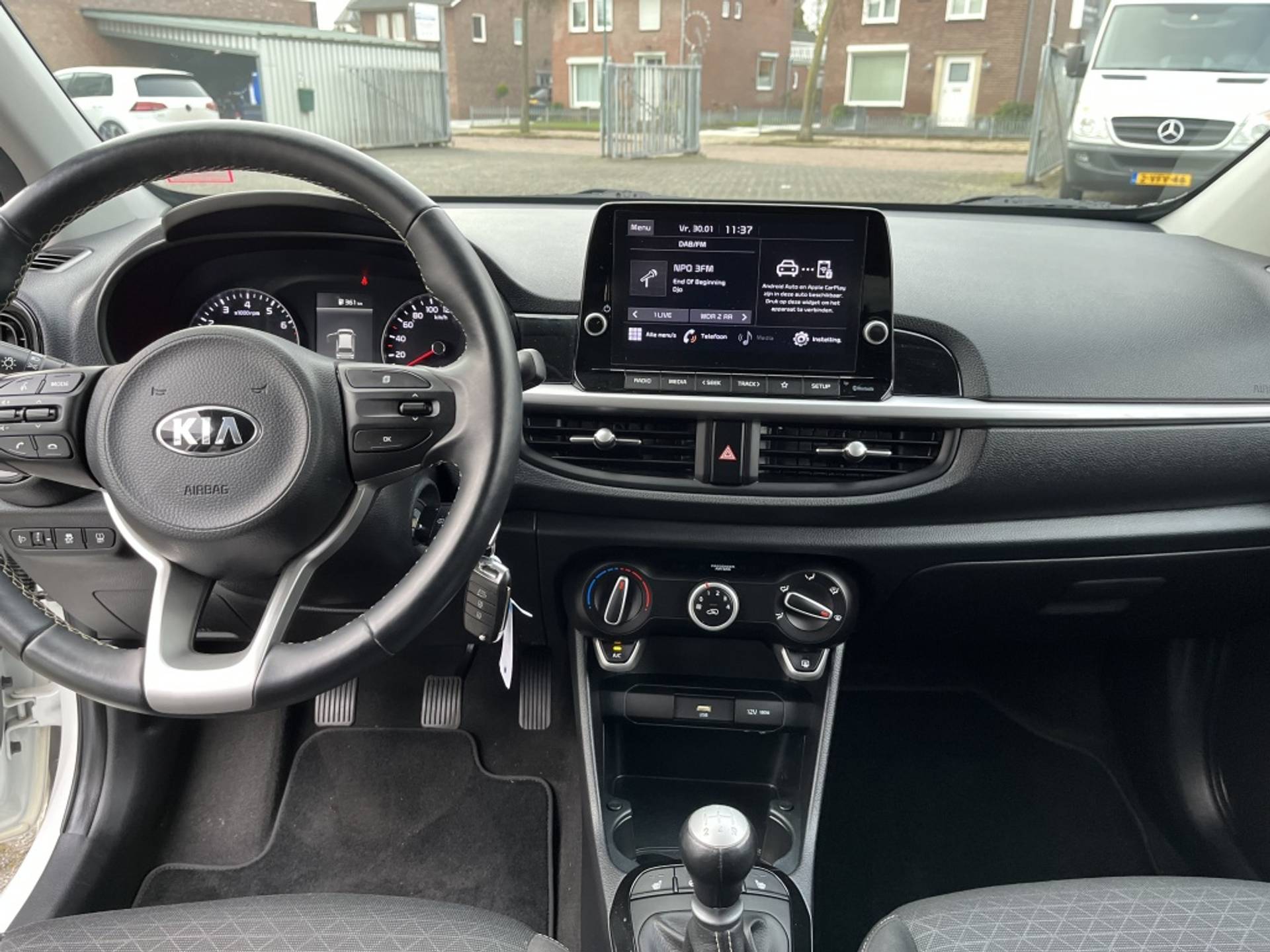 Leuke en compacte Kia Picanto met 5 deuren en voorzien van een airco, achteruitrij camera en Apple Carplay.