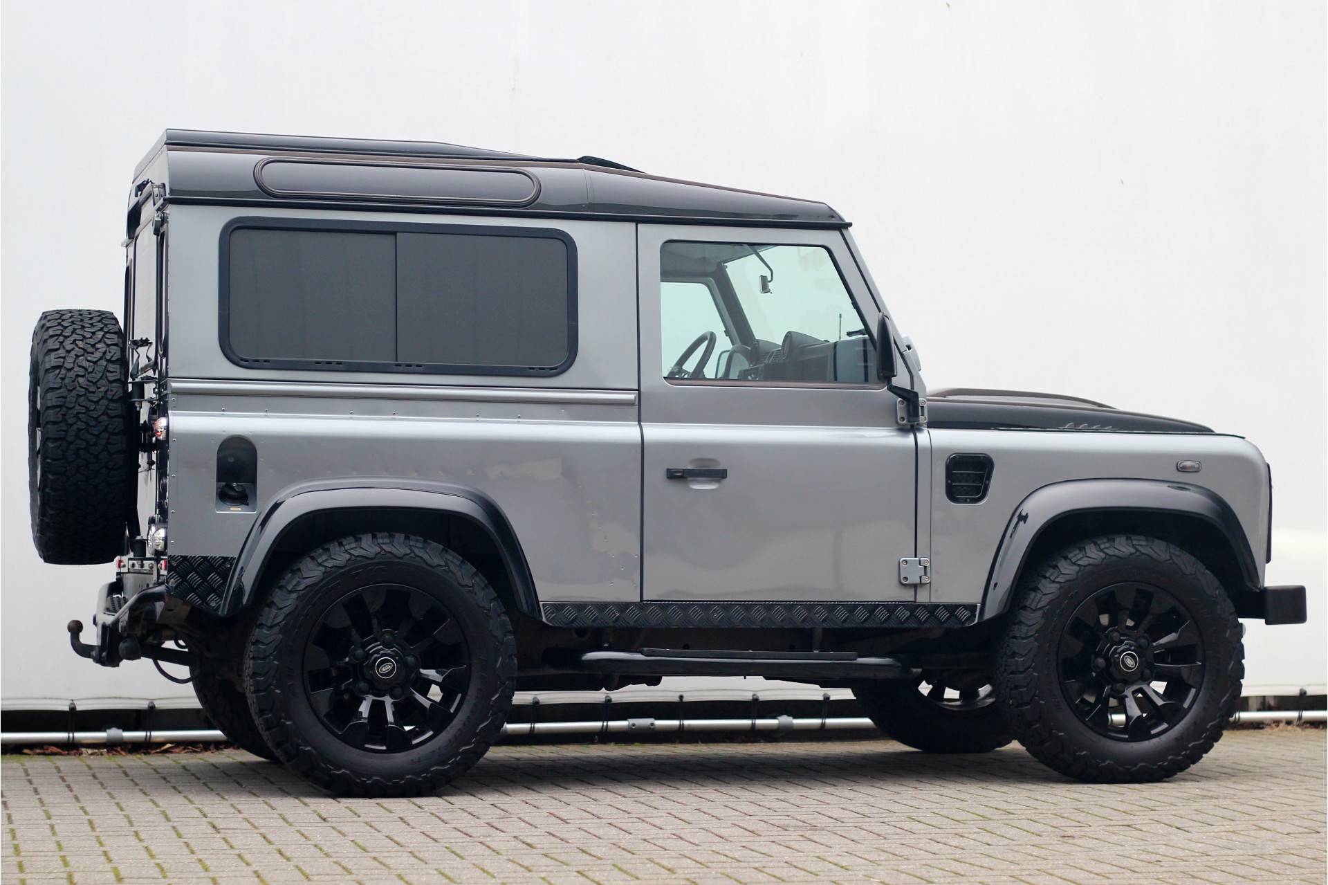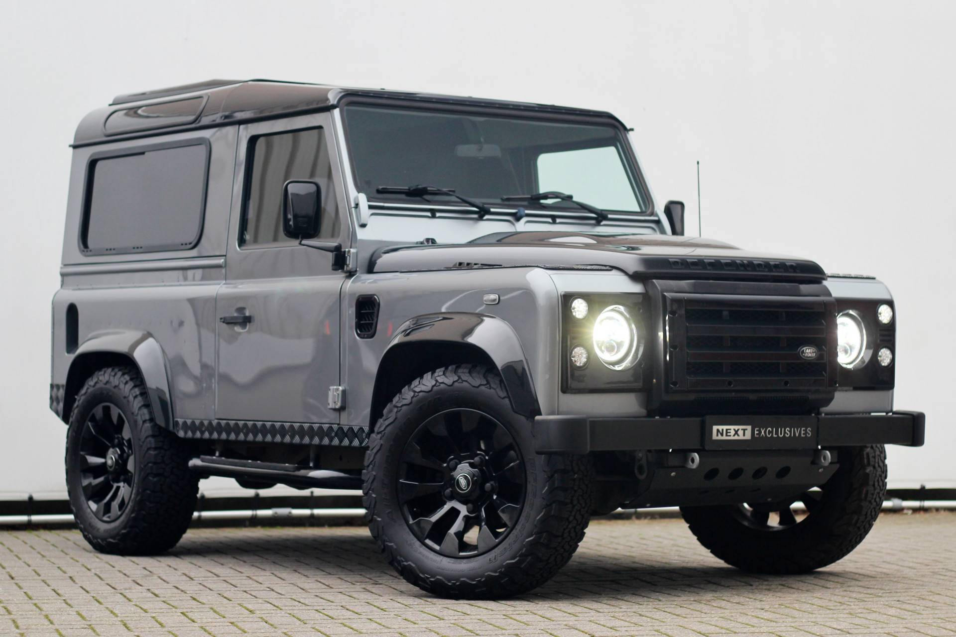 Deze Defender is uitgevoerd in de stijlvolle en stoere kleur "Orkney Grey" metallic, gecombineerd met een luxe zwart lederen/stoffen interieur. De auto verkeert in een zeer nette en unieke staat, mede dankzij de doordachte en kwalitatieve upgrades: