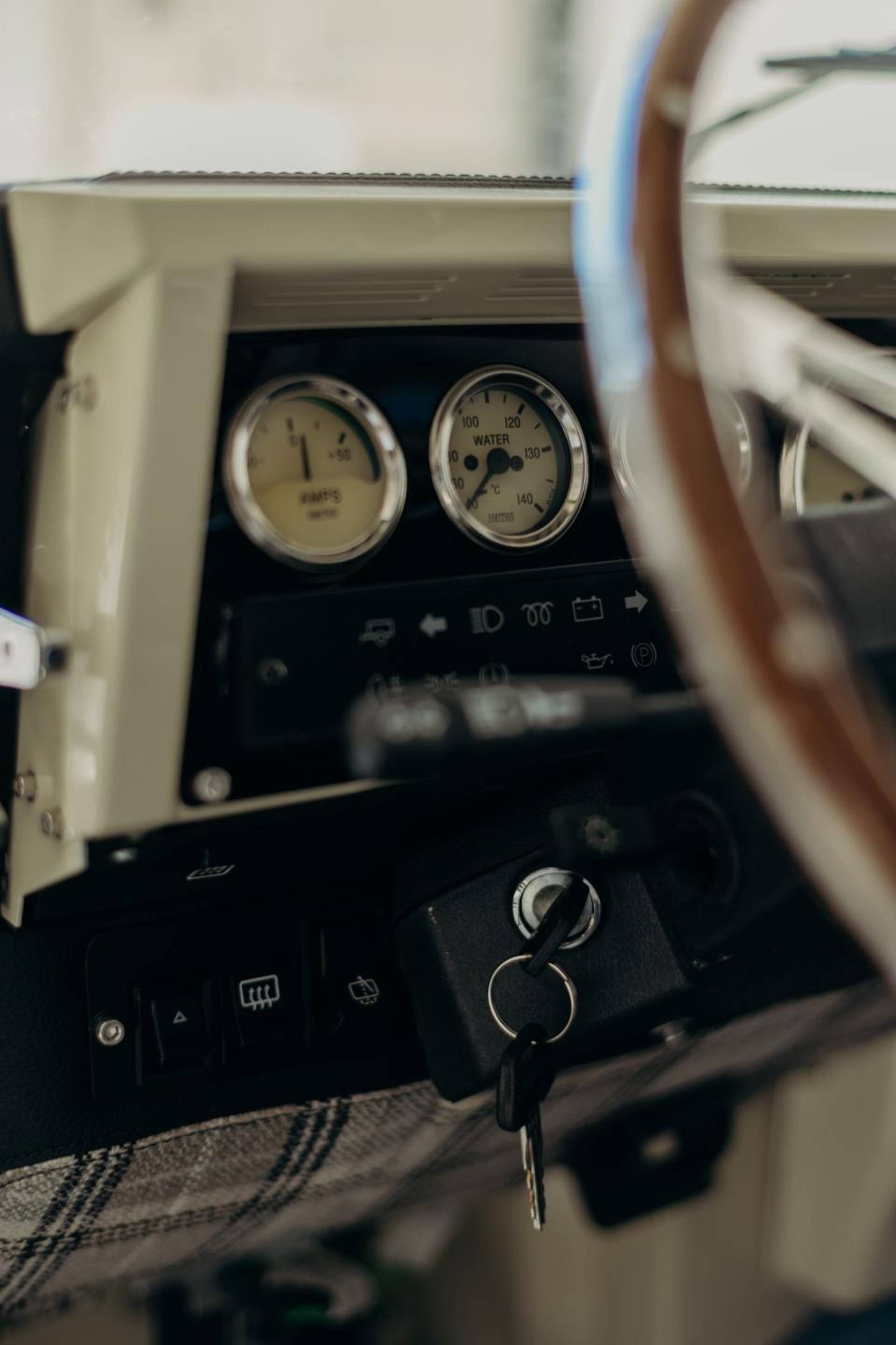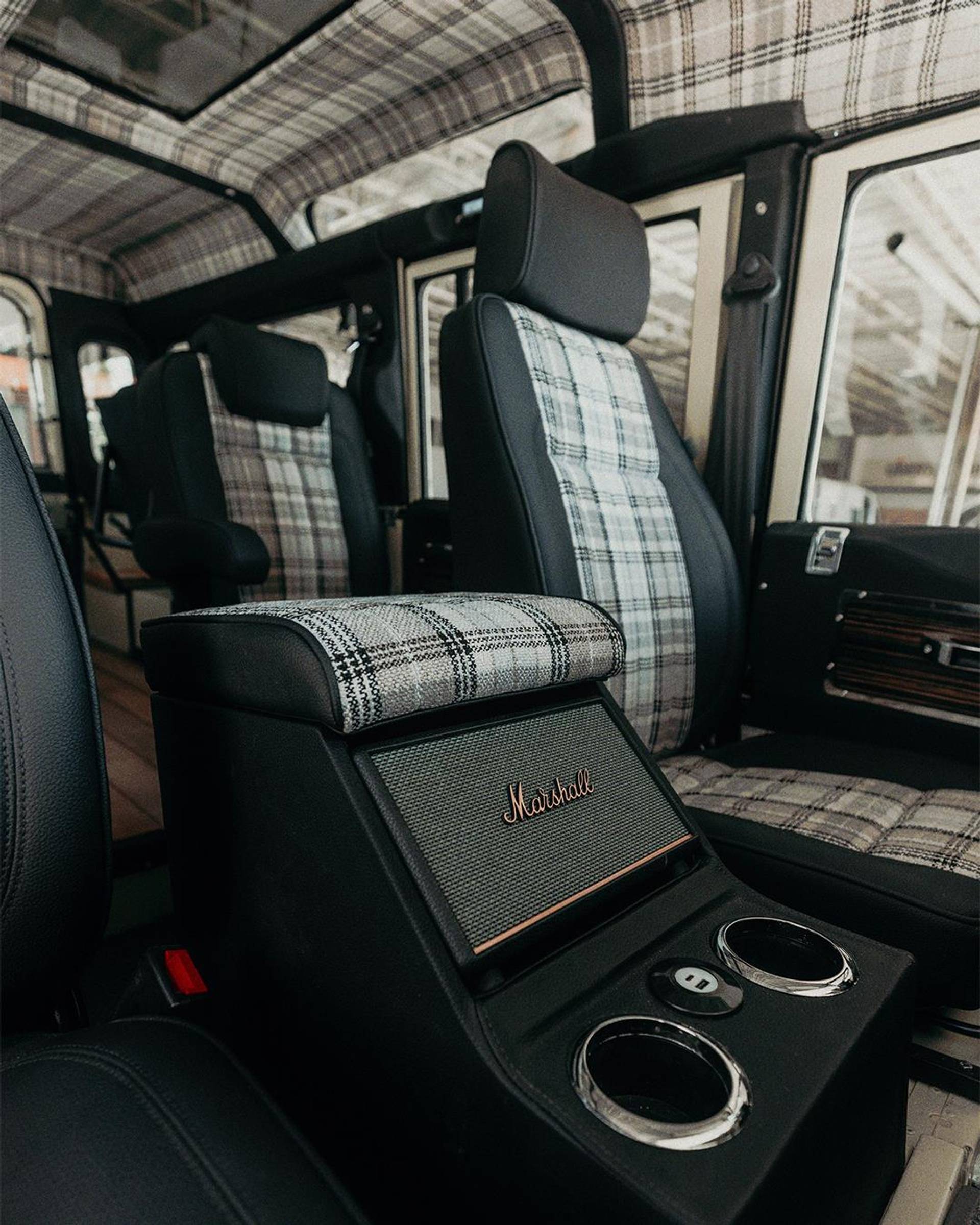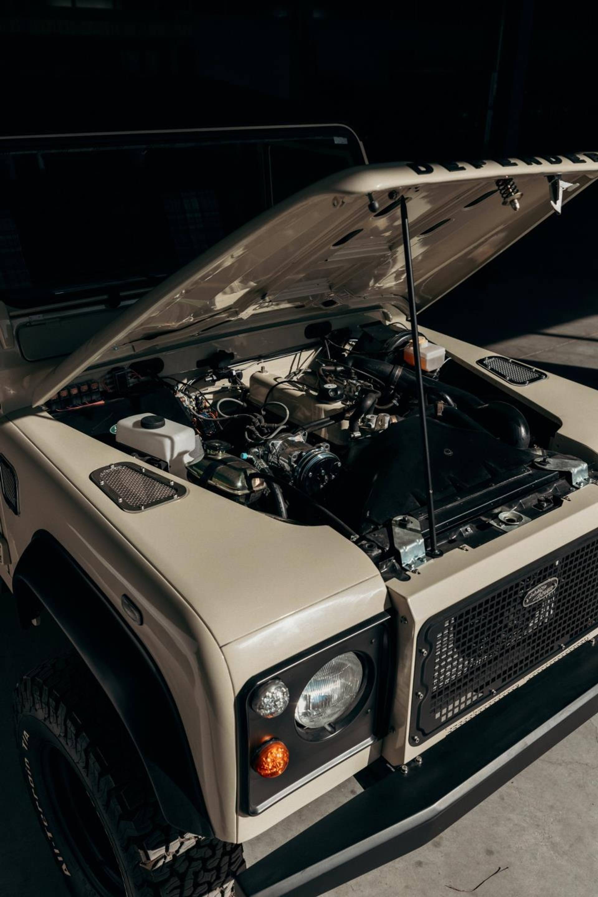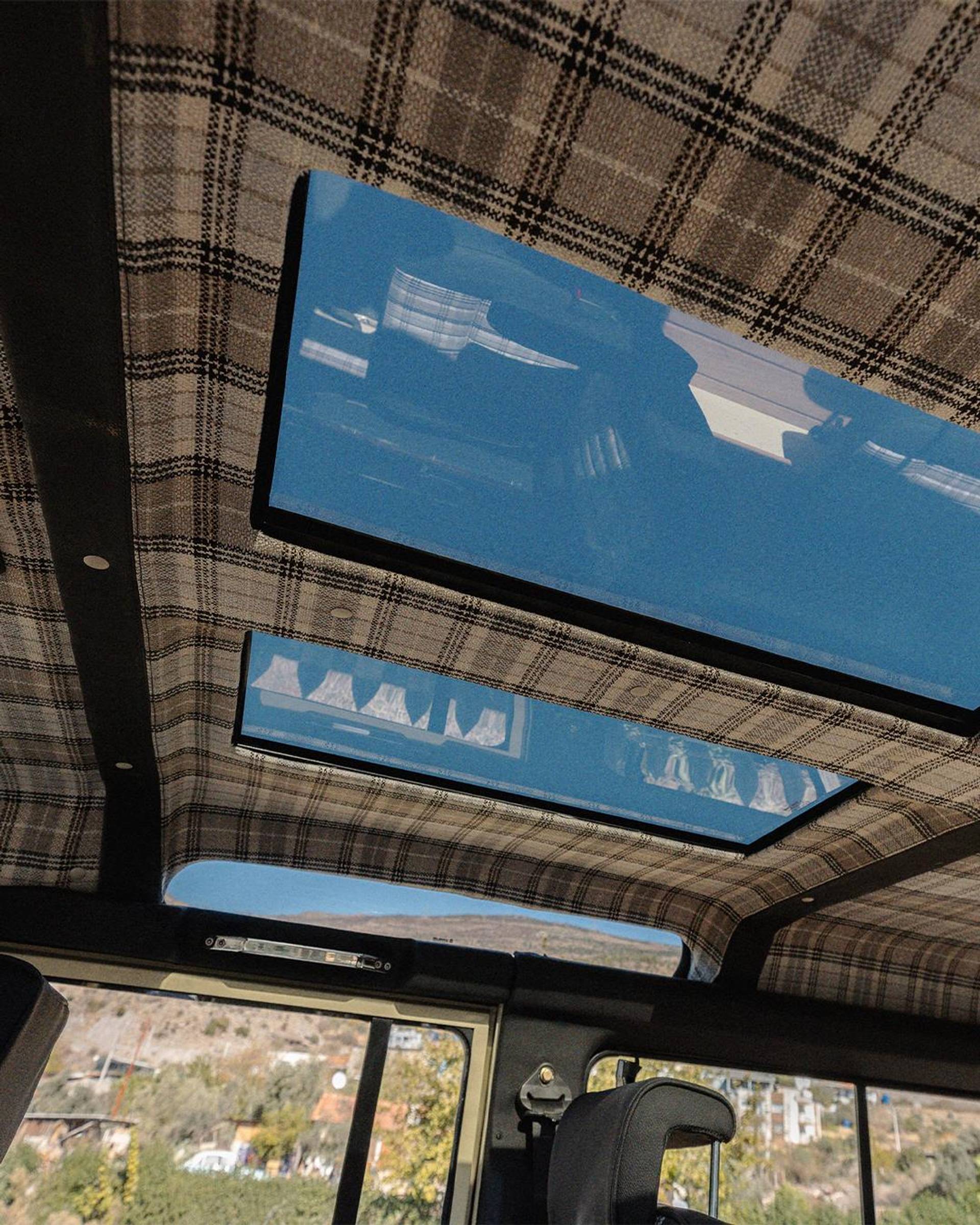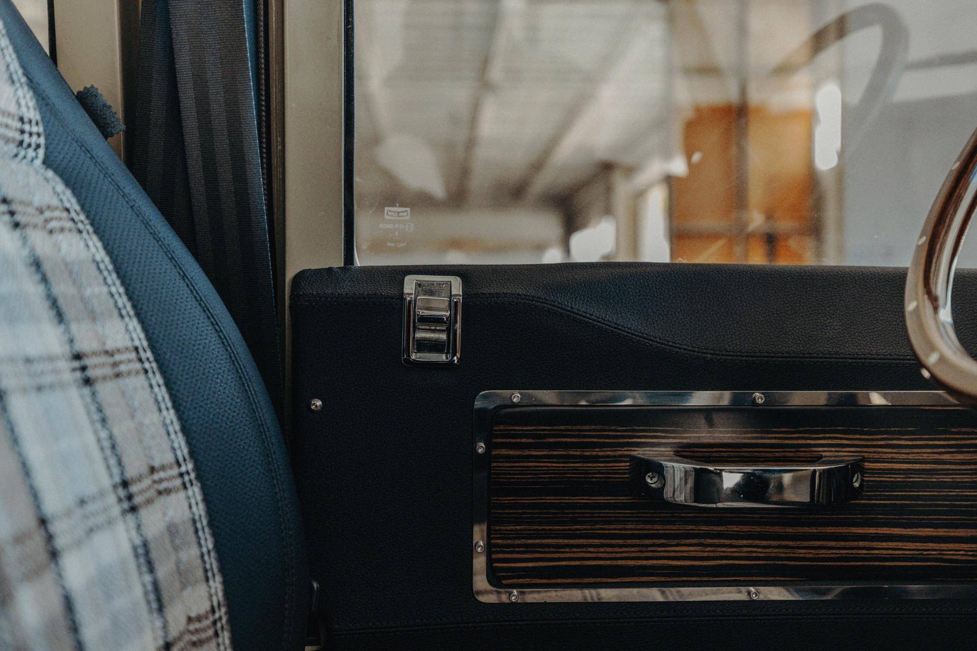 Comfort upgrades have been carefully integrated without compromising the Defender’s authentic character. These include improved suspension, power steering, and a modern air-conditioning system discreetly integrated into the original ventilation layout. Enhanced sound and thermal insulation significantly improves cabin comfort compared to standard Defenders. The interior features a flexible 2+2+2 seating configuration, premium details such as teak wood flooring, and a restored interior that balances rugged utility with refined craftsmanship.