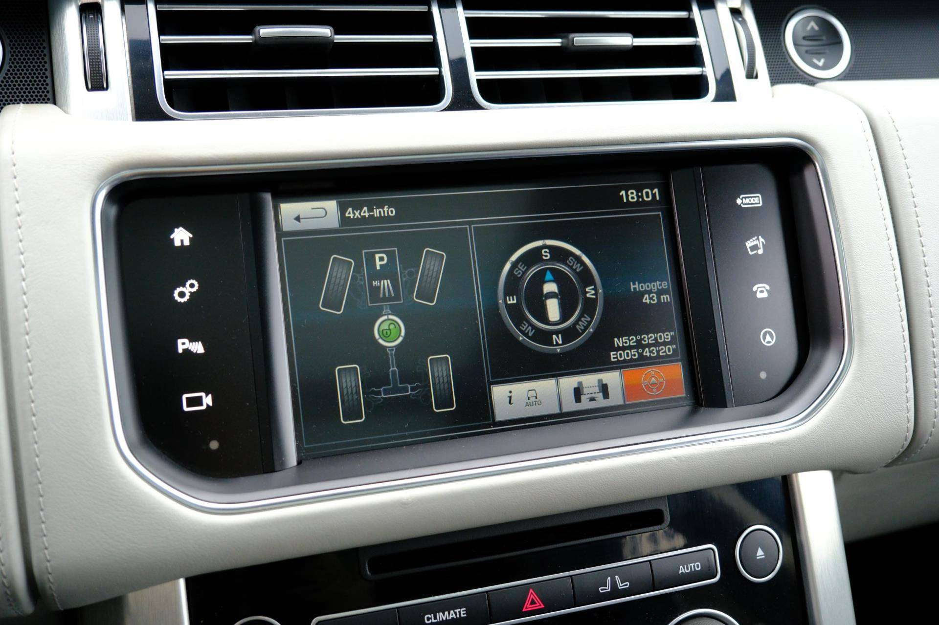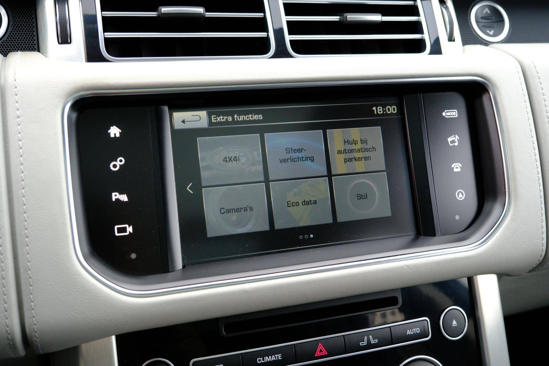 Het gebruik van de 360 graden camera op deze auto vergemakkelijkt het parkeren aanzienlijk, vooral in krappe ruimtes. Het complete geluidsspectrum van de hi-fi krijgt een extra boost door het high performance audiosysteem. De electronic climate control zorgt voor een prettige binnentemperatuur. U kunt bij het inparkeren natuurlijk niet aan alle kanten ogen hebben. Daarom is deze Land Rover Range Rover voorzien van parkeersensoren! Het drukke verkeer eist onderweg al uw aandacht op. Daarom is het goed dat deze Land Rover is voorzien van diverse systemen die u assisteren tijdens de rit. Een automatisch inschakelbare verlichting neemt het waar als het donker wordt of gaat schemeren, en schakelt dan automatisch de verlichting in. Op dezelfde manier "ziet" de regensensor de eerste spatjes regen en schakelt dan de ruitenwissers in, en als het harder gaat regenen zet hij de ruitenwissers ook in een snellere stand. Extra opties op deze auto zijn: met leder bekleed dashboard, dashboard met spraakbediening, navigatiesysteem met harde schijf, cruise control, keyless entry en automatisch dimmende buitenspiegels.