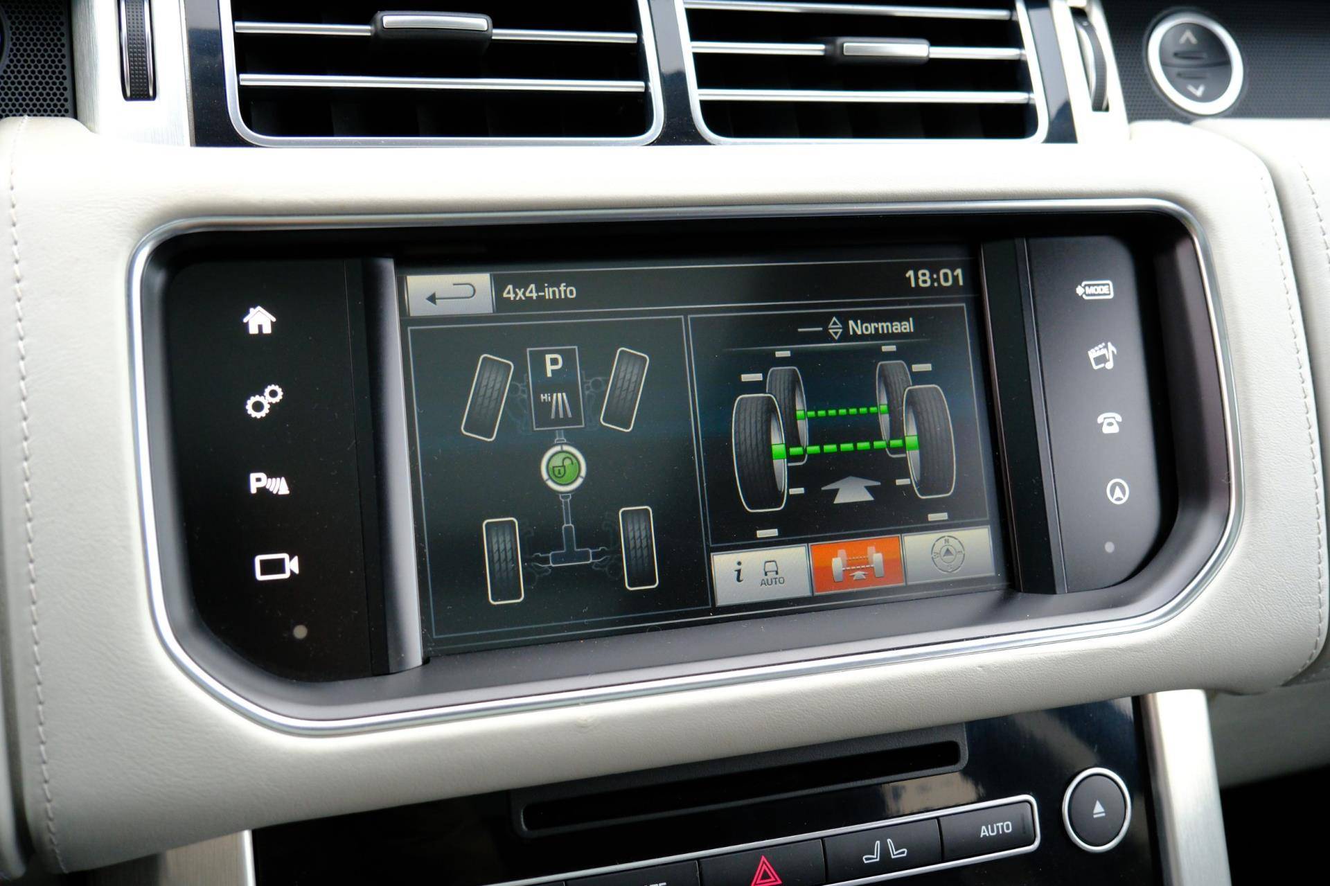 Zoals u mag verwachten van deze Land Rover Range Rover is hij uitgerust met een reeks aan actieve veiligheidssystemen. Dat de auto steeds meer taken van de bestuurder overneemt, merkt u bijvoorbeeld aan het systeem voor verkeersbord-detectie in deze auto. Indien u onbedoeld de rijstrook lijkt te verlaten, reageert het Lane-keeping systeem meteen en corrigeert. Op een helling houdt hill hold control de handrem vast totdat u weer gas geeft. De veiligheid van deze auto wordt verder verhoogd door dodehoekdetectie, brake assist en bandenspanningcontrolesysteem.