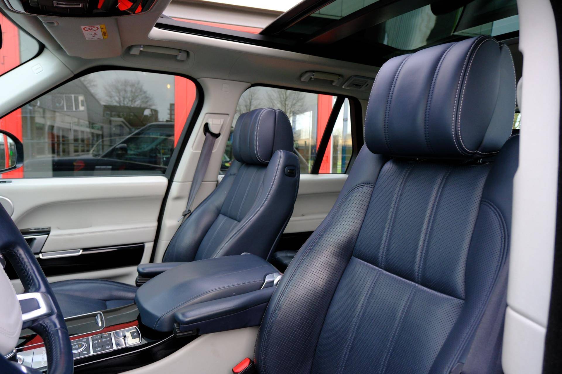 U rijdt gemakkelijk, comfortabel en zonder zorgen met deze Land Rover Range Rover. Een zescilinder motor en een automatische transmissie zorgen samen voor een snelle en comfortabele rijervaring. Dankzij de automatische luchtvering behoudt u altijd een comfortabele rit, ongeacht de staat van het wegdek. Vierwielaandrijving verdeelt de aandrijfkracht over de wielen en zorgt voor meer grip. Deze Land Rover Range Rover komt in de luxe uitvoering, inclusief lederen interieur. Zelfs op de koudste dagen zorgen de stoelverwarming met massagefunctie, stuurverwarming en verwarmbare achterbank voor een comfortabele rijervaring. Neem plaats op de comfortabele stoelen. Dankzij de elektrische bediening en het geheugen is het eenvoudig om hierin de beste zitpositie te vinden. Het interieur lijkt groter en ruimtelijker dankzij het elektrisch bedienbare glazen panoramadak. Tot de uitrusting behoren ook elektrische achterklep, 22 inch lichtmetalen velgen, bi-xenon koplampen, warmtewerend glas, elektrisch verstelbare achterbank en verwarmde ruitensproeiers.