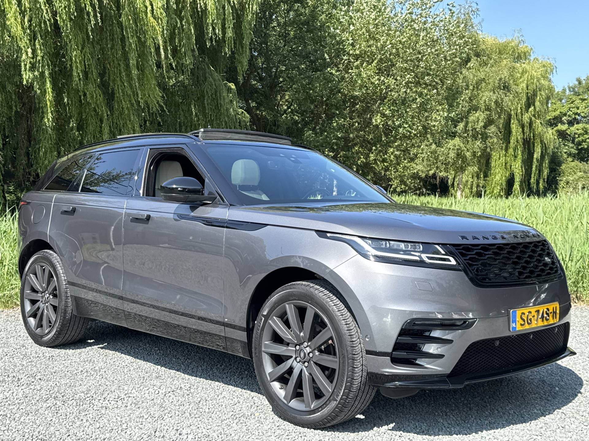 Deze Velar is een origineel Nederlandse auto. Compleet met luxe afwerking sportieve looks en vele opties o.a.; originele audio/multimedia/bluetooth/ navigatiesysteem, apps van landrover, Volledig digitaal instrumentenpaneel, Audio installatie premium meridian surround, Luxe leder bekleding, luxe leder interieur, zwarte hemelbekleding, elektrisch te openen panorama dak, parkeersensoren met parkeercamera, Led verlichting, met LED koplampen, kleur van de auto CORRIS GREY met andere dakkleur, Stoelen elektrisch bedienbaar, elektrisch te openen achterklep, key-less entry