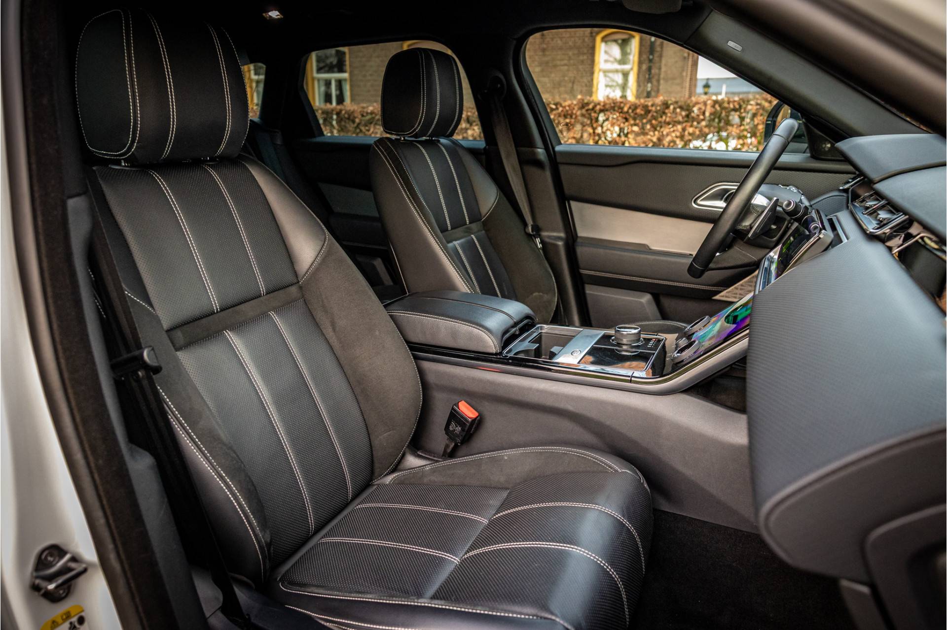 Deze Velar is compleet uitgerust met adaptive cruise control met stop en go functie, stoelventilatie op voorstoelen, head up display, 360 graden camera, dode hoek assistent, Meridian Premium Signature Surround audiosysteem met 750 Watt en 16 luidsprekers en subwoofer, 20" Satin Black velgen, elektrisch verstelbare stoelen met memory functie voor bestuurder, digitaal dashboard, keyless entry en start, verkeersbordtekenherkenning, privacy glas achter, navigatiesysteem met touchscreen, achteruitrijcamera, verwarmbare voorstoelen, verwarmbare voorruit, bluetooth telefoonintegratie, LED mistlampen vooraan, shadow aluminium interieurafwerking, elektrisch inklapbare buitenspiegels, automatische klimaatregeling met gescheiden zones.