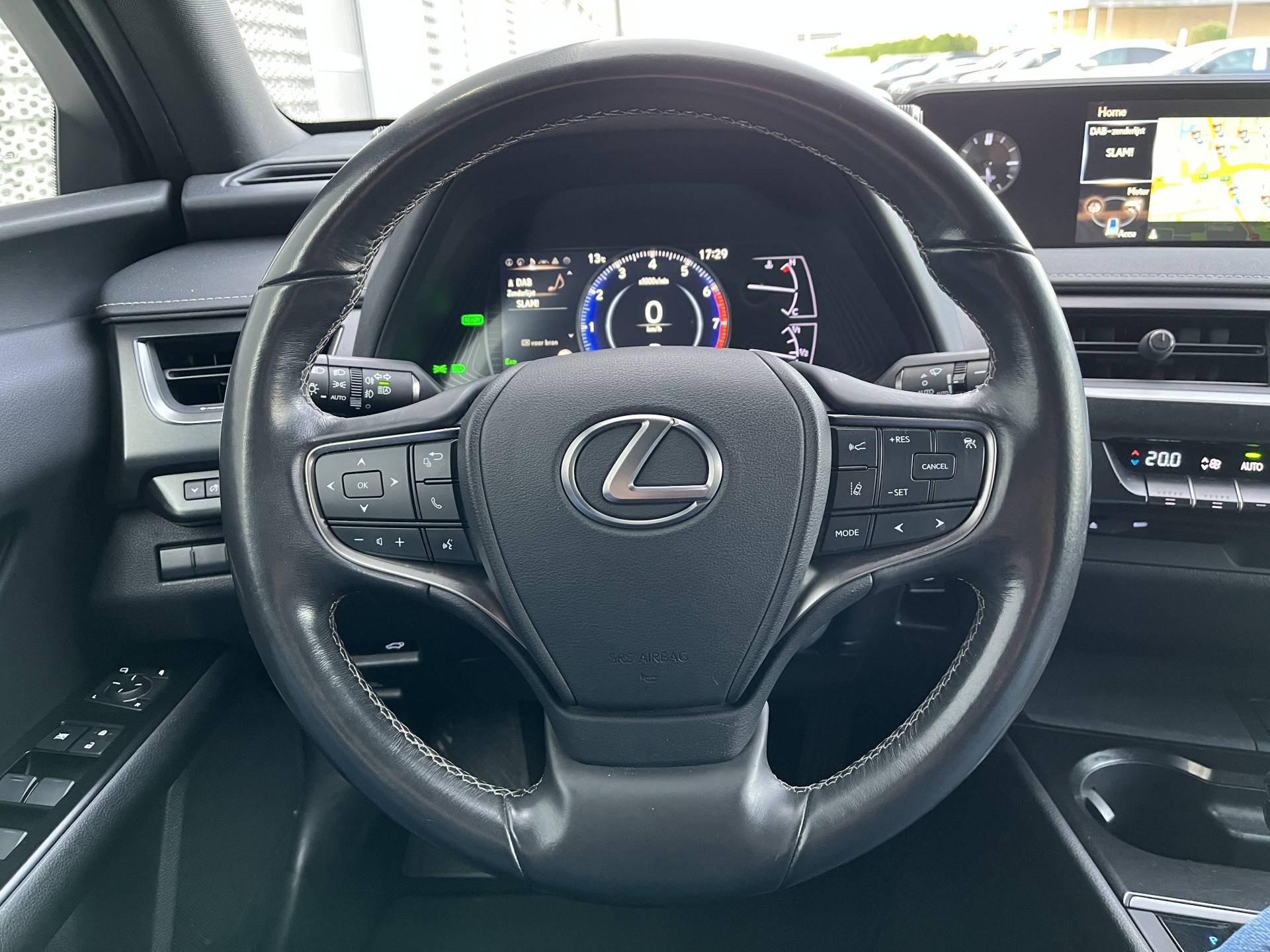 Zodra je naar de 'R' schakelt, gaat de achteruitrijcamera in werking en heb je een perfect zicht op alles wat zich achter de auto afspeelt. Met adaptive cruise control houdt de auto zelfstandig afstand tot jouw voorligger. Een veiligheidsverhogende optie waarmee je comfortabel onderweg bent. Spraakbediening herkent jouw stem en voert opdrachten uit terwijl jij beide handen aan het stuur houdt. Een smartphone met internetverbinding legt eenvoudig overal contact met de auto. Je kan kunt functies activeren en de conditie van de auto monitoren. Met het full map navigatiesysteem kies jij de snelste route naar jouw eindbestemming. Wat je ook in deze auto kunt vinden zijn electronic climate control, DAB ontvangst, regensensor, keyless entry, automatisch dimmende binnenspiegel en lederen stuur.