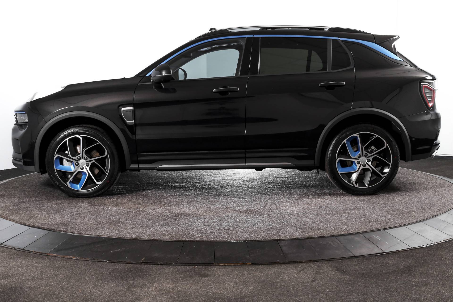 Optioneel: voor wie de Lynk & Co een sportievere uitstraling wil geven, bieden wij ons Blackpakket aan. Hierbij worden de blauwe sierlijsten professioneel gewrapt en worden de velgen volledig zwart gespoten. Dit pakket is beschikbaar op al onze Lynk & Co’s tegen een meerprijs.