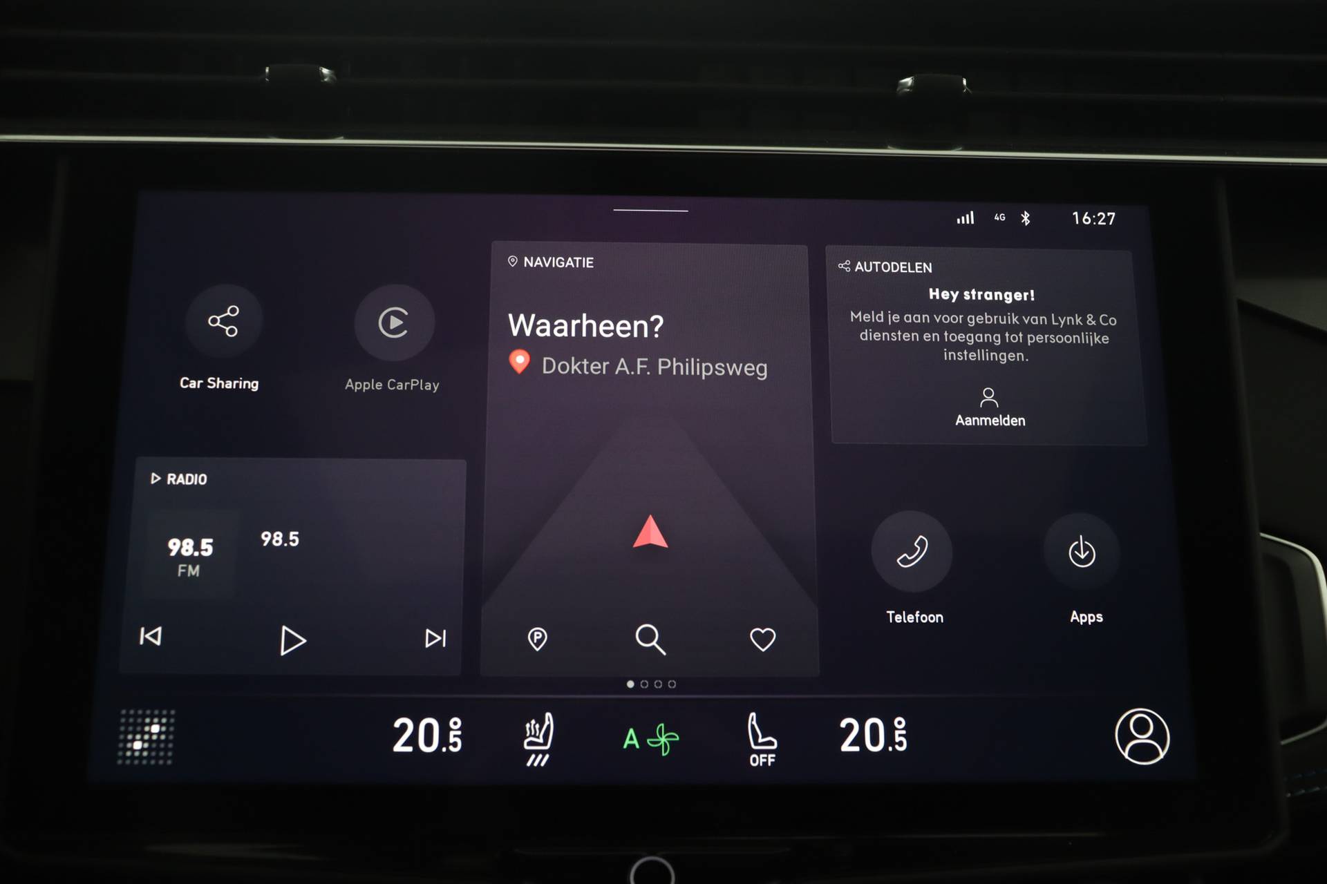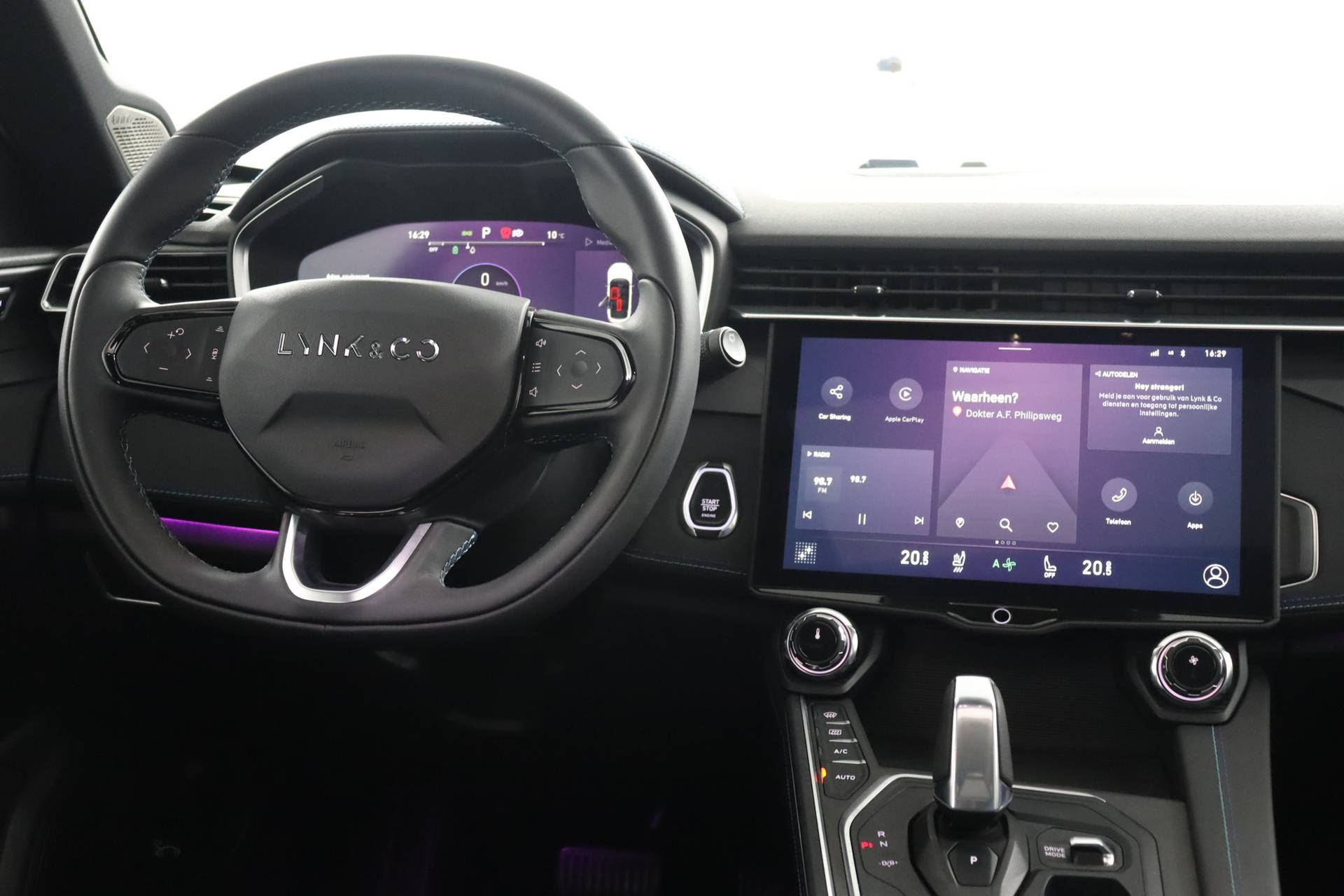 Bij de bouw van de Lynk & Co 01 wordt niets aan het toeval overgelaten. Vandaar dat hier een auto staat die in optimale conditie verkeert. Elektrisch rijden of liever benzine? Kiezen hoeft niet, want de hybride motor maakt het allebei mogelijk. De elektrische achterklep opent met een druk op de knop, zodat u gemakkelijk toegang heeft tot de bagageruimte. Zicht, licht en toch dicht! Een geweldige rijervaring met het glazen panoramadak. In deze Lynk & Co profiteert u onder andere ook van: 20 inch lichtmetalen velgen, LED koplampen, dakspoiler, in delen neerklapbare achterbank, LED-achterlichten en verstelbare lendensteunen. Het digitale dashboard is qua lay-out en zichtbaarheid superslim ingedeeld. Alle functies in één keer in beeld! Als u de adaptive cruise control inschakelt, regelt de auto zelf de snelheid en de afstand tot de auto voor u. Kop aan kont langzaam rijden: dan is afstand houden soms lastig. De file assistent helpt en zorgt automatisch voor veilige ruimte tot de voorligger. Ook als die tot stilstand komt. Een belangrijke veiligheidsvoorziening is de bediening van het audio-installatiesysteem en het full map navigatiesysteem, via knoppen op het stuur en middels spraakbediening. DAB-ontvangst geeft daarbij een kraakheldere ontvangst. Met de draadloze telefoonlader laadt uw smartphone automatisch op tijdens het rijden. Natuurlijk behoren achteropkomend verkeer waarschuwing, automatische airconditioning, parkeersensoren achter, regensensor, keyless entry en automatisch dimmende binnenspiegel ook tot de uitrusting van deze complete auto. De nieuwste veiligheidssystemen komen in deze Lynk & Co 01 samen. Onderweg zorgt verkeersborddetectie ervoor dat u geen waarschuwingsbord mist. Het Lane-keeping systeem zorgt dat u mooi binnen de lijntjes blijft. Ongemerkt buiten de rijstrook komen is er niet meer bij. Op een kop-staartbotsing zit niemand te wachten. Daarom is de forward collision warning onderweg constant alert en berekent via een sensor de veilige afstand tot voorliggers. Dankzij veiligheidsvoorzieningen als dodehoekdetectie, hill hold functie, brake assist en vermoeidheidsherkenning, bent u steeds veilig onderweg. Meer weten? Neem nu contact met ons op voor een afspraak.