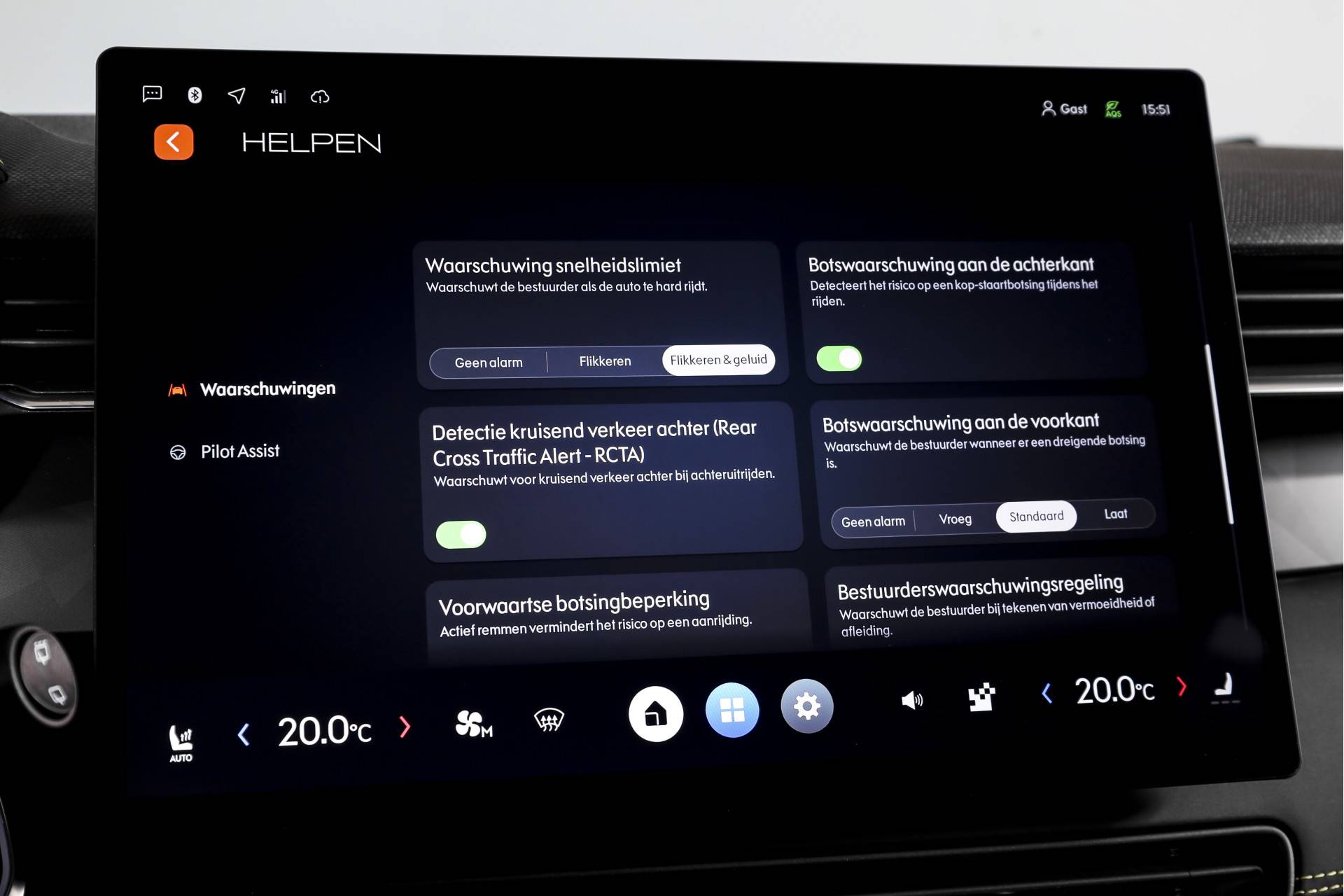 De rijervaring wordt ondersteund door cruise control adaptief, dat vanzelf afstand bewaart tot voorgangers. Veiligheid speelt verder een grote rol, met onder andere een dodehoek detector, een rijtstrooksensor met correctie en de praktische rondomzicht camera voor goed overzicht bij manoeuvreren. In drukke situaties of bij parkeren helpen de parkeersensoren voor en achter, wat het dagelijks gebruik echt makkelijker maakt.
