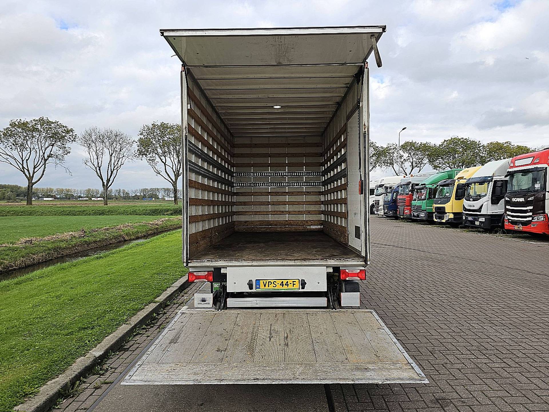 Configuratie: 4x2, Dubbele banden, Laadvermogen: 544 kg, Eigen gewicht: 2956 kg, Totaalgewicht: 3500 kg, Soort cabine: enkele cabine, Cruise control, Tachograaf, Airconditioning, Aantal airbags: 2, Parkeerhulp: Geen, Elektrische ramen, Elektrische spiegels, Radio/cassette, Kleur: Wit, Verwarmde spiegels, Soort lampen: Halogeen, Laneassist, Motorvermogen: 130 Kw (174 Hp), Brandstof: diesel, Euro: 6, Distributie type: Distributieriem, Soort versnellingsbak: Automaat, Stuurbekrachtiging, ABS (Anti Blokkeer Systeem), ASR (Anti Slip Regeling), Start accu, Imperiaal: Geen, Zijdeuren: 1, Achtersluiting: achterklep, Centrale vergrendeling, Zitplaatsen: 3, Stoelopstelling: 1+2, Stoelbekleding: stof, Stoel verstelling: Handmatig, Laadklep, Soort laadklep: achtersluit klep, Capaciteit laadklep: 750 kg, Merk laadklep: Dhollandia, Plateau grootte: 215x160, Bakwagen Laadklep Dubbellucht Automaat Spoiler Zijdeur Euro6!, Banden soort: Zomer banden