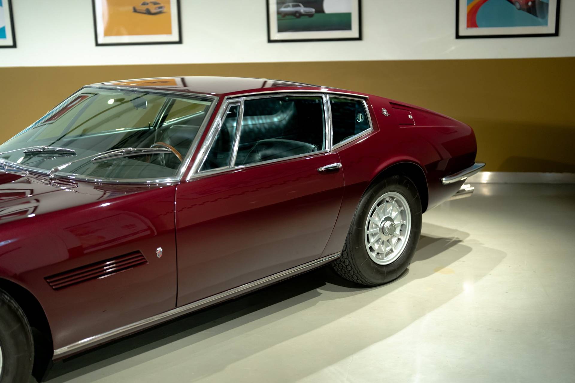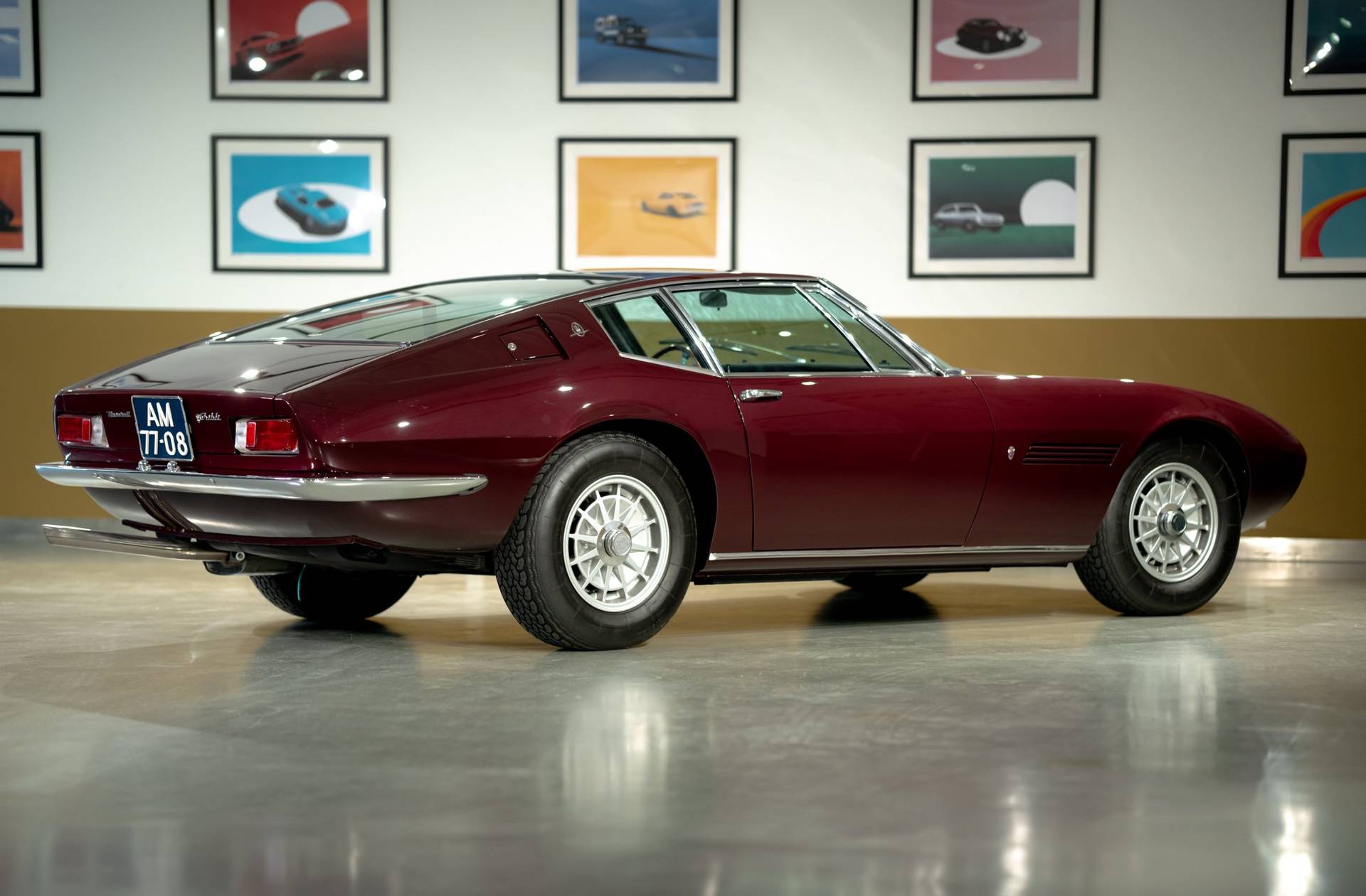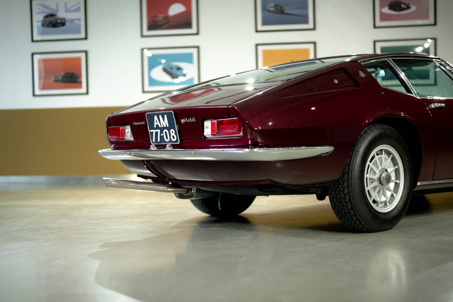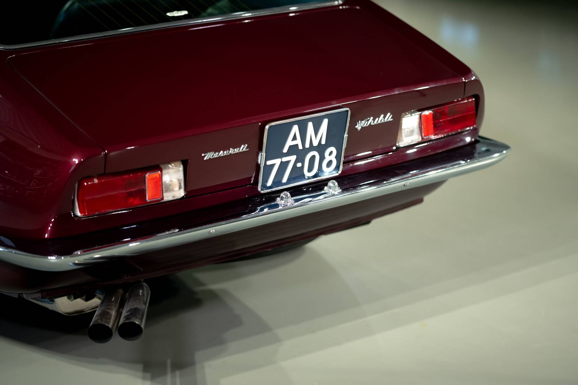 Dit exemplaar is een vroege exemplaar uit het eerste productiejaar 1967 en werd aan een Amerikaanse klant afgeleverd. De eerste serie Ghibli is o.a. te herkennen aan de zogenoemde ‘Drop Down’ achterklep waarbij de rand doorloopt tot aan de achterbumper, aan de dubbele remklauwen voor, een dubbele thermostaat, Smiths meters en roestvrijstalen sierstrips in het dashboard. Deze Ghibli bezit al deze zeldzame en waarde verhogende kenmerken. De auto wordt aangedreven door een vooraan geplaatste 4.719 cc V8 krachtbron met vier bovenliggende nokkenassen. Zaken als een dry-sump smering en de voorziening voor twee bougies per cilinder, tonen duidelijk dat de motor uit de racerij afstamt, ook de originele handgeschakelde vijfversnellingsbak van ZF benadrukt dit nog eens extra. De auto werd in augustus 2002 door de Nederlandse eigenaar in Amerika gekocht. In Nederland is de carrosserie en onderstel geheel gerestaureerd bij de gerenommeerde restaurateur Martin Dijkhof. Daar is de auto volledig gedemonteerd en is de body geheel in nieuwstaat gebracht. In nagenoeg dezelfde periode heeft ook de mechanische restauratie plaatsgevonden, waarbij het gehele draaiend gedeelte onder handen is genomen, inclusief de transmissie en aandrijving. Een volledig dossier is aanwezig met een uitgebreide foto reportage en alle gespecificeerde facturen van de jaren durende restauratie. Deze fascinerende Coupe verkeert zowel optisch als mechanisch in een absolute nieuwstaat. Een dergelijke auto in deze conditie te vinden is uiterst zeldzaam, dit exemplaar heeft nog de bijkomstigheid dat hij perfect rijdt. Kortom een investering waarmee men ook heel veel plezier kan beleven.