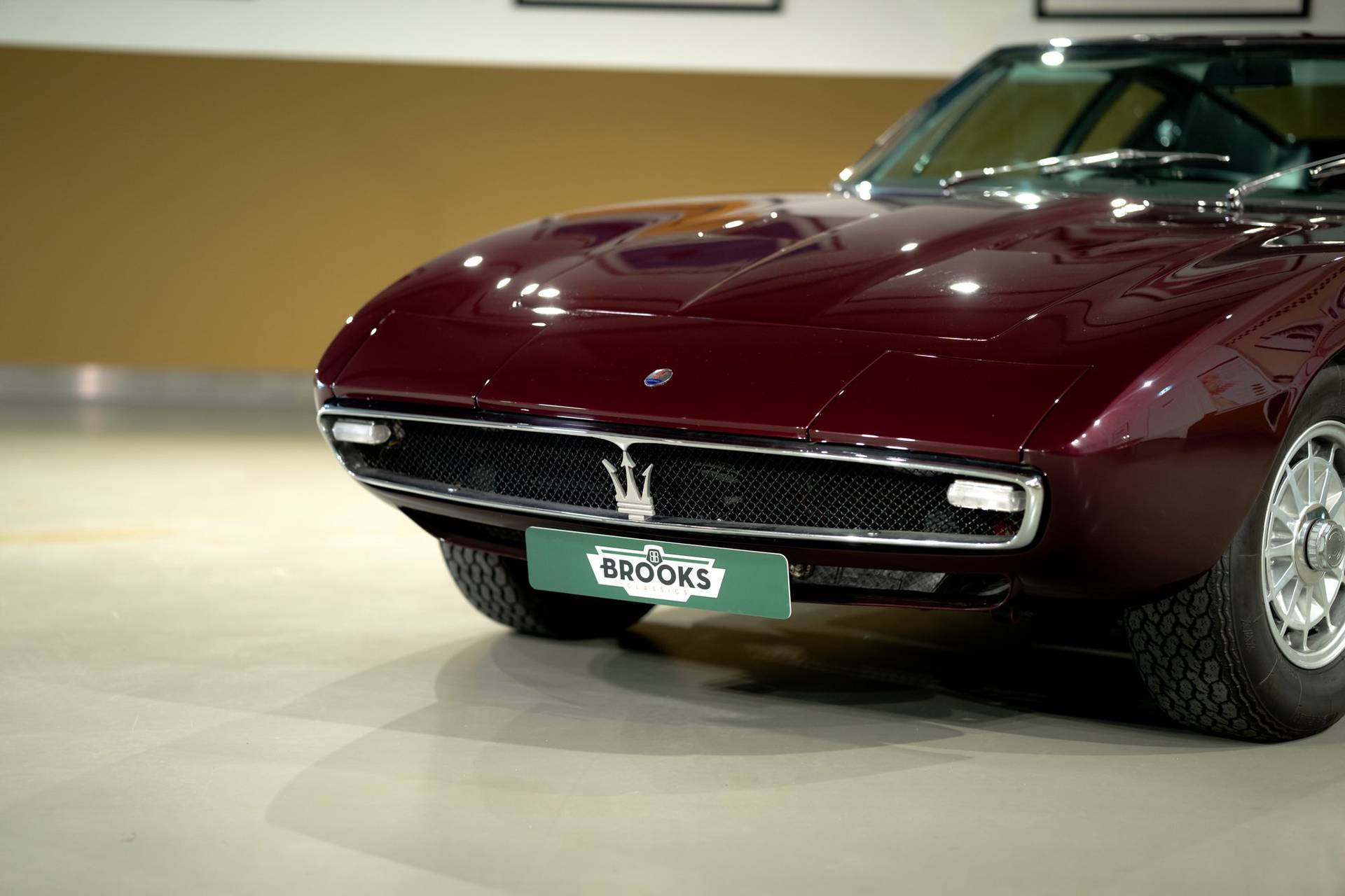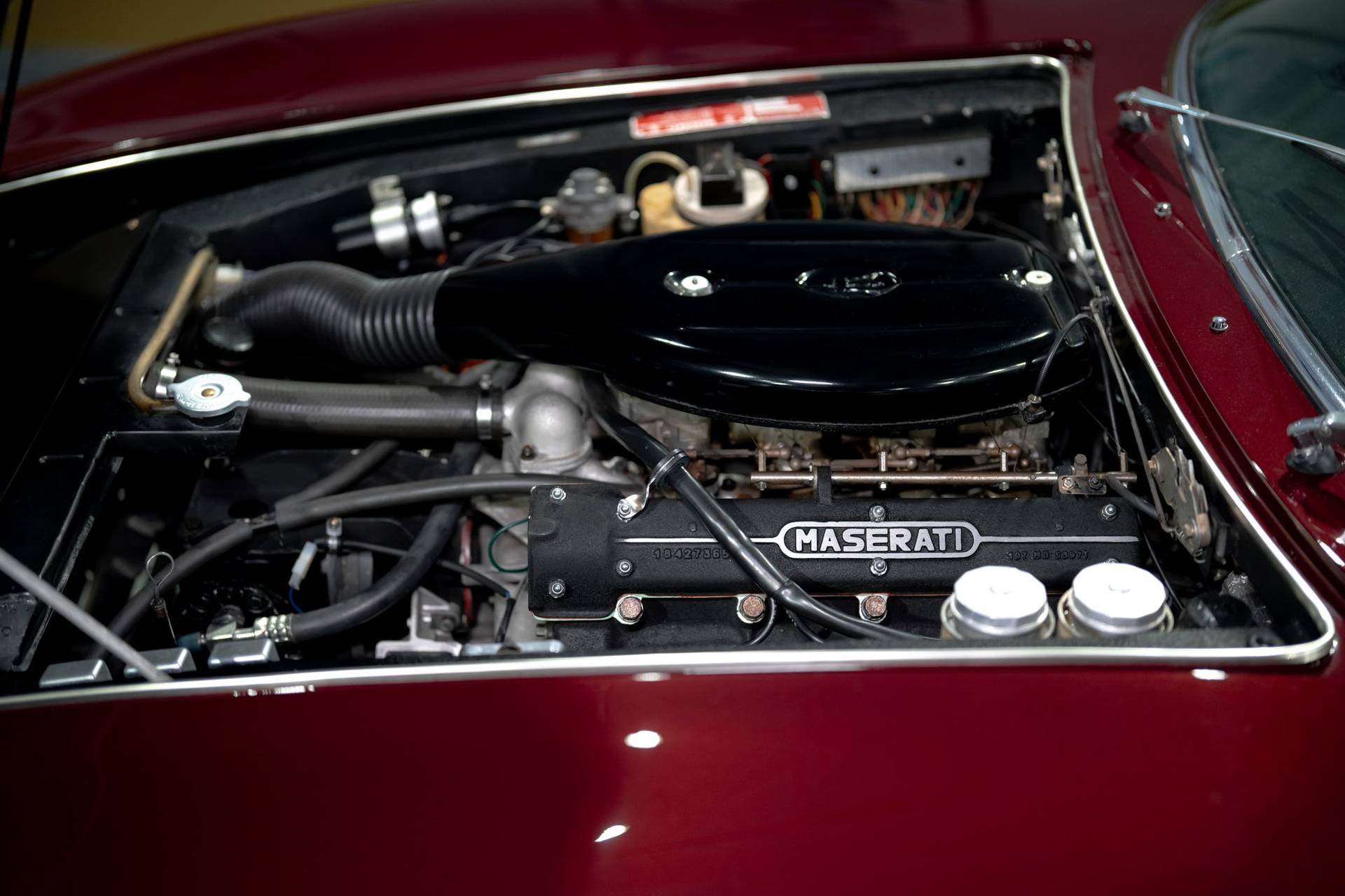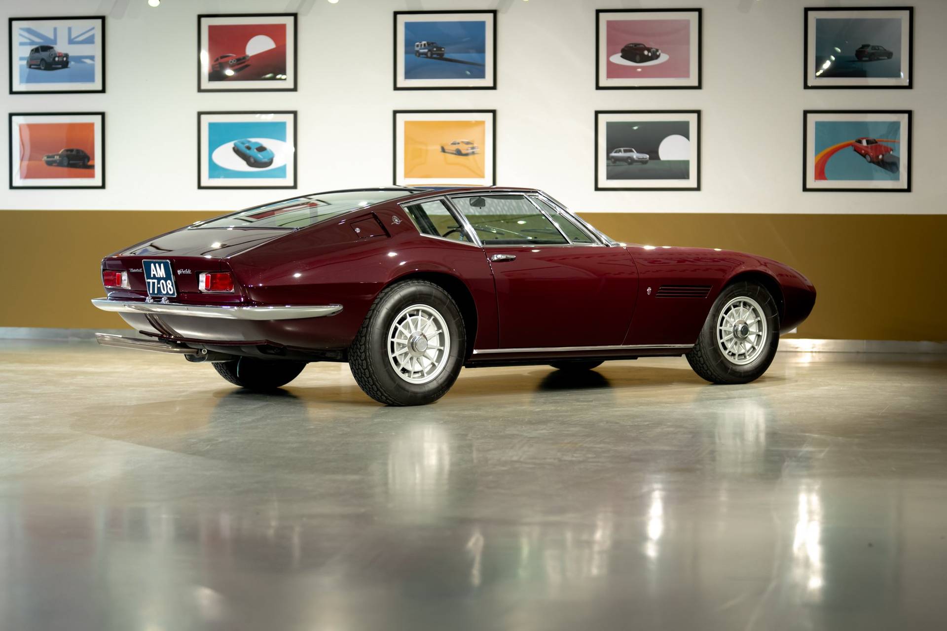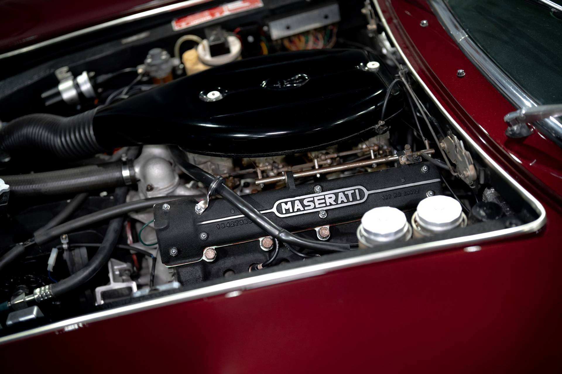 Dit exemplaar is een vroege exemplaar uit het eerste productiejaar 1967 en werd aan een Amerikaanse klant afgeleverd. De eerste serie Ghibli is o.a. te herkennen aan de zogenoemde ‘Drop Down’ achterklep waarbij de rand doorloopt tot aan de achterbumper, aan de dubbele remklauwen voor, een dubbele thermostaat, Smiths meters en roestvrijstalen sierstrips in het dashboard. Deze Ghibli bezit al deze zeldzame en waarde verhogende kenmerken. De auto wordt aangedreven door een vooraan geplaatste 4.719 cc V8 krachtbron met vier bovenliggende nokkenassen. Zaken als een dry-sump smering en de voorziening voor twee bougies per cilinder, tonen duidelijk dat de motor uit de racerij afstamt, ook de originele handgeschakelde vijfversnellingsbak van ZF benadrukt dit nog eens extra. De auto werd in augustus 2002 door de Nederlandse eigenaar in Amerika gekocht. In Nederland is de carrosserie en onderstel geheel gerestaureerd bij de gerenommeerde restaurateur Martin Dijkhof. Daar is de auto volledig gedemonteerd en is de body geheel in nieuwstaat gebracht. In nagenoeg dezelfde periode heeft ook de mechanische restauratie plaatsgevonden, waarbij het gehele draaiend gedeelte onder handen is genomen, inclusief de transmissie en aandrijving. Een volledig dossier is aanwezig met een uitgebreide foto reportage en alle gespecificeerde facturen van de jaren durende restauratie. Deze fascinerende Coupe verkeert zowel optisch als mechanisch in een absolute nieuwstaat. Een dergelijke auto in deze conditie te vinden is uiterst zeldzaam, dit exemplaar heeft nog de bijkomstigheid dat hij perfect rijdt. Kortom een investering waarmee men ook heel veel plezier kan beleven.