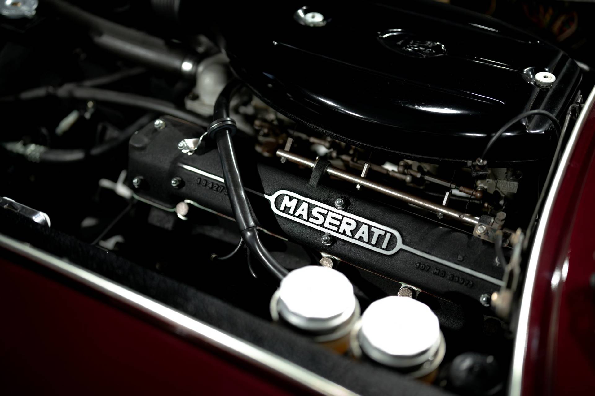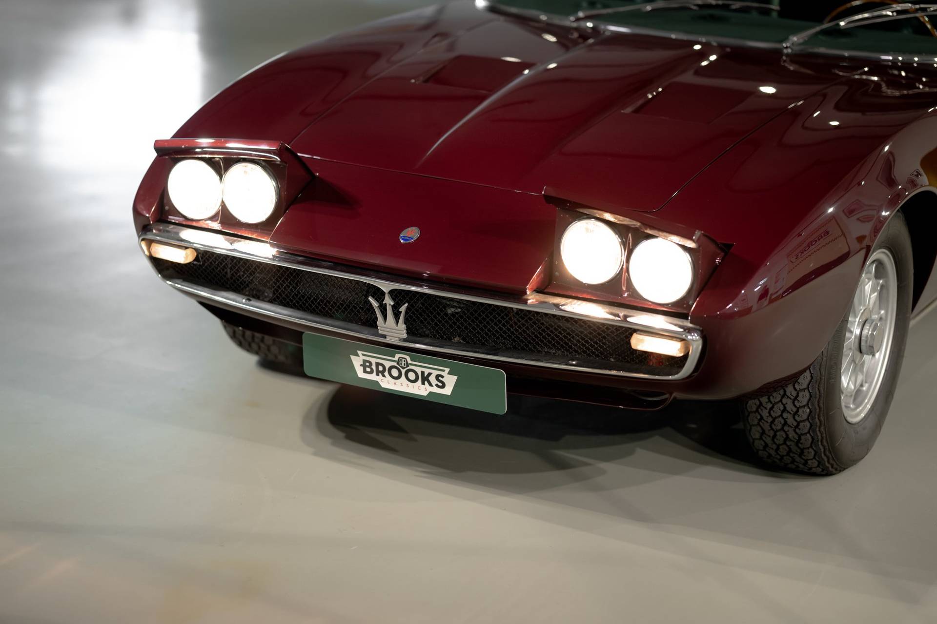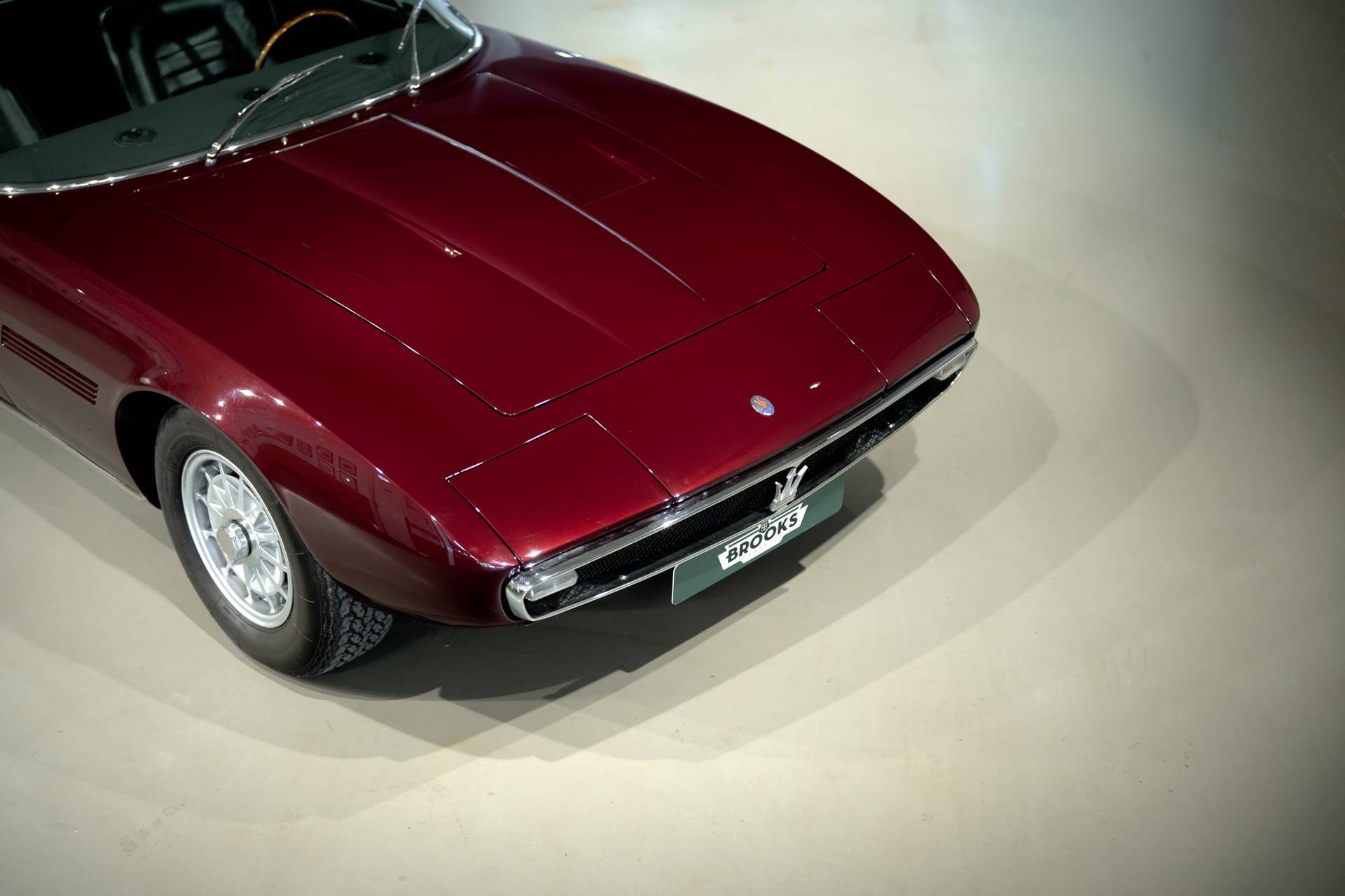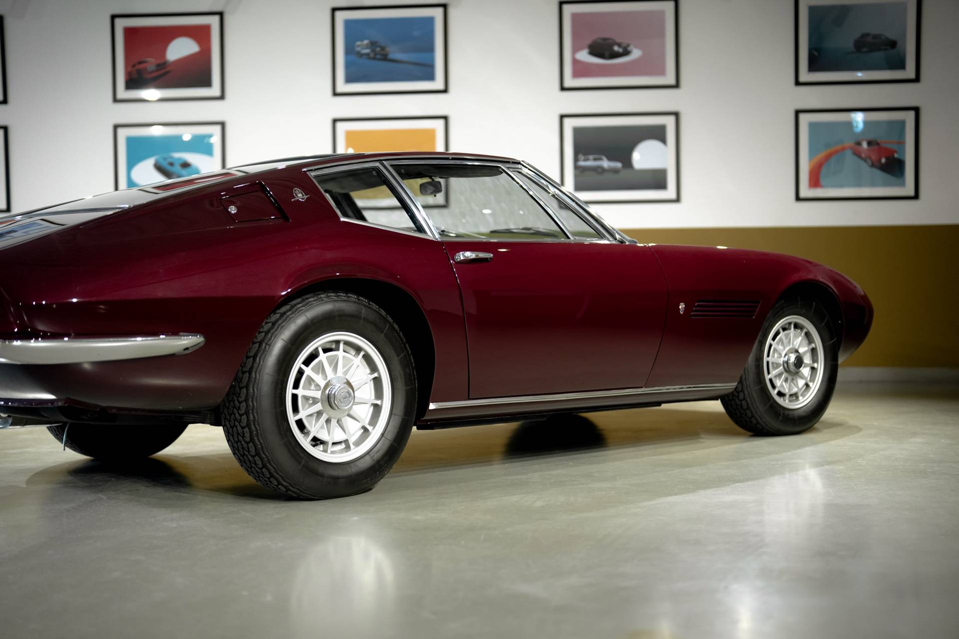 Dit exemplaar is een vroege exemplaar uit het eerste productiejaar 1967 en werd aan een Amerikaanse klant afgeleverd. De eerste serie Ghibli is o.a. te herkennen aan de zogenoemde ‘Drop Down’ achterklep waarbij de rand doorloopt tot aan de achterbumper, aan de dubbele remklauwen voor, een dubbele thermostaat, Smiths meters en roestvrijstalen sierstrips in het dashboard. Deze Ghibli bezit al deze zeldzame en waarde verhogende kenmerken. De auto wordt aangedreven door een vooraan geplaatste 4.719 cc V8 krachtbron met vier bovenliggende nokkenassen. Zaken als een dry-sump smering en de voorziening voor twee bougies per cilinder, tonen duidelijk dat de motor uit de racerij afstamt, ook de originele handgeschakelde vijfversnellingsbak van ZF benadrukt dit nog eens extra. De auto werd in augustus 2002 door de Nederlandse eigenaar in Amerika gekocht. In Nederland is de carrosserie en onderstel geheel gerestaureerd bij de gerenommeerde restaurateur Martin Dijkhof. Daar is de auto volledig gedemonteerd en is de body geheel in nieuwstaat gebracht. In nagenoeg dezelfde periode heeft ook de mechanische restauratie plaatsgevonden, waarbij het gehele draaiend gedeelte onder handen is genomen, inclusief de transmissie en aandrijving. Een volledig dossier is aanwezig met een uitgebreide foto reportage en alle gespecificeerde facturen van de jaren durende restauratie. Deze fascinerende Coupe verkeert zowel optisch als mechanisch in een absolute nieuwstaat. Een dergelijke auto in deze conditie te vinden is uiterst zeldzaam, dit exemplaar heeft nog de bijkomstigheid dat hij perfect rijdt. Kortom een investering waarmee men ook heel veel plezier kan beleven.