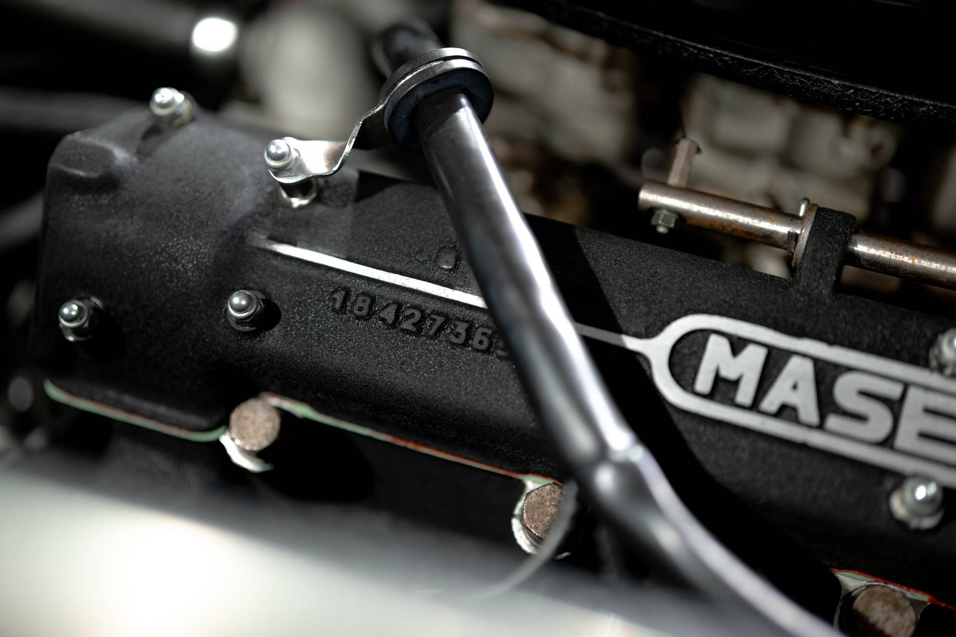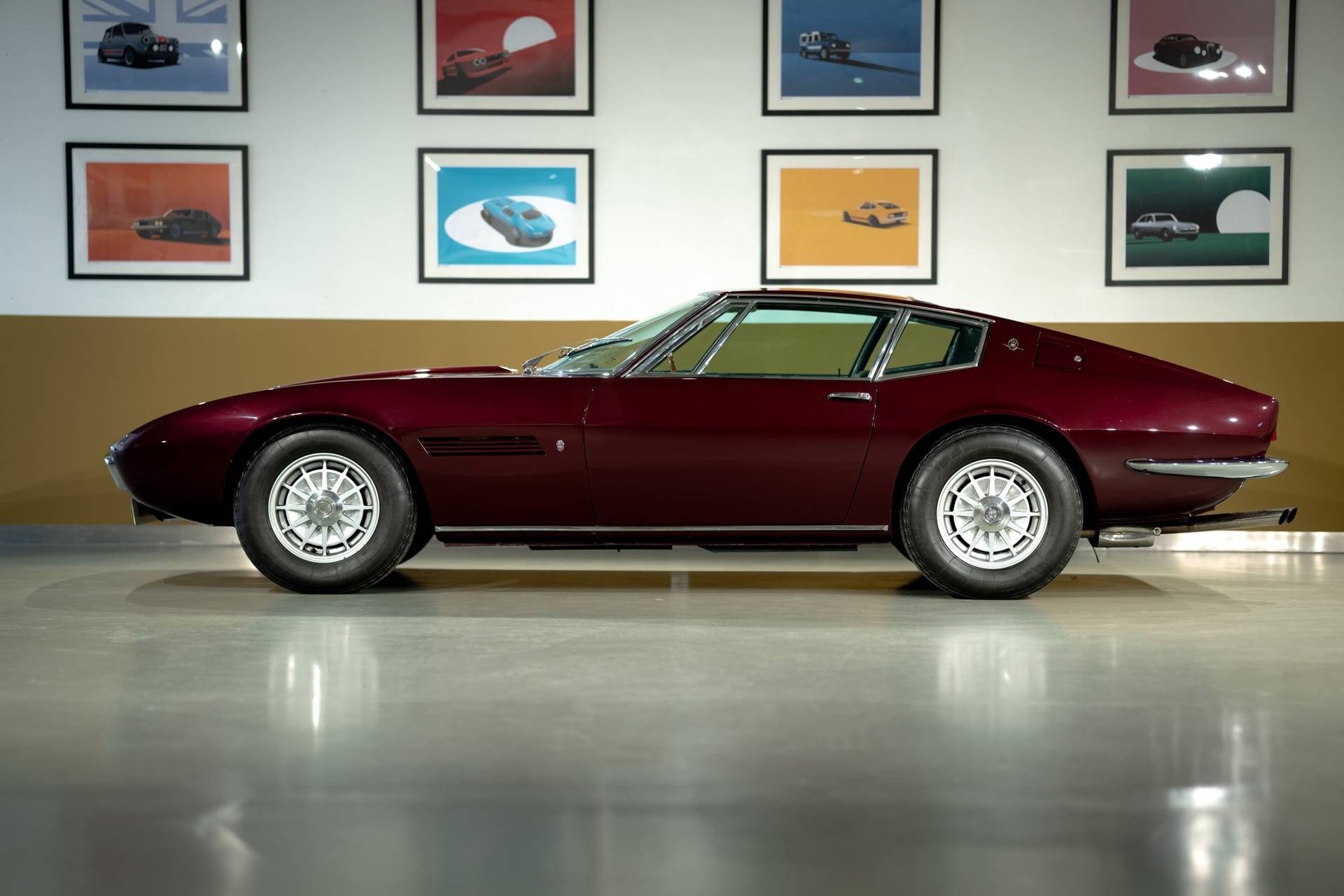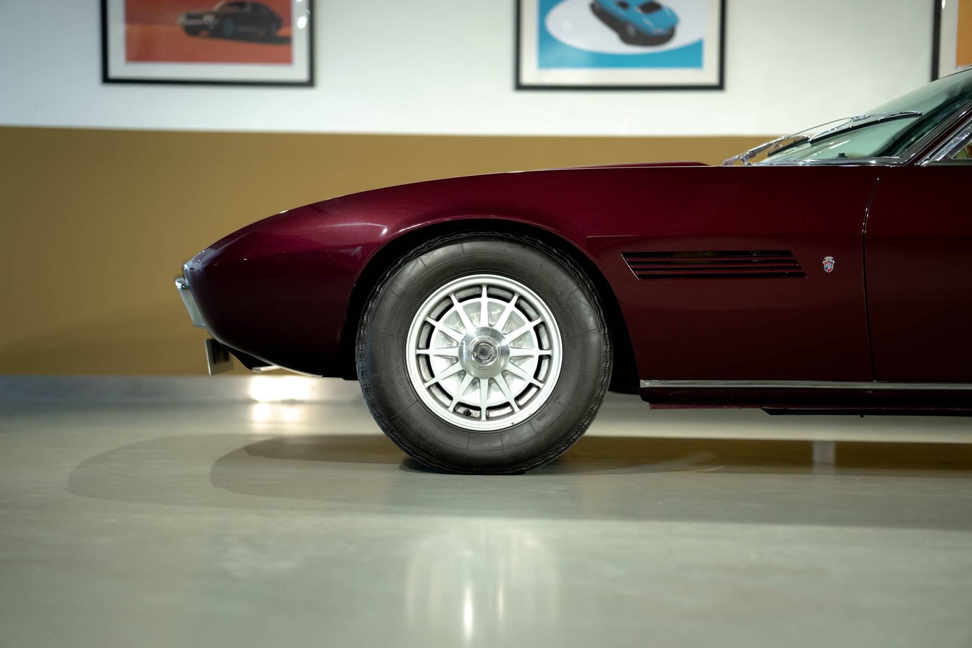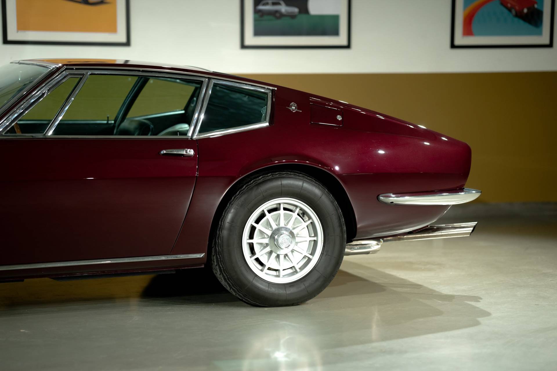 Dit exemplaar is een vroege exemplaar uit het eerste productiejaar 1967 en werd aan een Amerikaanse klant afgeleverd. De eerste serie Ghibli is o.a. te herkennen aan de zogenoemde ‘Drop Down’ achterklep waarbij de rand doorloopt tot aan de achterbumper, aan de dubbele remklauwen voor, een dubbele thermostaat, Smiths meters en roestvrijstalen sierstrips in het dashboard. Deze Ghibli bezit al deze zeldzame en waarde verhogende kenmerken. De auto wordt aangedreven door een vooraan geplaatste 4.719 cc V8 krachtbron met vier bovenliggende nokkenassen. Zaken als een dry-sump smering en de voorziening voor twee bougies per cilinder, tonen duidelijk dat de motor uit de racerij afstamt, ook de originele handgeschakelde vijfversnellingsbak van ZF benadrukt dit nog eens extra. De auto werd in augustus 2002 door de Nederlandse eigenaar in Amerika gekocht. In Nederland is de carrosserie en onderstel geheel gerestaureerd bij de gerenommeerde restaurateur Martin Dijkhof. Daar is de auto volledig gedemonteerd en is de body geheel in nieuwstaat gebracht. In nagenoeg dezelfde periode heeft ook de mechanische restauratie plaatsgevonden, waarbij het gehele draaiend gedeelte onder handen is genomen, inclusief de transmissie en aandrijving. Een volledig dossier is aanwezig met een uitgebreide foto reportage en alle gespecificeerde facturen van de jaren durende restauratie. Deze fascinerende Coupe verkeert zowel optisch als mechanisch in een absolute nieuwstaat. Een dergelijke auto in deze conditie te vinden is uiterst zeldzaam, dit exemplaar heeft nog de bijkomstigheid dat hij perfect rijdt. Kortom een investering waarmee men ook heel veel plezier kan beleven.