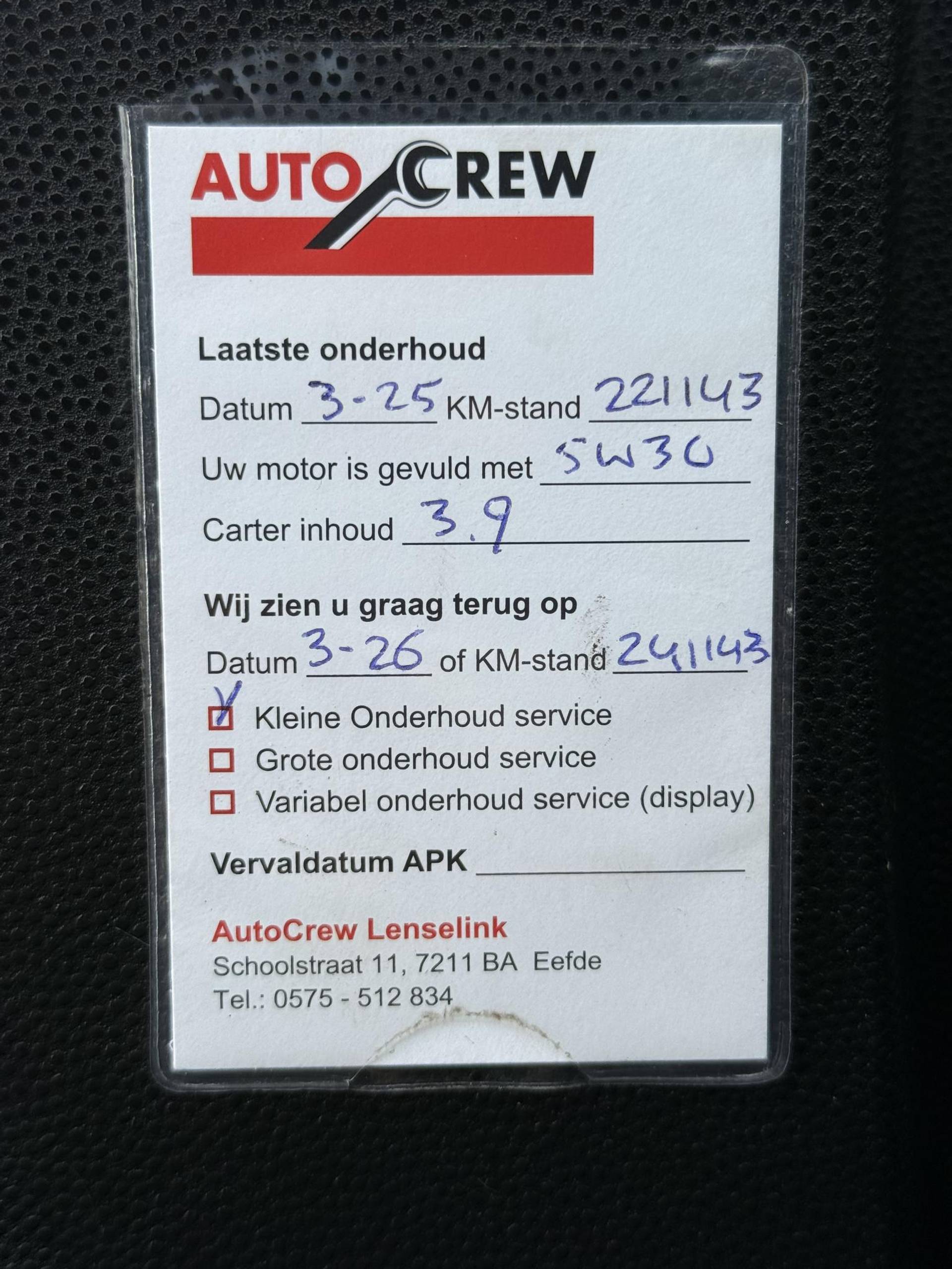 ✓ APK bij aflevering: N