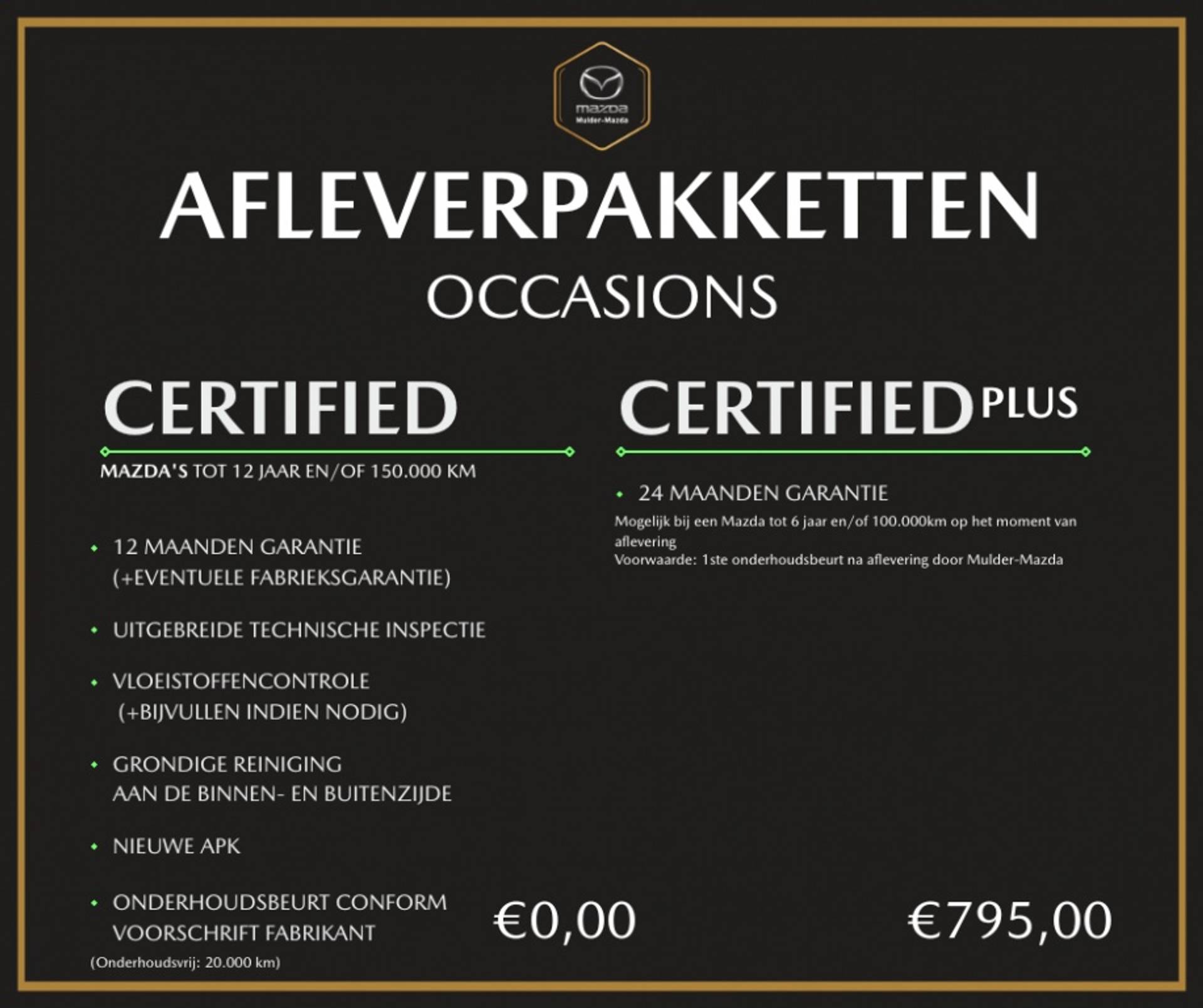 Met het “Certified Plus” ontvangt op uw Mazda bovenstaande en 24 maanden garantie voor slechts € 795,-.