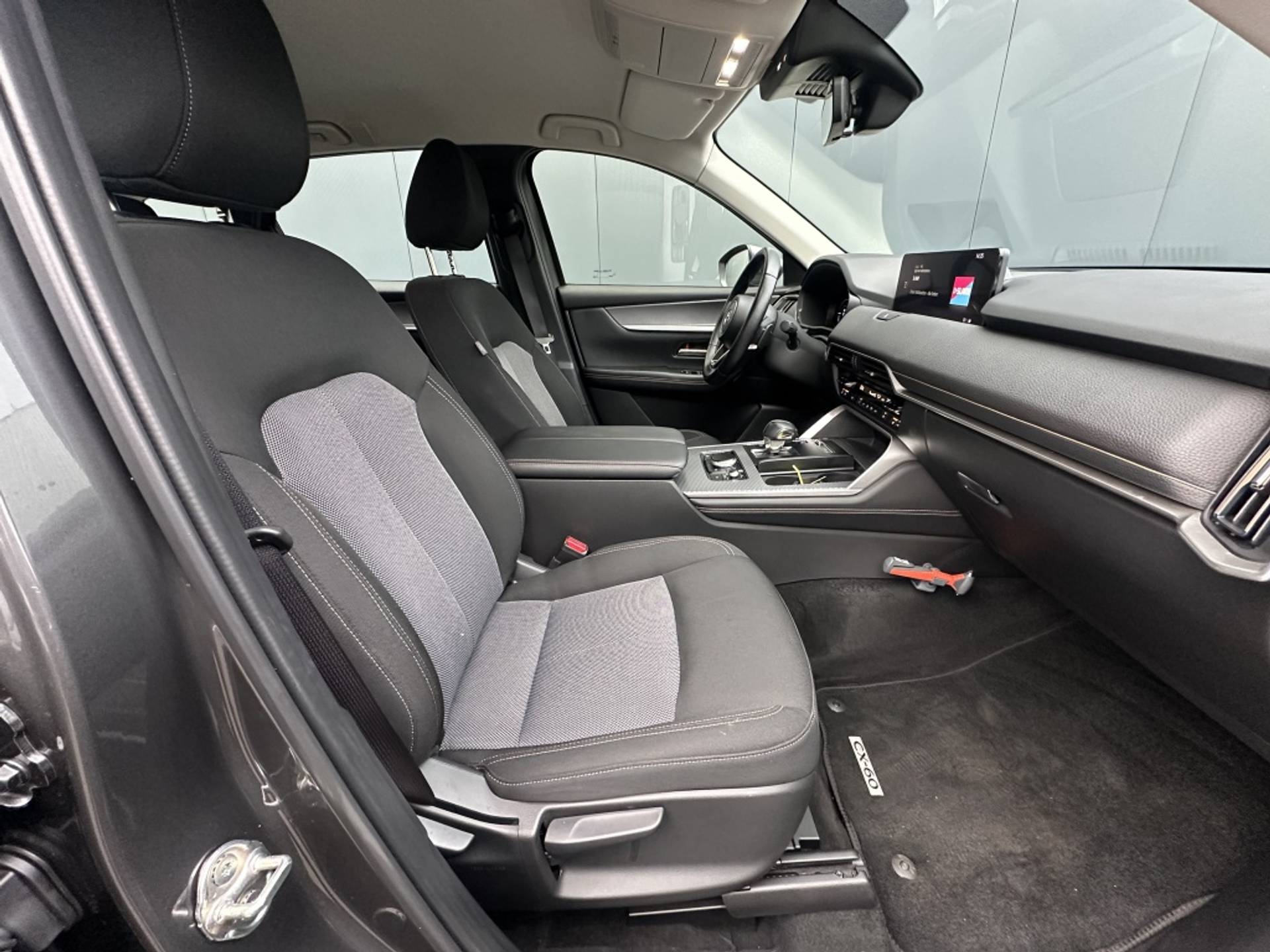 De Mazda CX-60 2.5 PHEV Exclusive-Line uit 2022, als eerste eigenaar, is een absolute parel op het gebied van hybride benzine auto's. Met een krachtig vermogen van 192 PK en een CC van 2488, staat deze SUV garant voor een indrukwekkende rijervaring. De opvallende grijze kleur en de metallic lak geven deze auto een moderne en stijlvolle uitstraling.