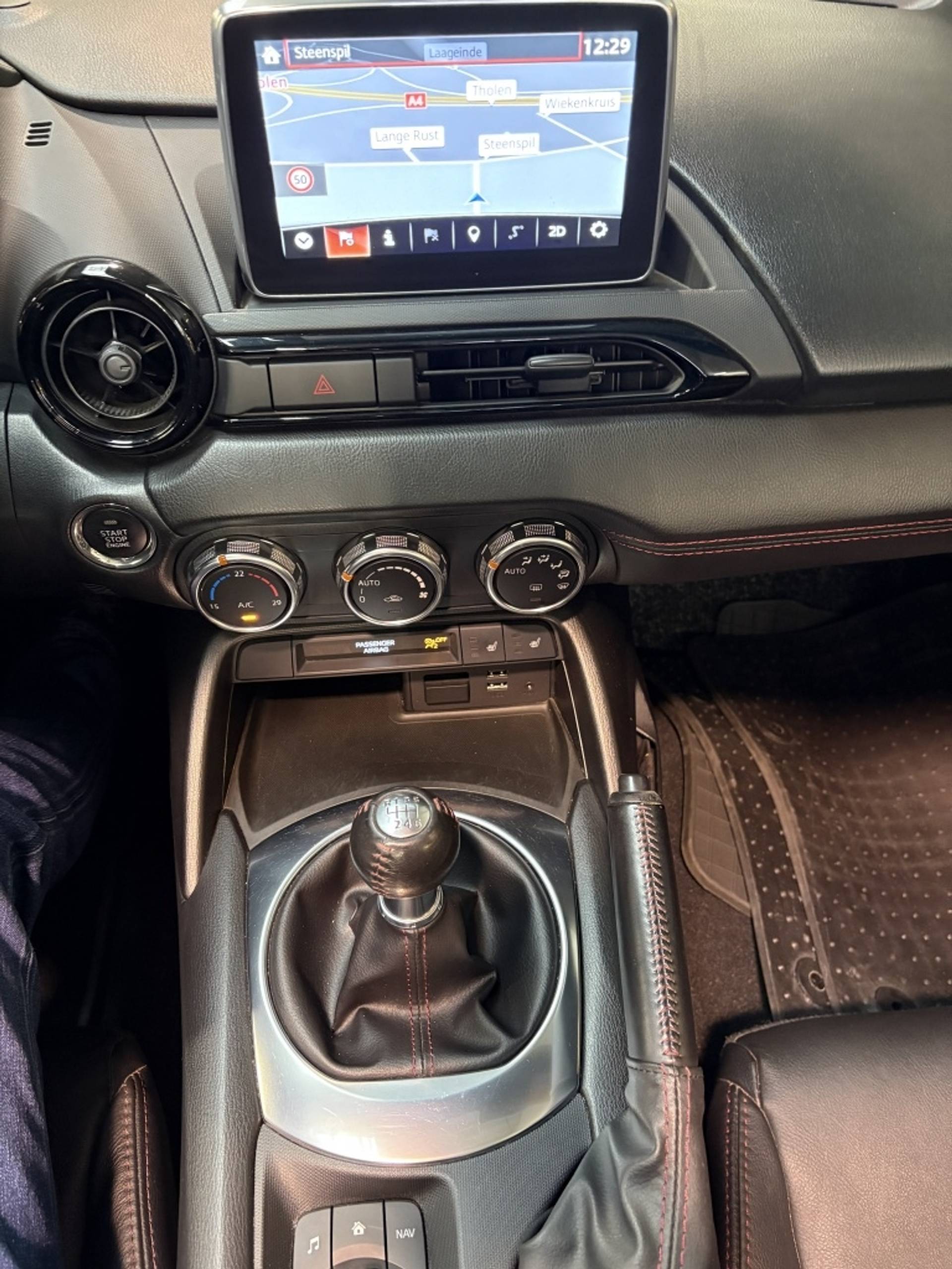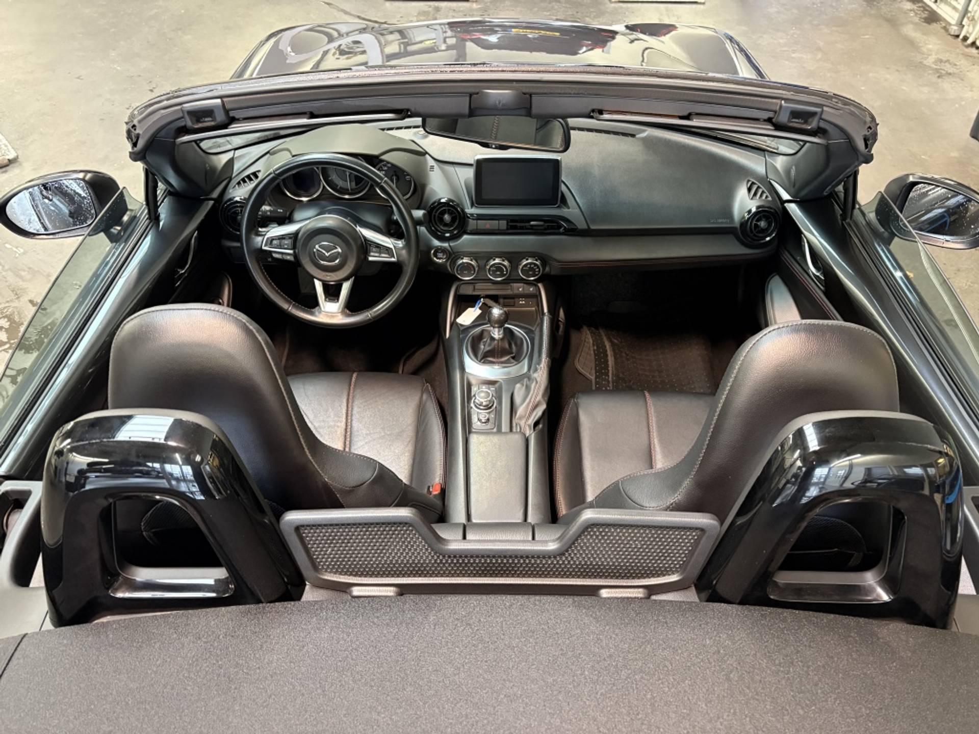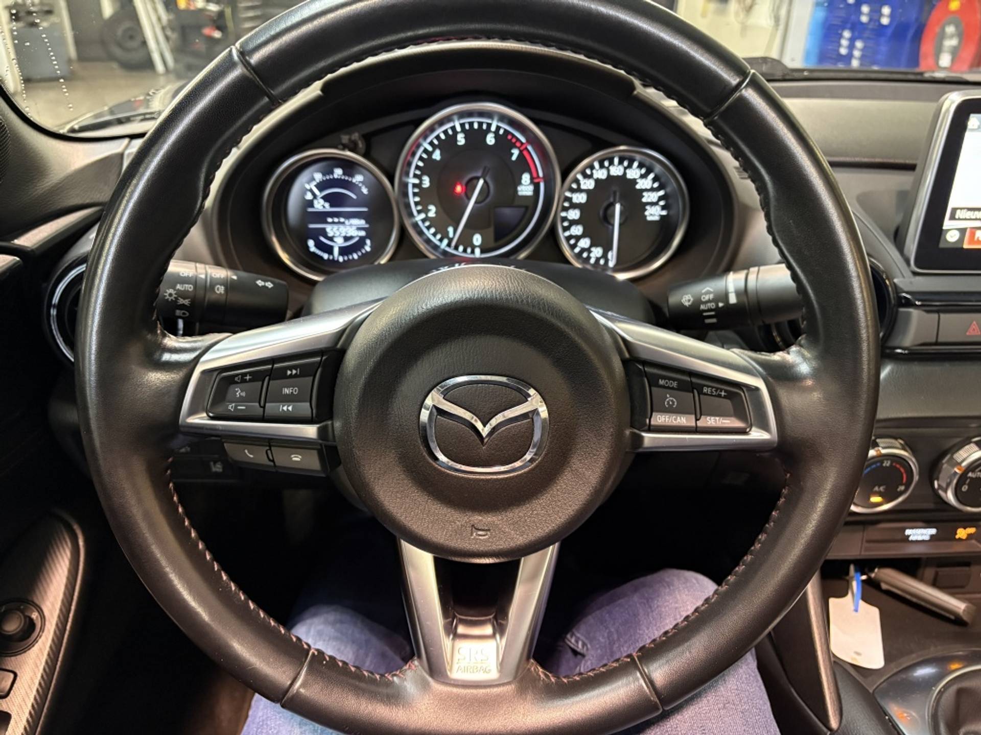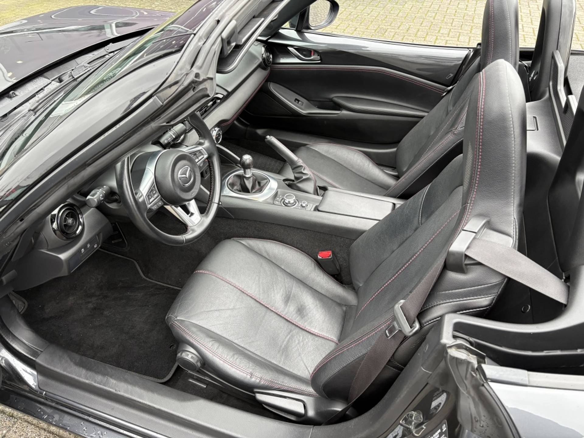 Deze MX-5 is afkomstig uit Duitsland. Het digitale serviceregister van Mazda is aanwezig en ter inzage beschibkaar. Het is een Exclusive Line uitvoering en is het 3e niveau van de destijds in totaal 4 verschillende luxe varianten. Deze versie is o.a. voorzien van: Interieurbekleding zwart leder met rood stiksel, Interieurelementen zwart kunstleder met rood stiksel, Lane Departure Warning (LDW): waarschuwing bij onbedoeld verlaten van de rijbaan, Climate control, Licht- en regensensor, Automatisch dimmende binnenspiegel, Verwarmbare stoelen en DAB+: Digital Radio+ ontvanger (incl. FM/AM). Daarnaast is deze auto voorzien van een fabrieks navigatie systeem. De mogelijkheid tot uitbreiding met Apple Car play/Android is nog steeds mogelijk. Daarnaast is deze auto voorzien van parkeersensoren achter en spoorverbreding voor en achter.