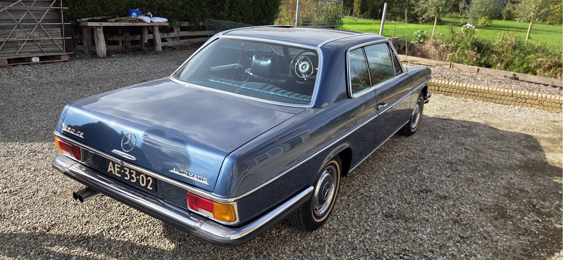 Na 23 jaar bezit bij de oude eigenaar mag deze prachtig bewaard gebleven Mercedes W114 (6 Cilinder) 250C coupe naar de volgende eigenaar. Geen roest aanwezig, lak verkeert in perfecte staat.