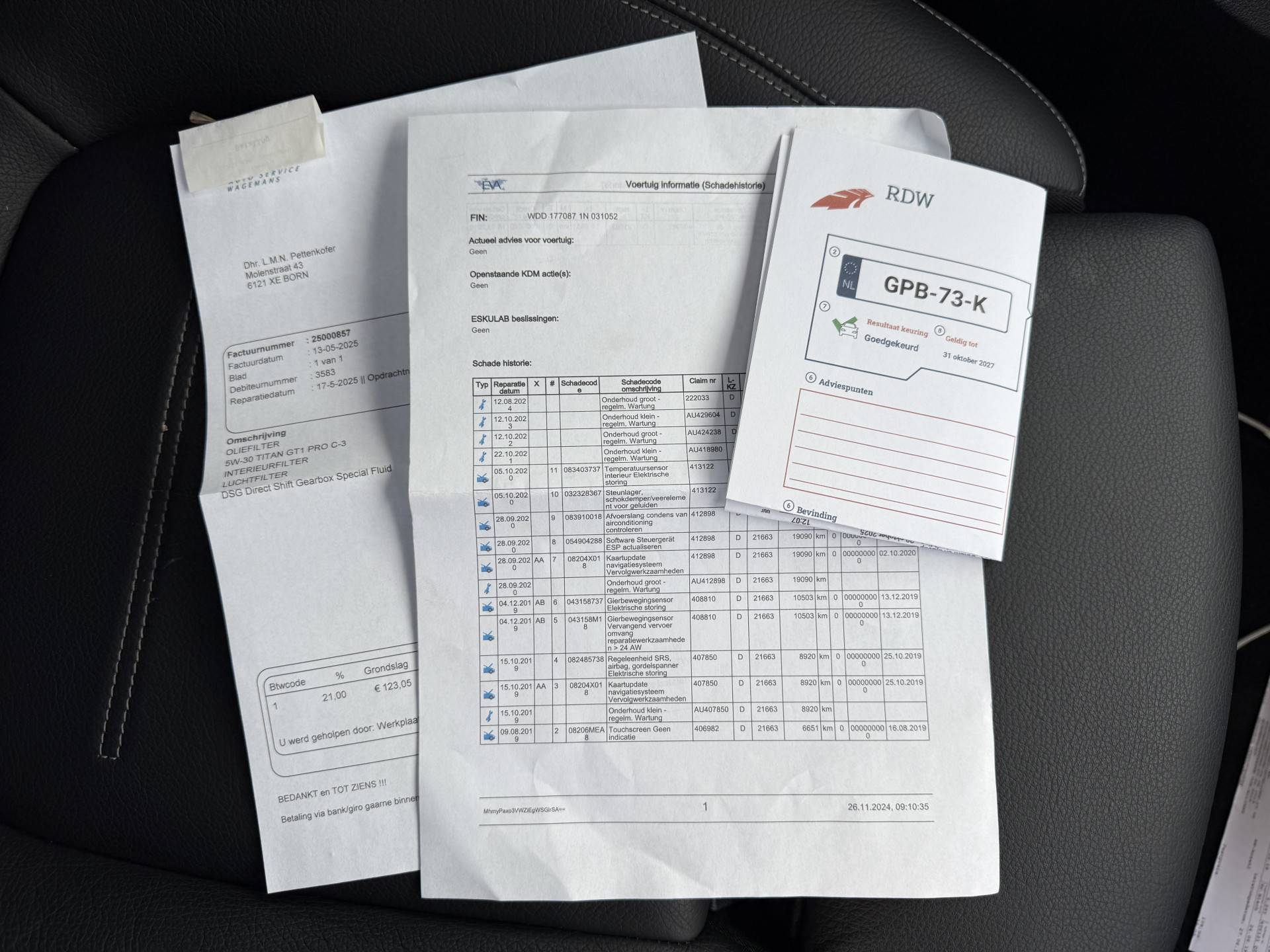 ✓ APK bij aflevering: J
