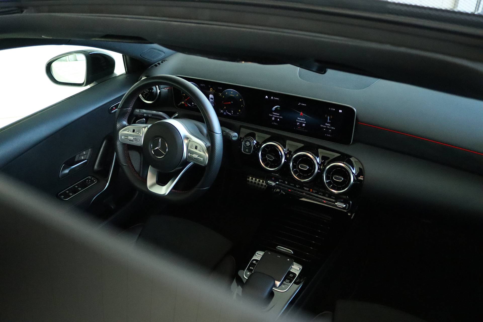 Mercedes-rijders houden niet van compromissen, stellen hoge eisen aan techniek, comfort en prestaties. 'The best or nothing', is de kreet. En dat merk je aan deze A-klasse. De verschillende elementen van de AMG-styling accentueren de dynamische lijnvoering van deze A-klasse. In deze auto vindt u een benzinemotor en een automatische transmissie. De verwarmbare voorstoelen zijn een heerlijke extra optie, waarmee u uzelf en uw bijrijder een groot plezier doet. De sportstoelen houden u en uw bijrijder goed op z'n plek tijdens het accelereren en bij het nemen van scherpe bochten. Licht en lucht komen onbelemmerd binnen als het elektrisch bediende glazen panoramadak met één druk op de knop wordt geopend. Ook 17 inch lichtmetalen velgen, LED koplampen, AMG-styling, extra getint glas, in delen neerklapbare achterbank en verstelbare lendensteunen horen tot de voorzieningen op deze auto. Het digitale dashboard zorgt voor een super functionele display van reisinformatie. Kommaar-kommaar-kommaar, aldus de achteruitrijcamera. Iedere centimeter vrije ruimte komt haarscherp in beeld. Schadevrij inparkeren maar! Bedient u de auto liever met uw stem? Dan is het goed om te weten dat spraakbediening aanwezig is. Dankzij Connected Services houdt u de auto nog gemakkelijker in topconditie. Elke dag. Altijd een deskundige gids aan boord, dankzij het navigatiesysteem met harde schijf. De uitrusting van deze auto is met electronic climate control, DAB ontvangst, regensensor, cruise control, sportstuurwiel en automatisch dimmende buitenspiegels behoorlijk compleet. De nieuwste veiligheidssystemen komen in deze Mercedes-Benz A-klasse samen. U rijdt ook veiliger omdat deze auto voor u de verkeersborden langs de weg kan lezen. De belangrijkste borden worden op uw instrumentarium geprojecteerd, zodat u ze niet kunt missen. Het Lane-keeping systeem garandeert dat u zich niet onverhoeds buiten de lijnen van de rijstrook begeeft. Het forward collision warning-systeem waarschuwt indien een botsing dreigt met een voorliggend of tegemoetkomend voertuig. De veiligheid van deze auto wordt verder verhoogd door brake assist, vermoeidheidsherkenning en bandenspanningcontrolesysteem. Probeer deze auto uit en maak een proefrit. We zetten 'm graag voor u klaar!