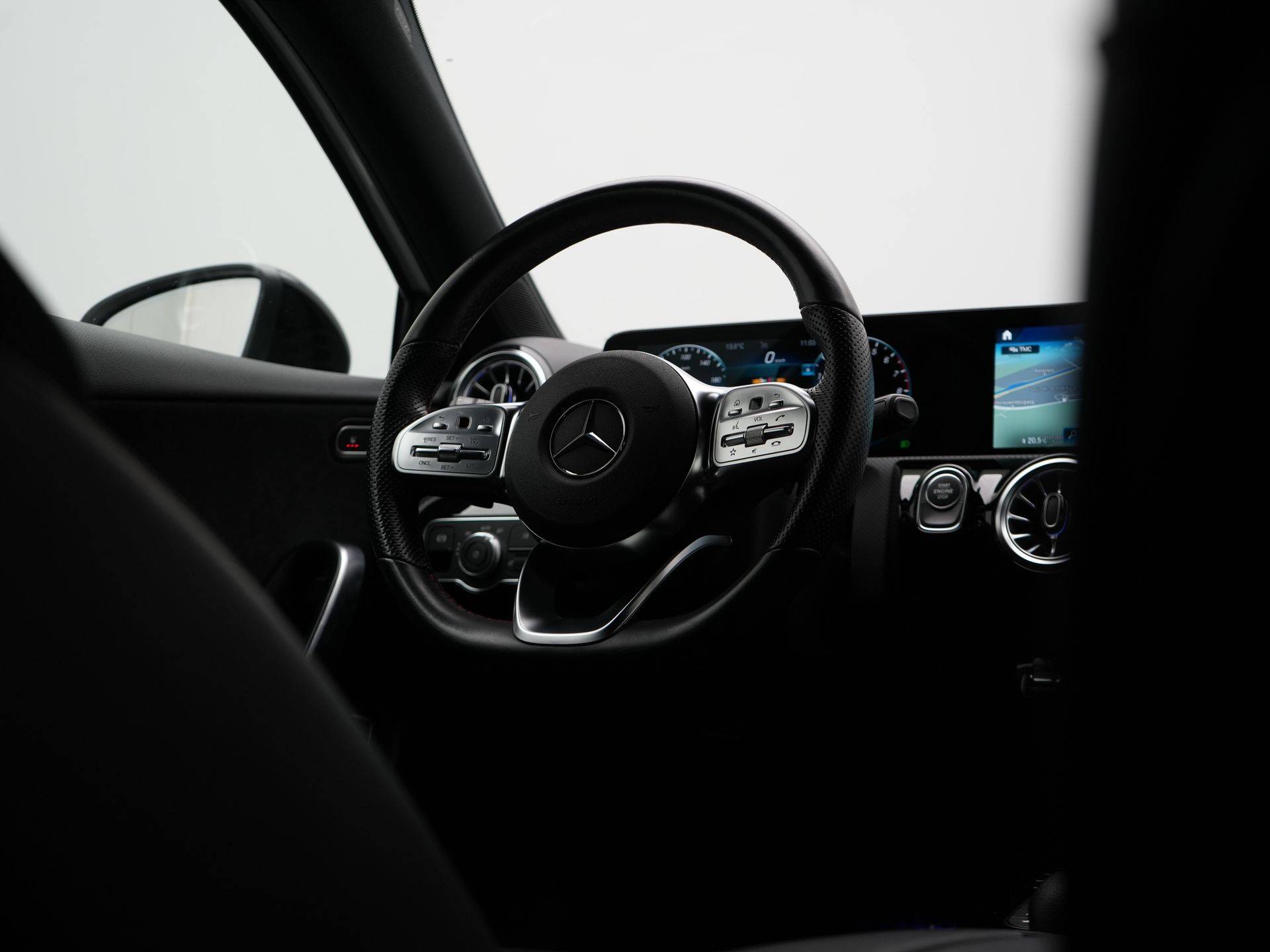 Mercedes-Benz A-klasse 250 e AMG Line Plug In Hybrid 218pk Dealer O.H. PHEV | Widescreen Navi | Camera | Alcantara Sportstoelen Verwarmd | Keyless | Sfeerverlichting | Cruise Control | Virtual | DAB | 18"L.M |