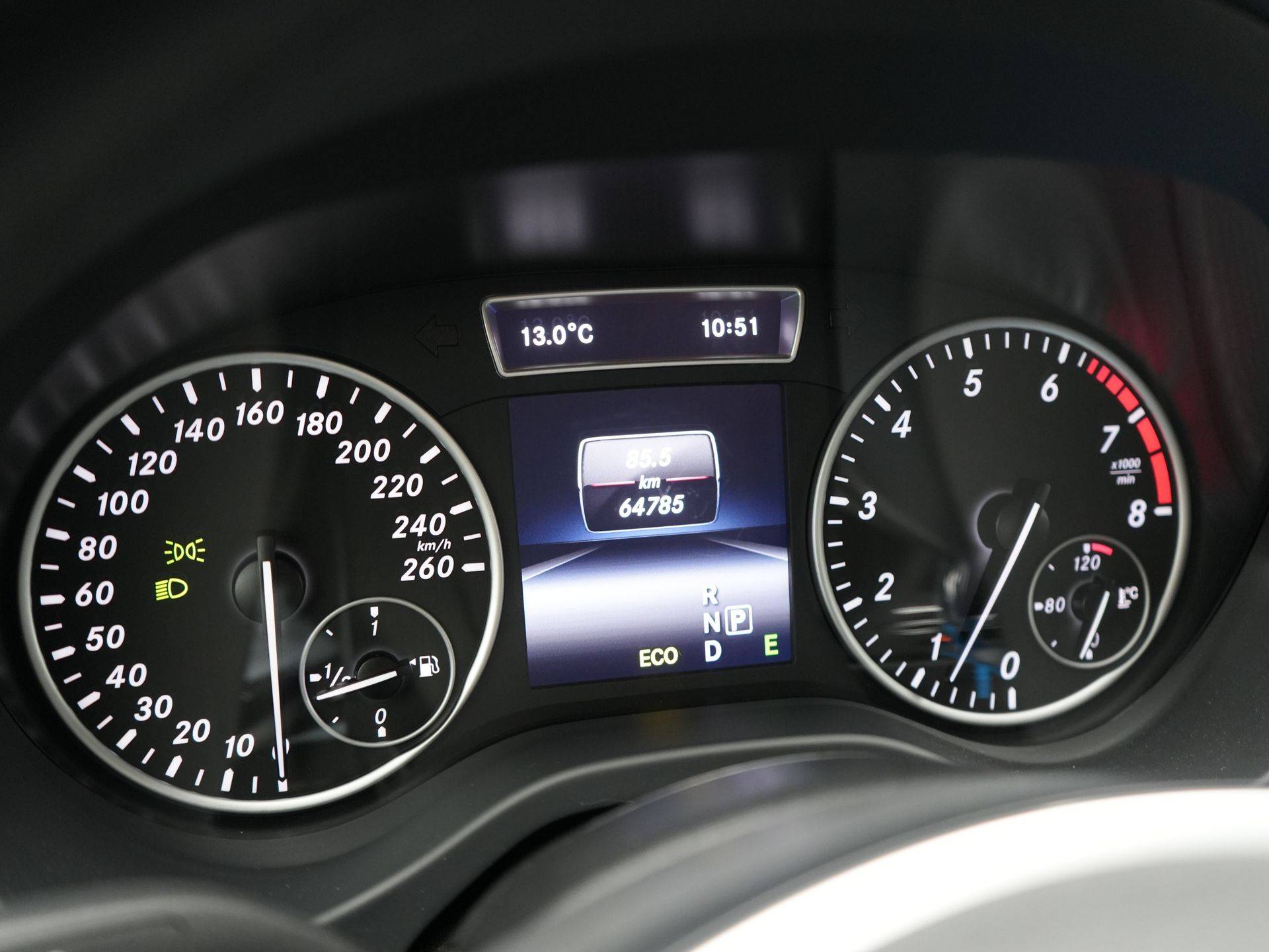 Naast de routeinformatie van het full map navigatiesysteem kunt u muziek via het audio-installatiesysteem ook online beluisteren via bluetooth. Inparkeren en uitparkeren kost geen enkele moeite dankzij de parkeersensoren. Het drukke verkeer eist onderweg al uw aandacht op. Daarom is het goed dat deze Mercedes-Benz is voorzien van diverse systemen die u assisteren tijdens de rit. Een automatisch inschakelbare verlichting neemt het waar als het donker wordt of gaat schemeren, en schakelt dan automatisch de verlichting in. Op dezelfde manier "ziet" de regensensor de eerste spatjes regen en schakelt dan de ruitenwissers in, en als het harder gaat regenen zet hij de ruitenwissers ook in een snellere stand. Cruise control is ook een van de meegeleverde opties. In deze auto kiest u zelf uw ideale temperatuur dankzij de airconditioning. Ook is de Mercedes-Benz uitgerust met: lederen stuur en centrale deurvergrendeling met afstandsbediening.