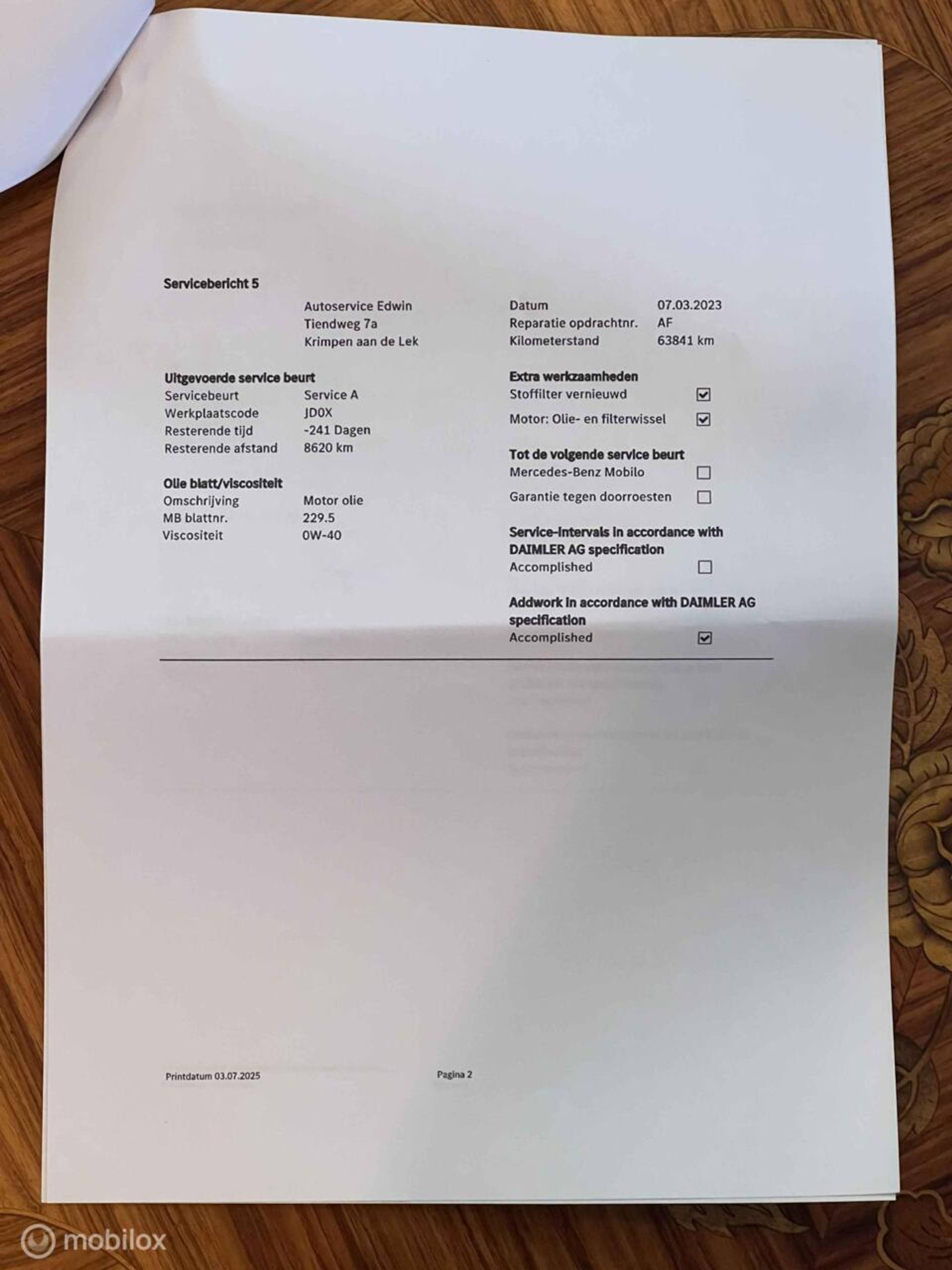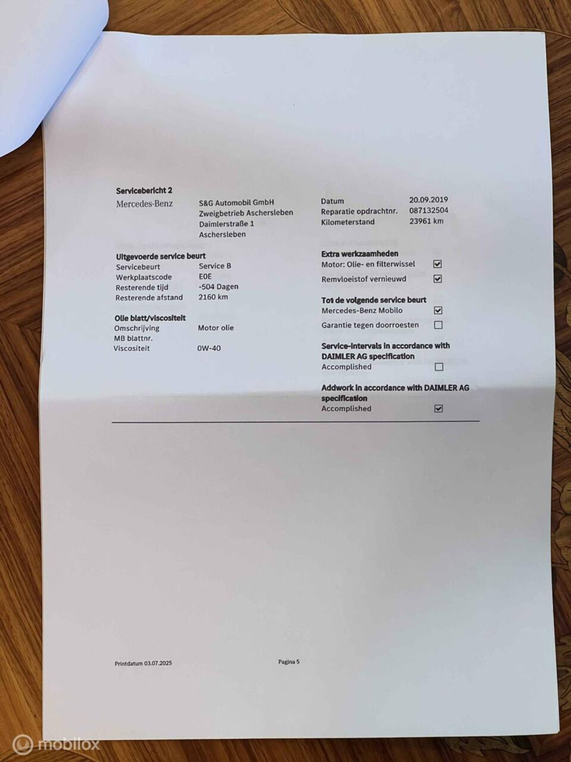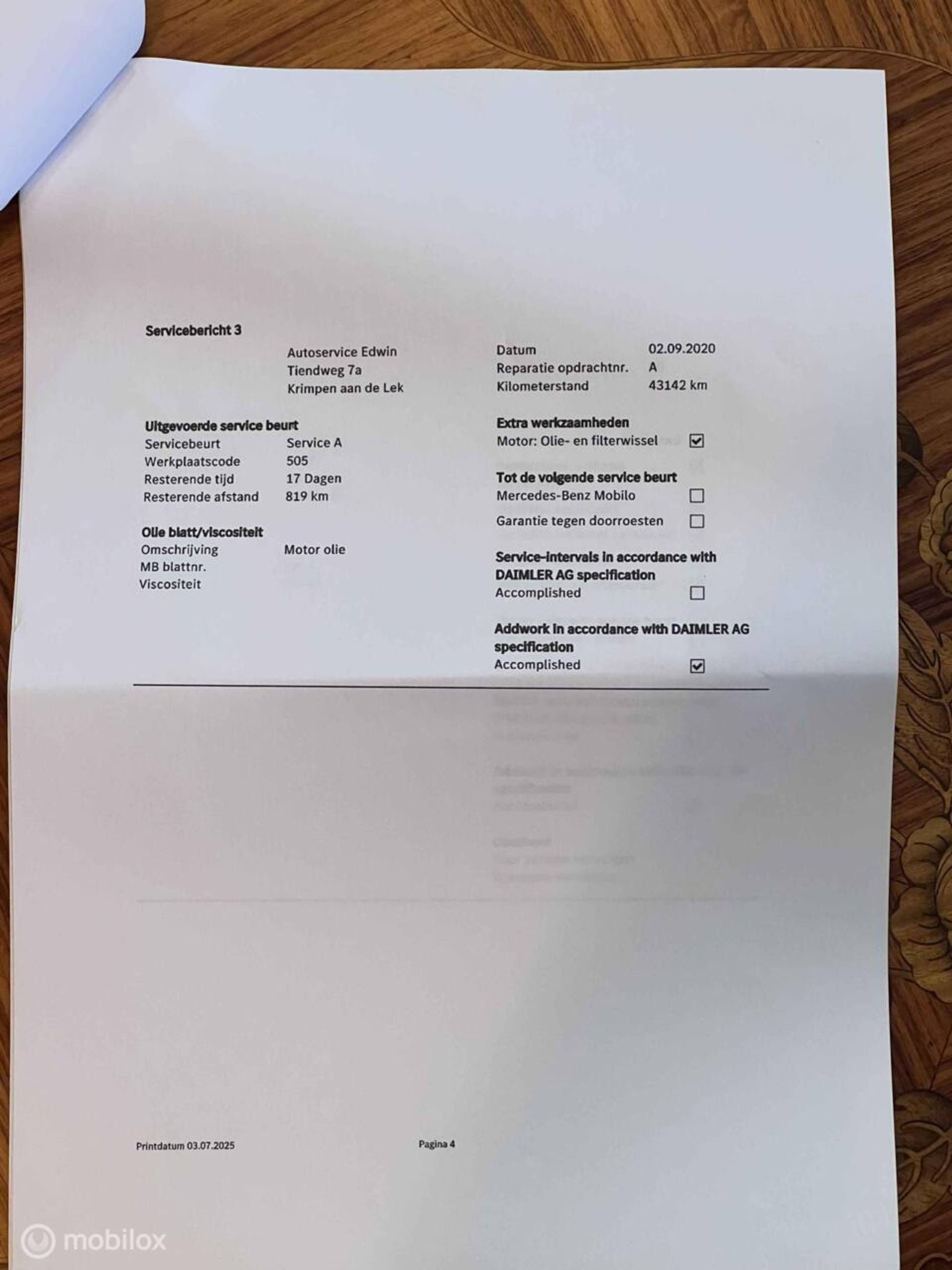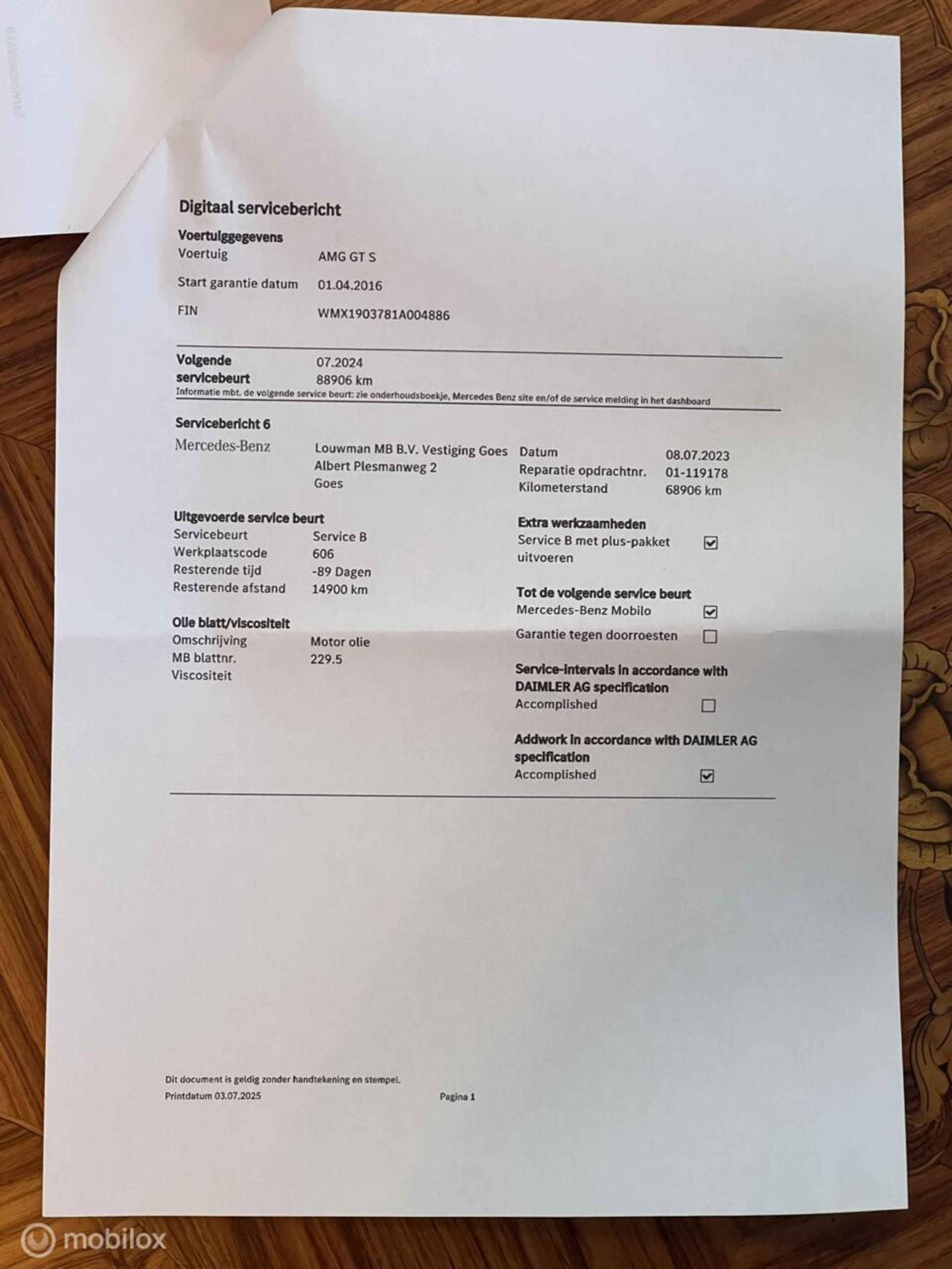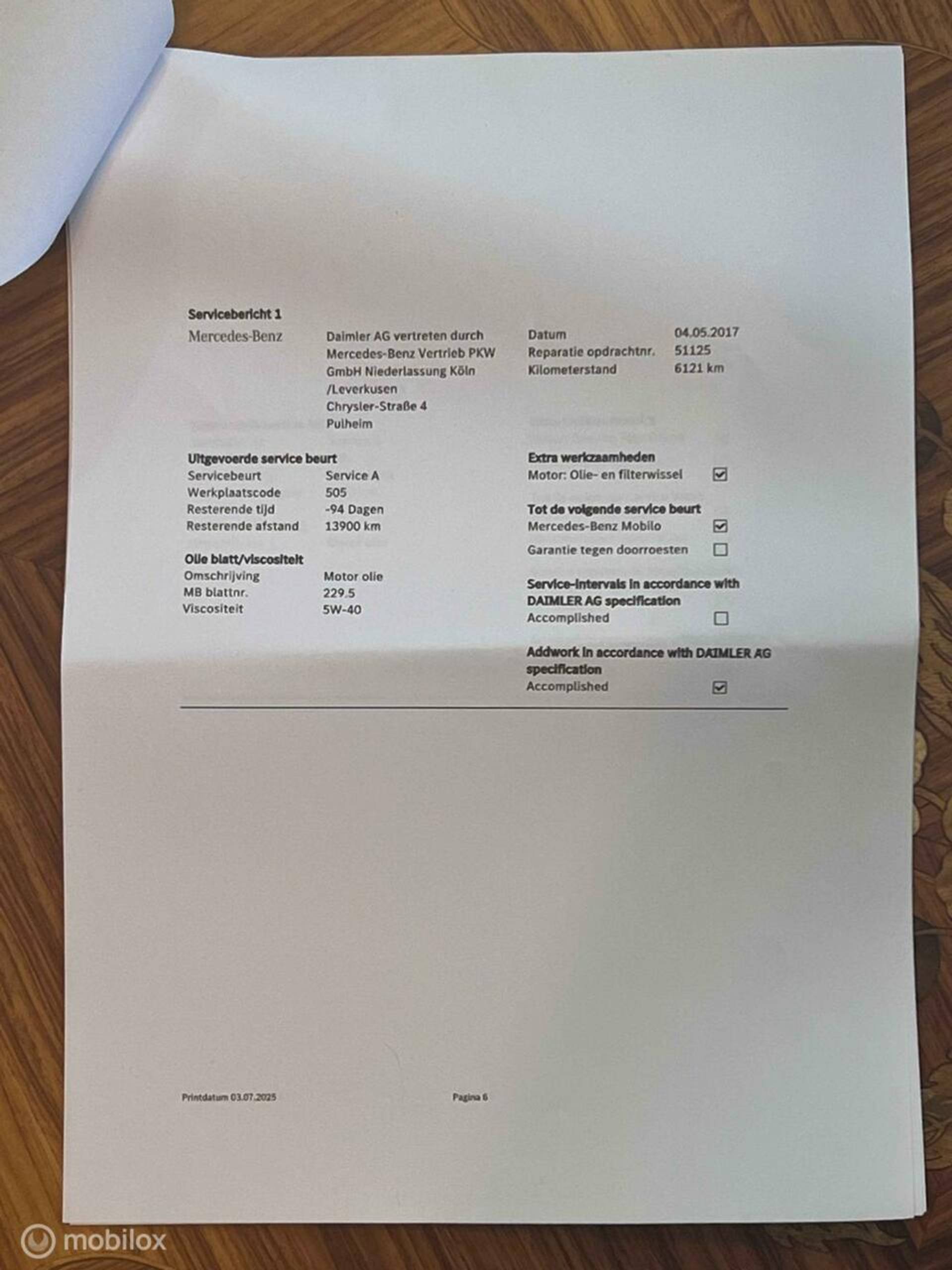 - Onderhoudshistorie aanwezig: Ja