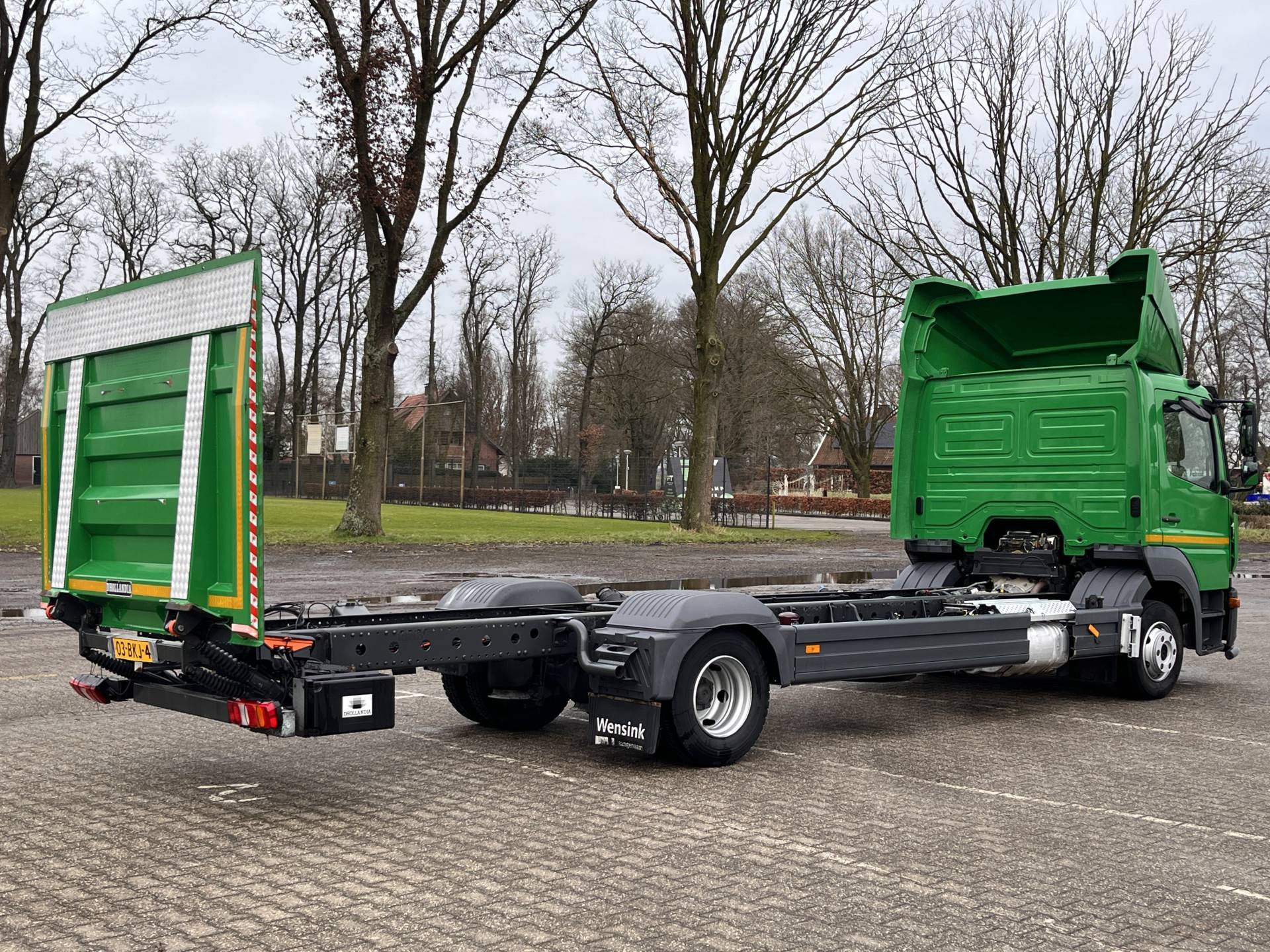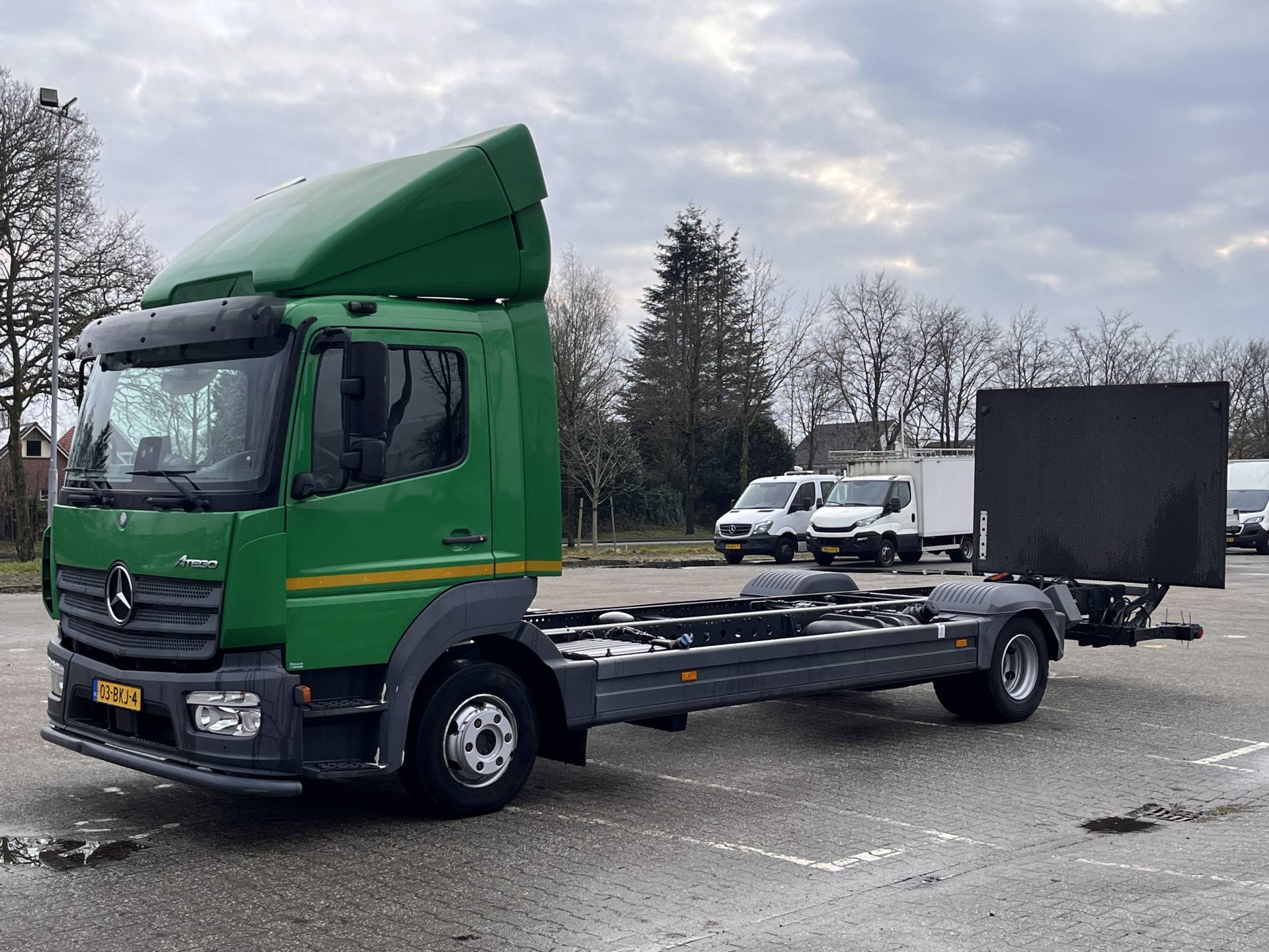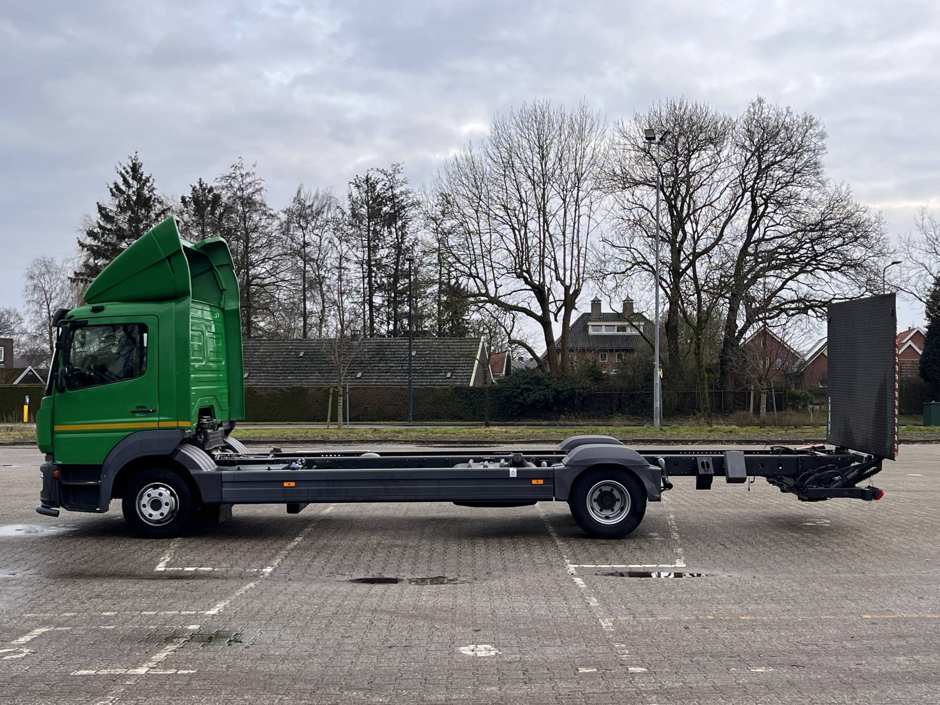 Een zeer nette Mercedes Atego 177pk Chassis cabine Automaat met Airco Cruise controle Laadklep 1500kg 2-Persoons Tachograaf Luchtvering Stuurwielbediening Euro 6