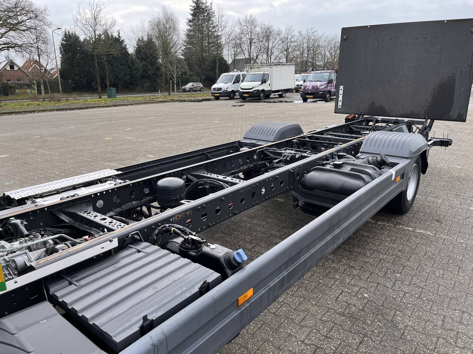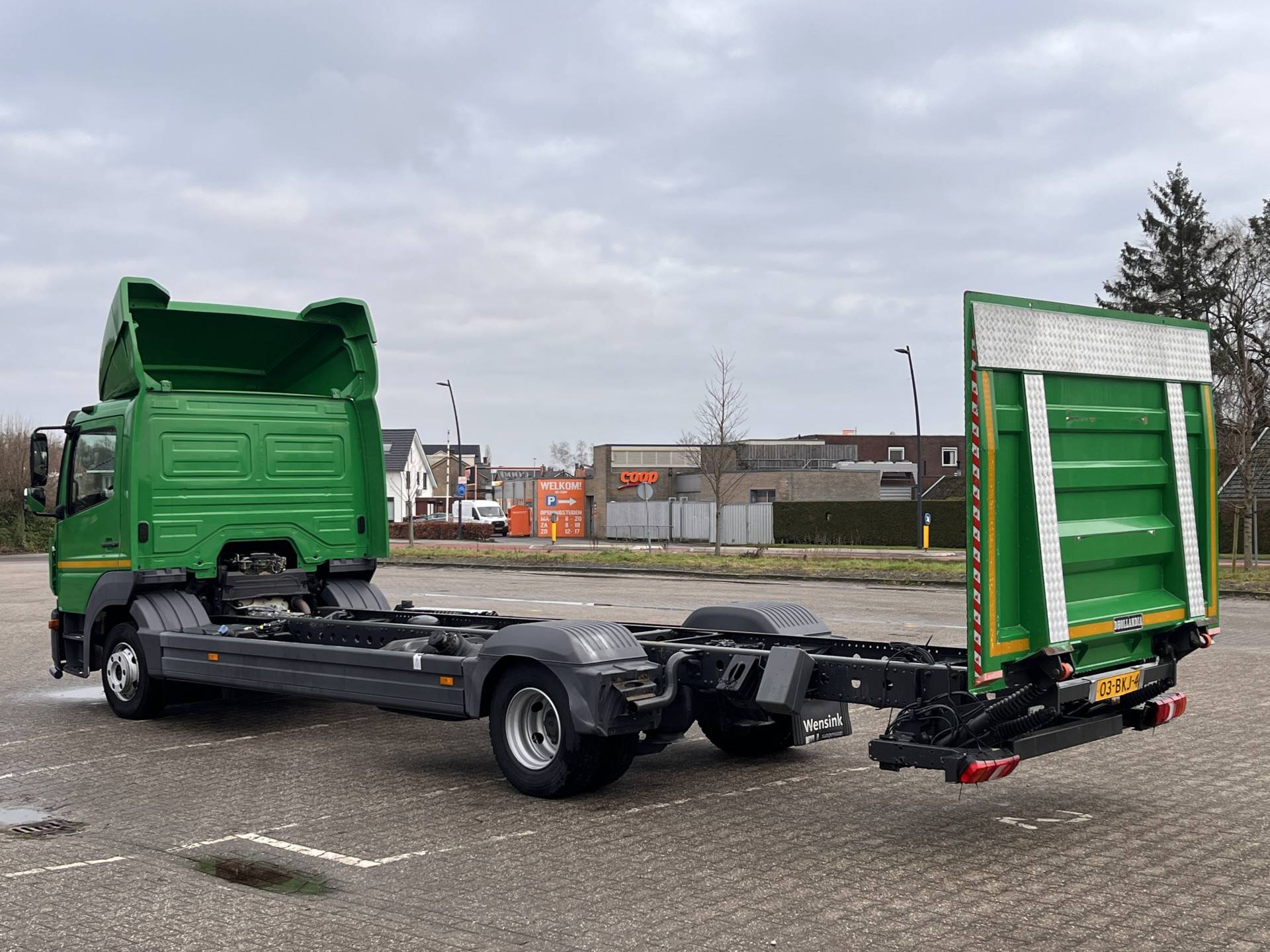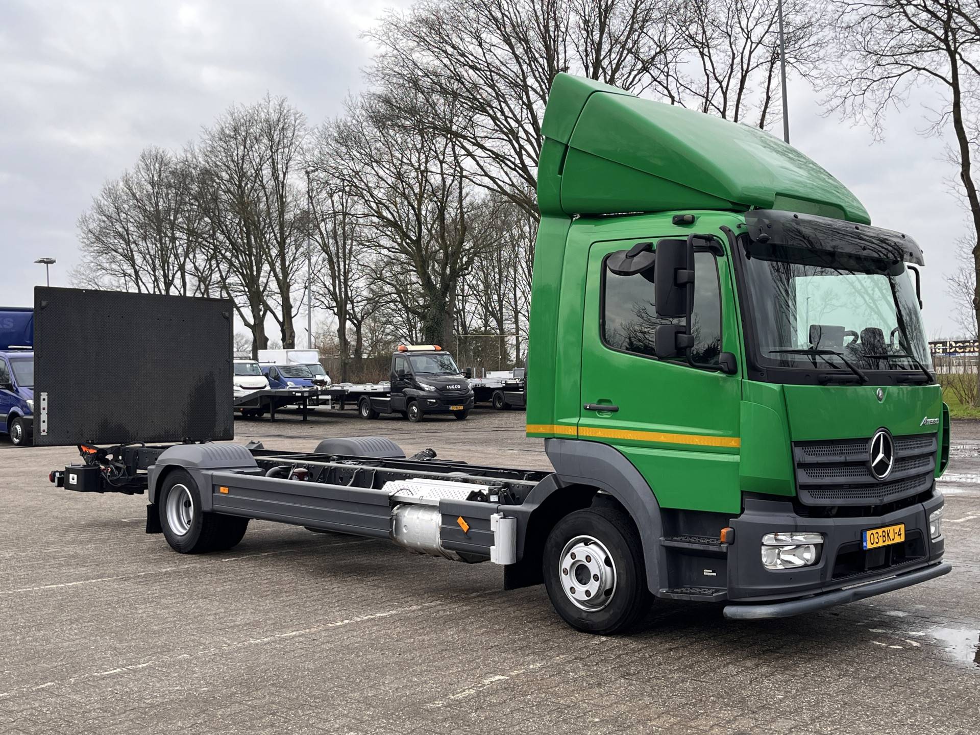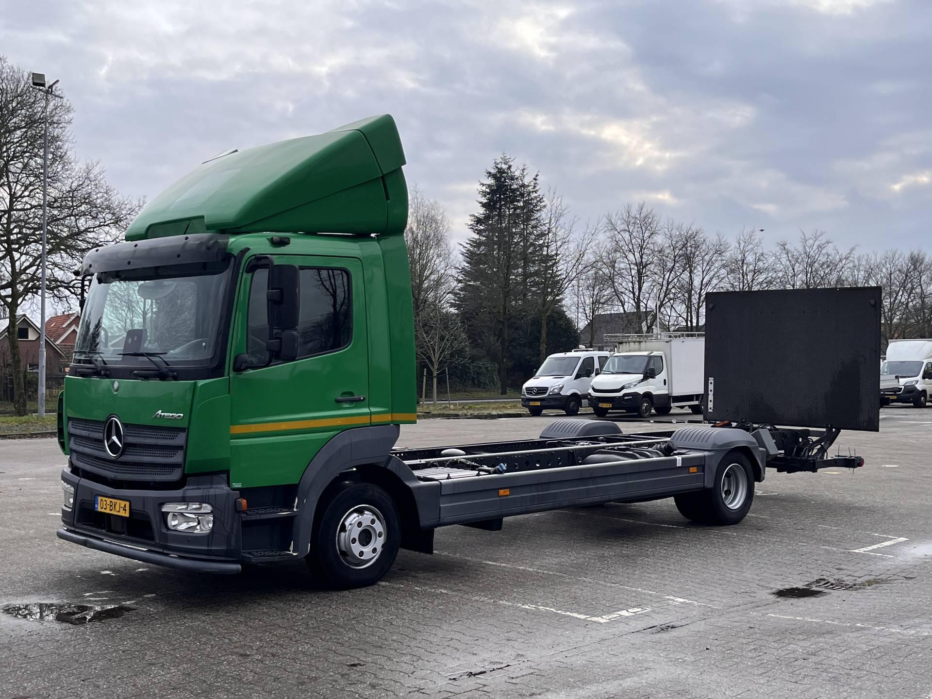 Een zeer nette Mercedes Atego 177pk Chassis cabine Automaat met Airco Cruise controle Laadklep 1500kg 2-Persoons Tachograaf Luchtvering Stuurwielbediening Euro 6