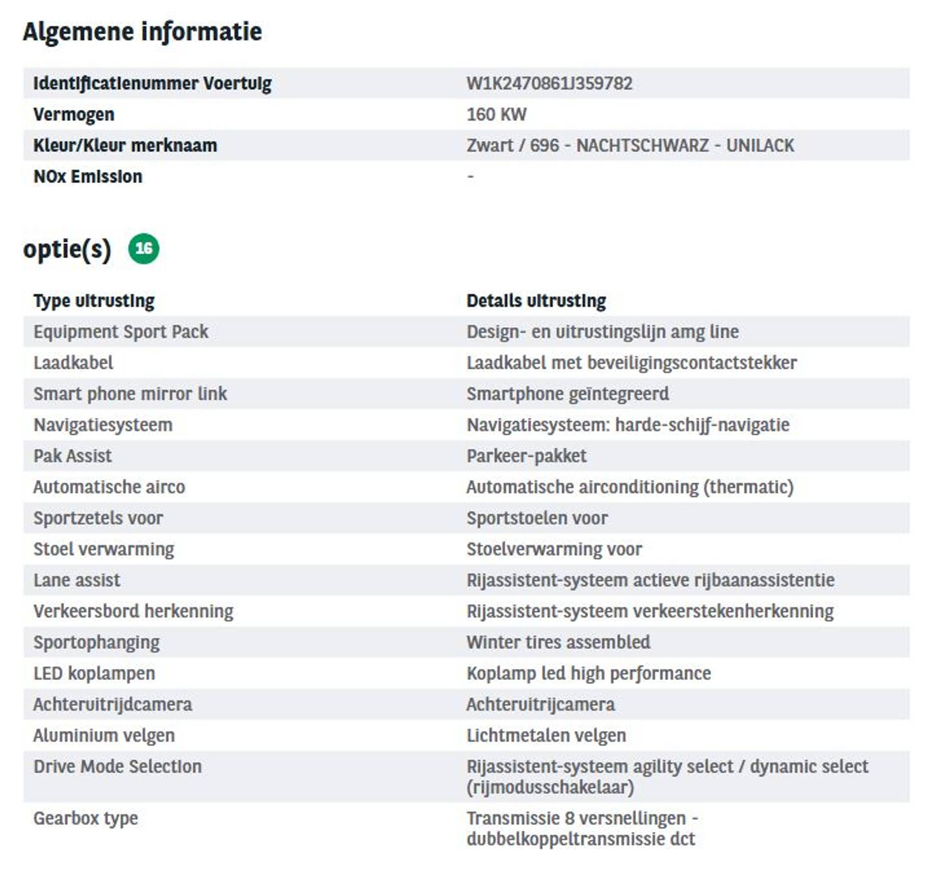 Het kan echter voorkomen dat uit de automatische voertuiginformatie een optie of accessoire naar voren komt die helaas toch niet op de auto aanwezig is.