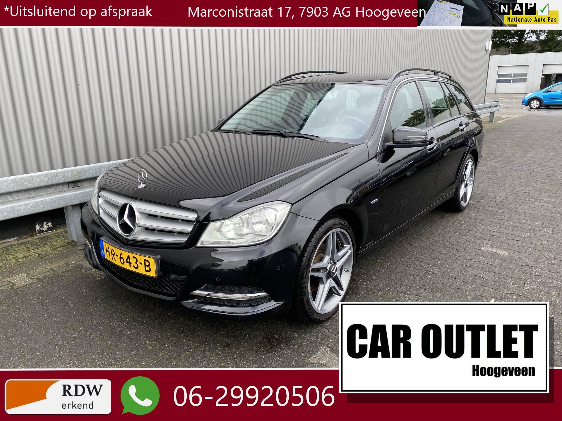 WIJ ZIJN ALLEEN OPEN OP TELEFONISCHE AFSPRAAK. Nette en goed rijdende Mercedes-Benz C-klasse Estate 180 Business Class met o.a. Automatische Klimaatregeling, Navigatiesysteem, Multimediasysteem, Apple CarPlay / Android Auto, Origineel AMG Licht Metaal en Trekhaak. Inruil is uiteraard bespreekbaar.