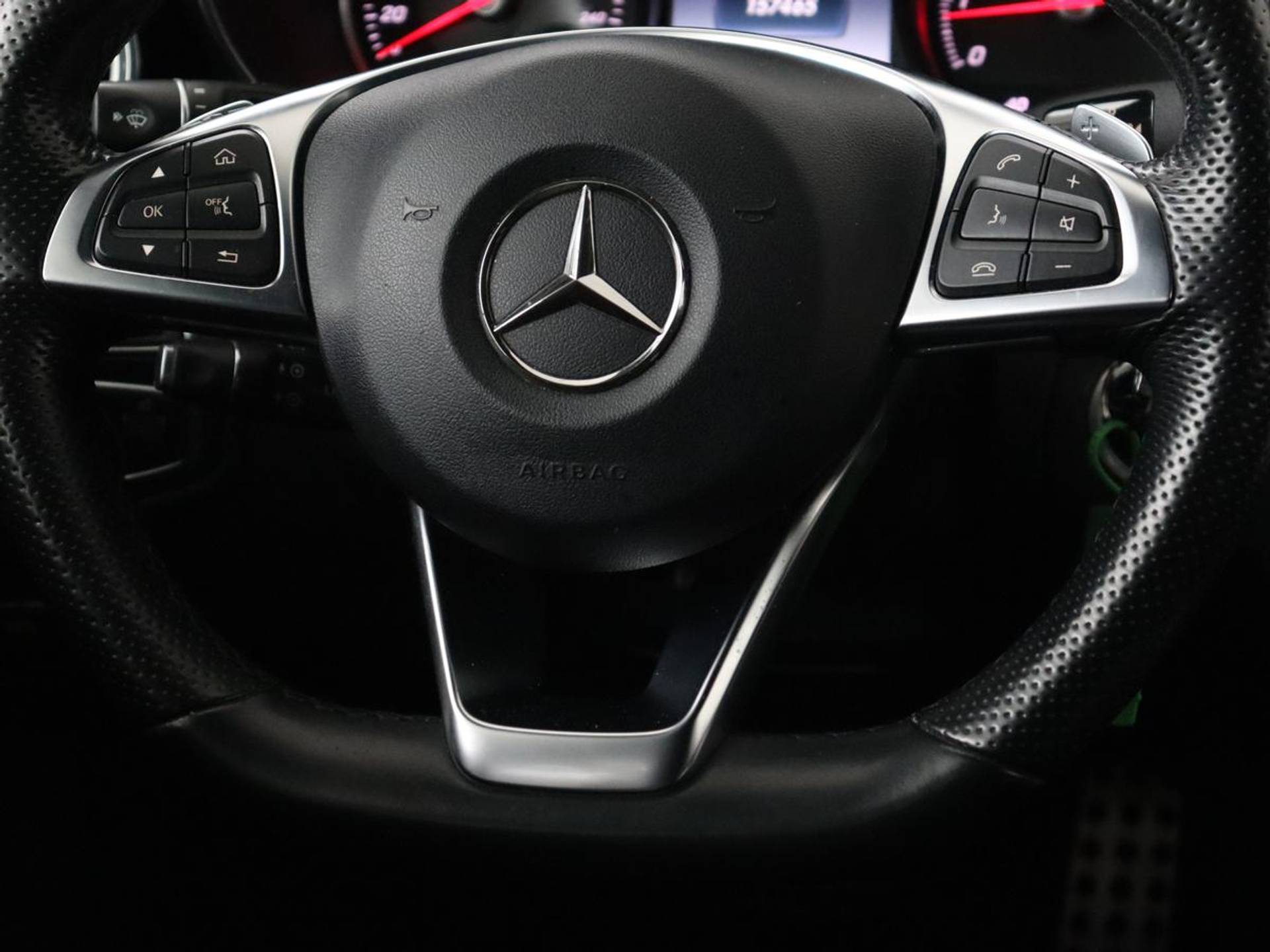 Zoals u van zo'n jonge auto mag verwachten, zijn hier ook de geavanceerde remote services aanwezig. Simpelweg met een app op uw smartphone controleert u op afstand de status van de auto en bedient u diverse functies. Onderweg kunt u veilig genieten van het audio-installatiesysteem en het full map navigatiesysteem. Want in deze Mercedes-Benz bedient u ze vanaf het stuurwiel of met uw stem. Met automatische airconditioning hoeft u alleen de gewenste temperatuur in te stellen. Het systeem doet de rest. Parkeersensoren zijn een handig hulpmiddel om parkeerschades te voorkomen. Het luxeniveau in deze Mercedes-Benz is niet alleen gericht op comfort, maar ook op uw veiligheid. Tal van sensoren helpen u om de omgeving in de gaten te houden. De automatisch inschakelbare verlichting zorgt dat automatisch de verlichting wordt ingeschakeld als het donker wordt, wat bijvoorbeeld in tunnels erg handig is. En de regensensor zet de ruitenwissers aan zonder dat u eraan hoeft te denken. Extra opties op deze auto zijn: sportstuur met schakelpaddels, cruise control en centrale deurvergrendeling met afstandsbediening.