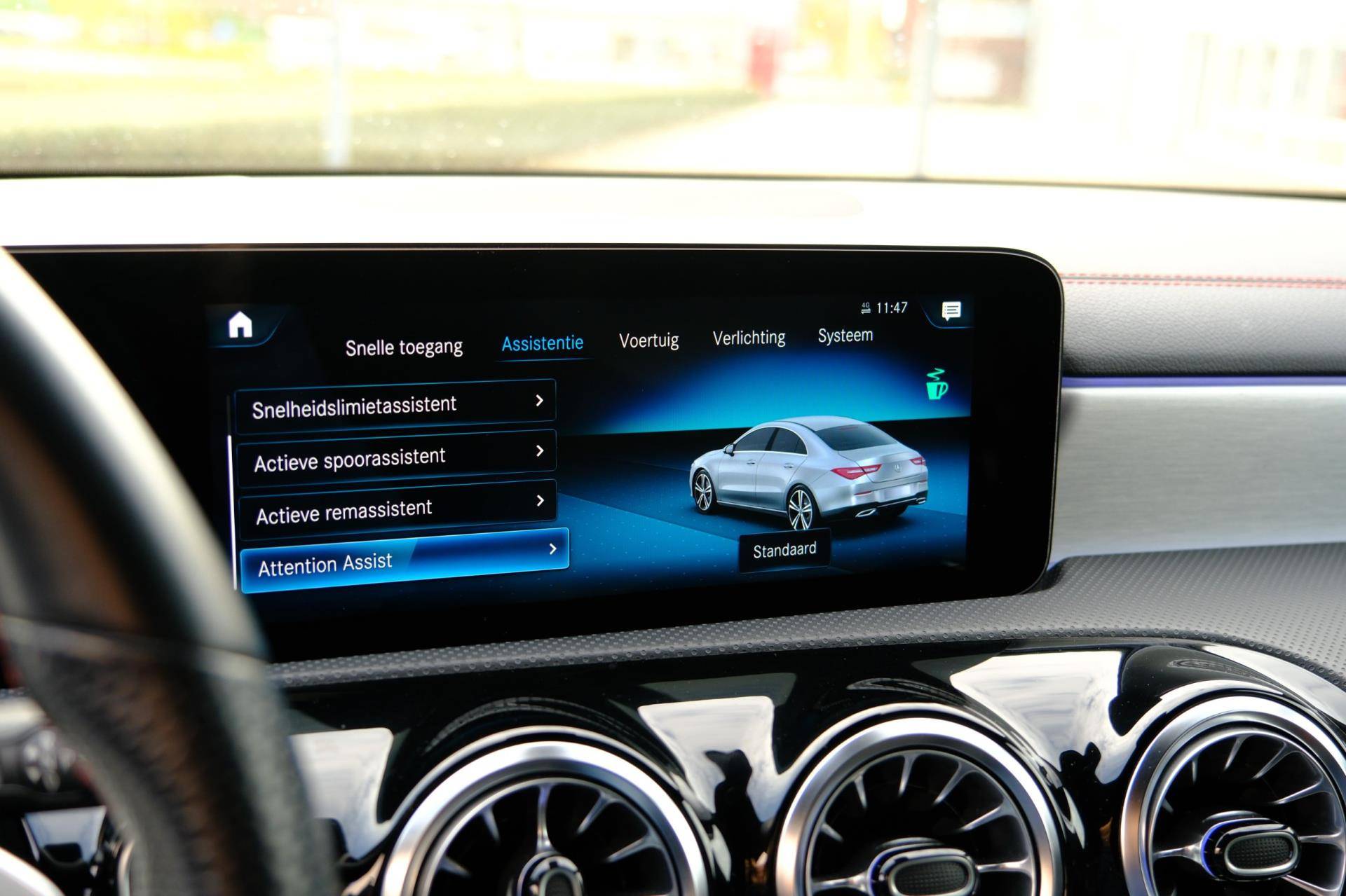 De nieuwste veiligheidssystemen komen in deze Mercedes-Benz CLA-klasse samen. Verkeersborddetectie herkent tijdelijke en permanente verkeersborden langs en boven de weg. Het Lane-keeping systeem zorgt voor een automatisch constante positie binnen de rijstrook. Afdwalen is uitgesloten. Botsingen met een voorligger gebeuren relatief vaak. De forward collision warning slaat tijdig alarm als dat risico ontstaat, zodat u kunt ingrijpen. Dankzij veiligheidsvoorzieningen als accident avoidance system, vermoeidheidsherkenning en bandenspanningcontrolesysteem, bent u steeds veilig onderweg.
