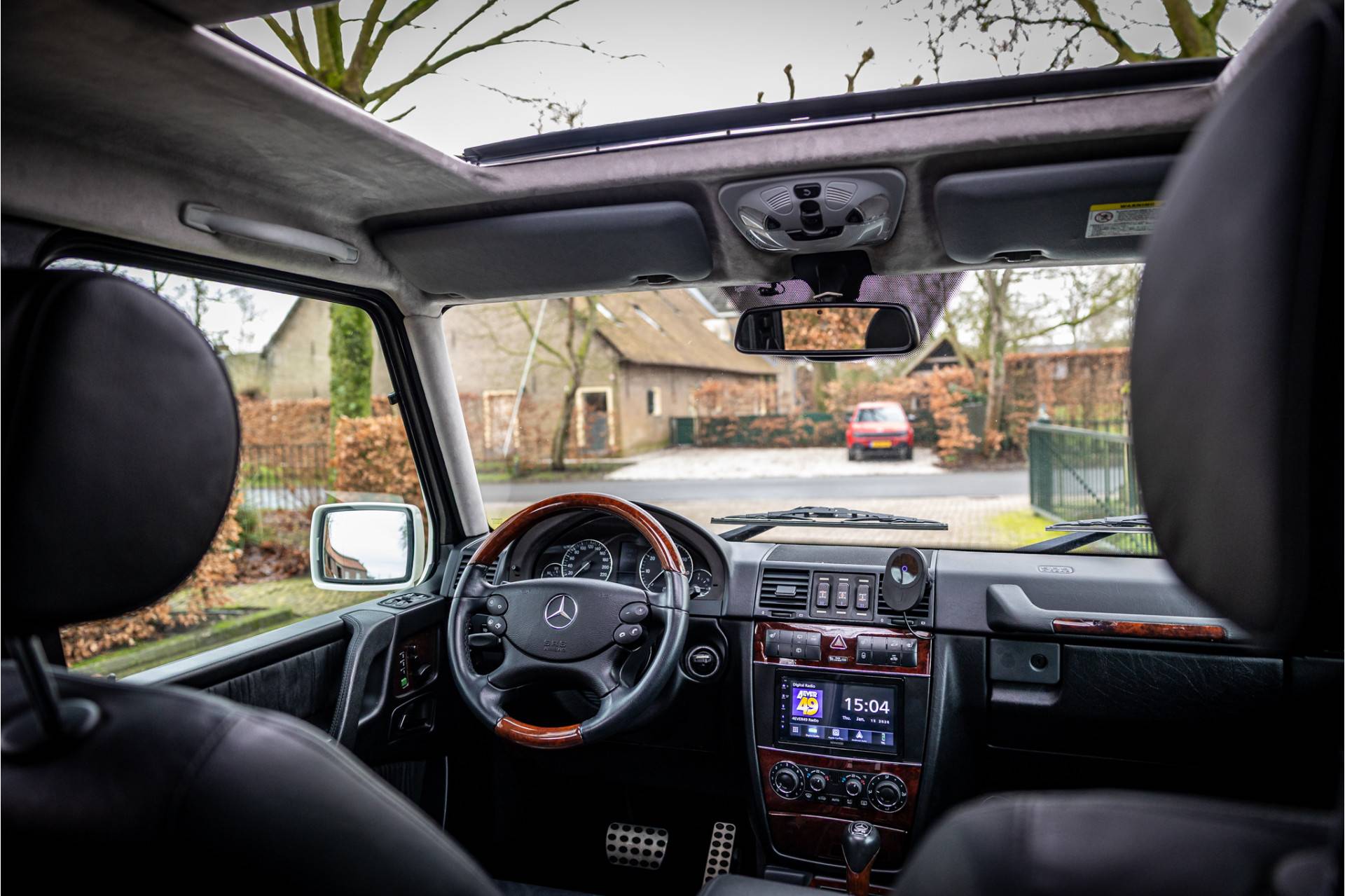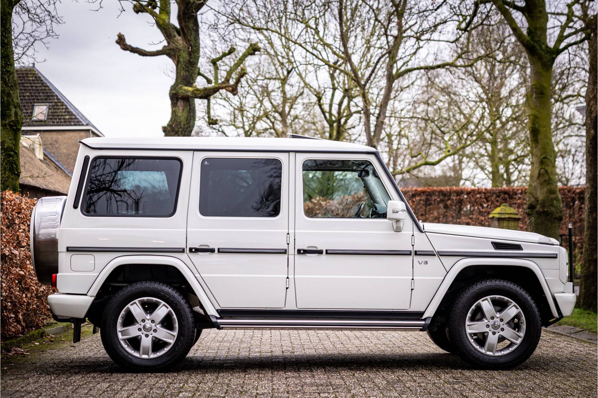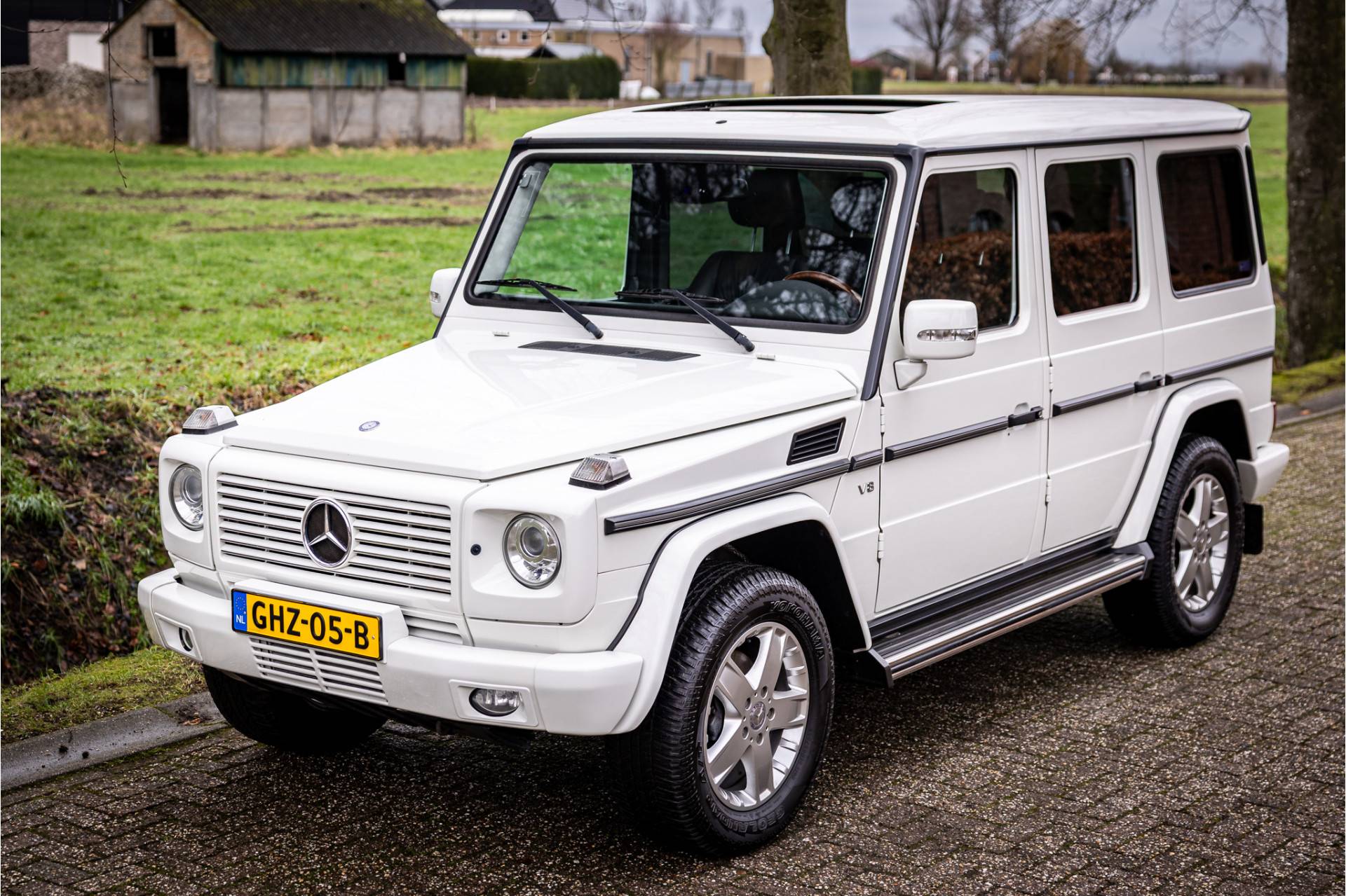 De Mercedes G-klasse is de auto waarmee je alles kunt doen wat je wilt, het is een gezinsauto, terreinwagen en stijlicoon in een. Deze auto is in bijzonder keurige staat en heeft zichtbaar een ontspannen leven gehad, hij staat nog volledig in zijn eerste lak. Aangedreven door de oersterke 500 V8 atmosferische motor die ons allemaal gaat overleven. Lakkleur is Calcietwit en het interieur is voorzien van zwart leder. De vorige eigenaar heeft de hemel volledig opnieuw laten bekleden en deze uitgevoerd in alcantara.