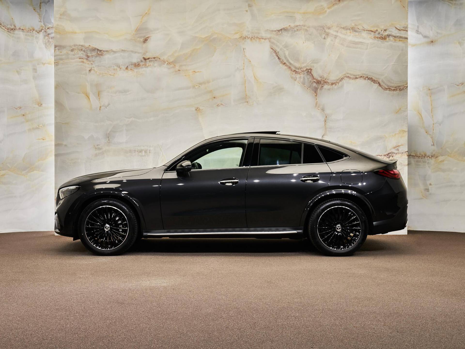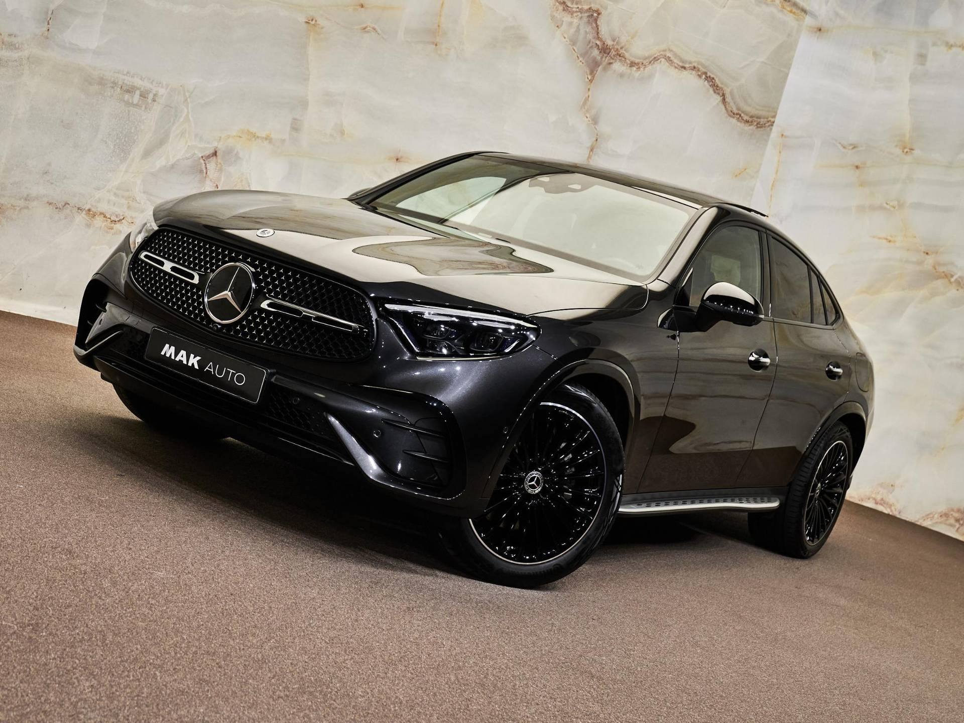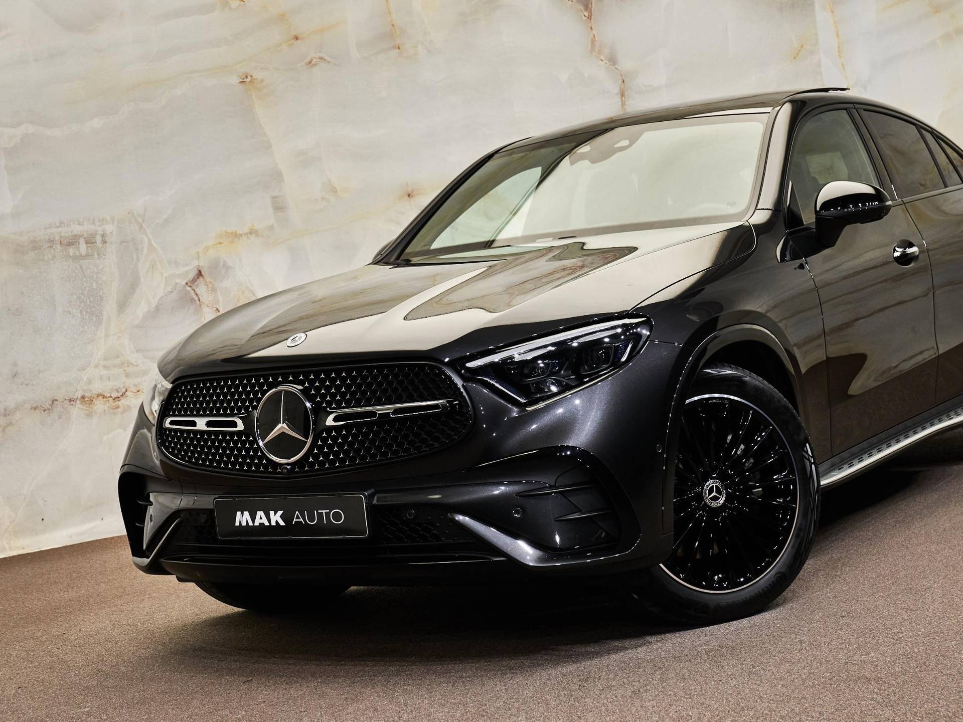 De indrukwekkende uitstraling van deze Coupé komt voort uit de sportieve AMG Line Exterieur (P31), gecombineerd met het elegante Nightpakket (P55) dat zorgt voor donker uitgevoerde details. De auto staat op fraaie 20-inch multispaaks AMG-velgen (RVP) met bredere achterbanden voor extra sportiviteit. Dankzij de verduisterde zij- en achterruiten (840), de treeplanken in aluminiumlook (846) en het Chroompakket exterieur (900) ontstaat een perfect uitgebalanceerd mix van klasse en sportieve uitstraling. De DIGITAL LIGHT-koplampen (318) zijn visueel een hoogtepunt en zorgen bovendien voor maximale veiligheid en technologie in één.