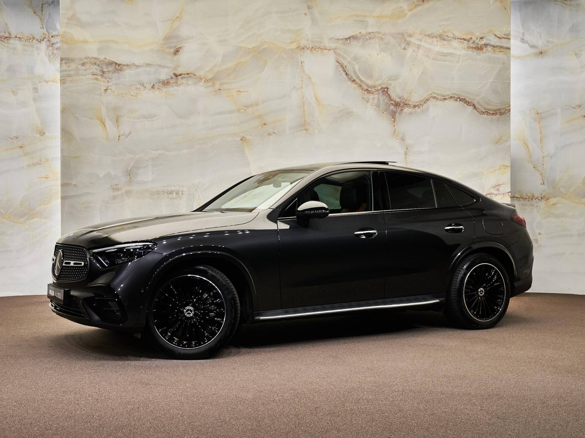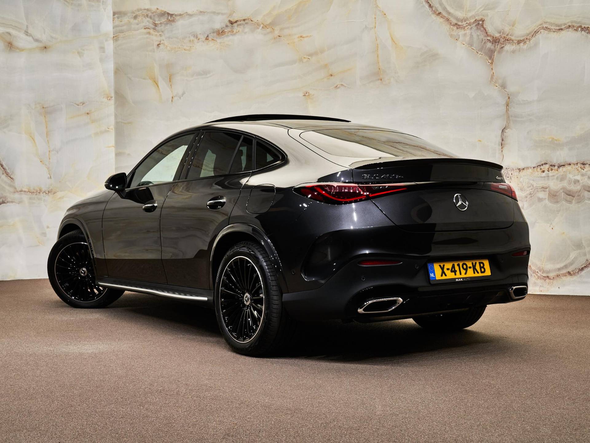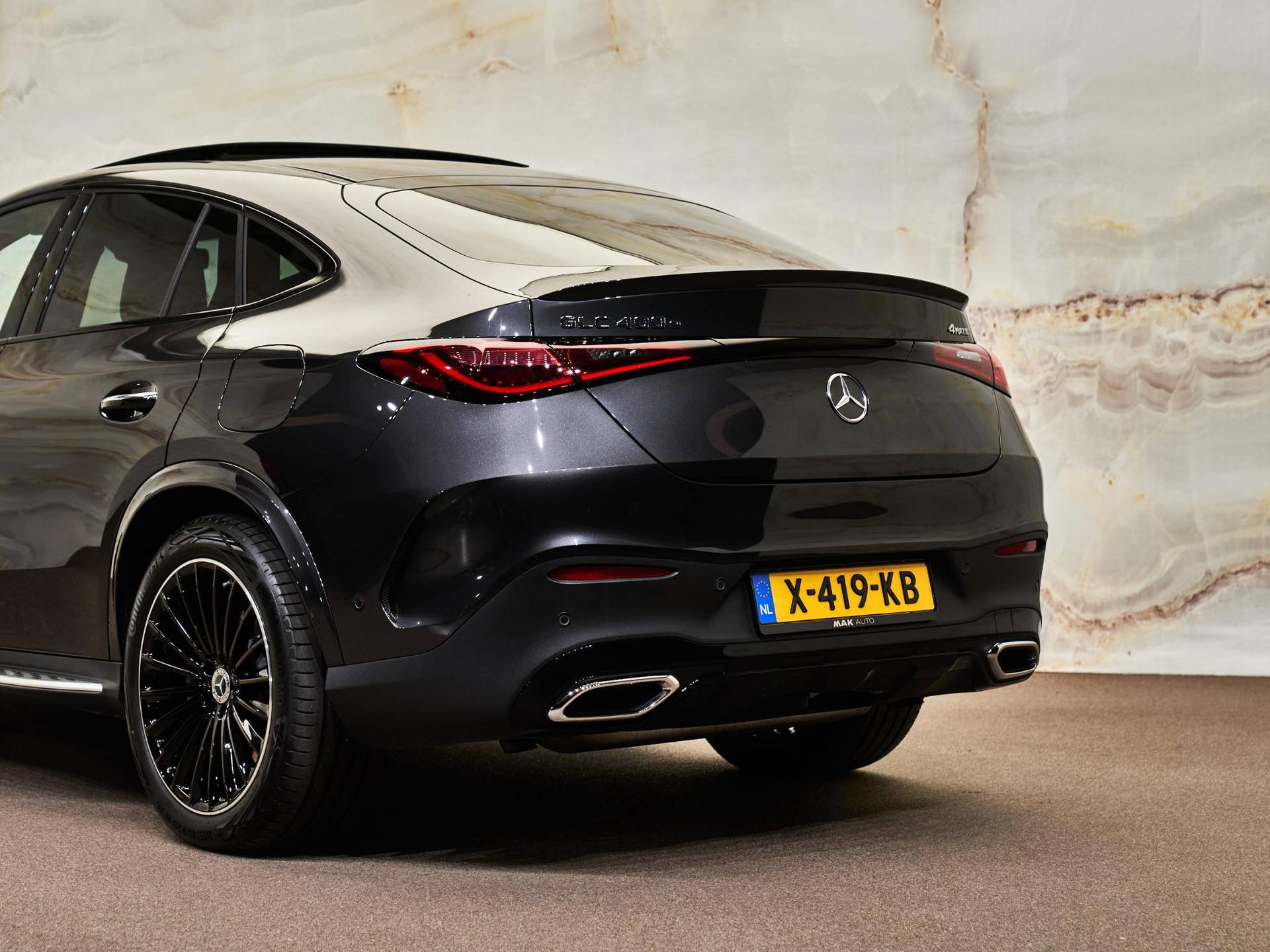 De indrukwekkende uitstraling van deze Coupé komt voort uit de sportieve AMG Line Exterieur (P31), gecombineerd met het elegante Nightpakket (P55) dat zorgt voor donker uitgevoerde details. De auto staat op fraaie 20-inch multispaaks AMG-velgen (RVP) met bredere achterbanden voor extra sportiviteit. Dankzij de verduisterde zij- en achterruiten (840), de treeplanken in aluminiumlook (846) en het Chroompakket exterieur (900) ontstaat een perfect uitgebalanceerd mix van klasse en sportieve uitstraling. De DIGITAL LIGHT-koplampen (318) zijn visueel een hoogtepunt en zorgen bovendien voor maximale veiligheid en technologie in één.