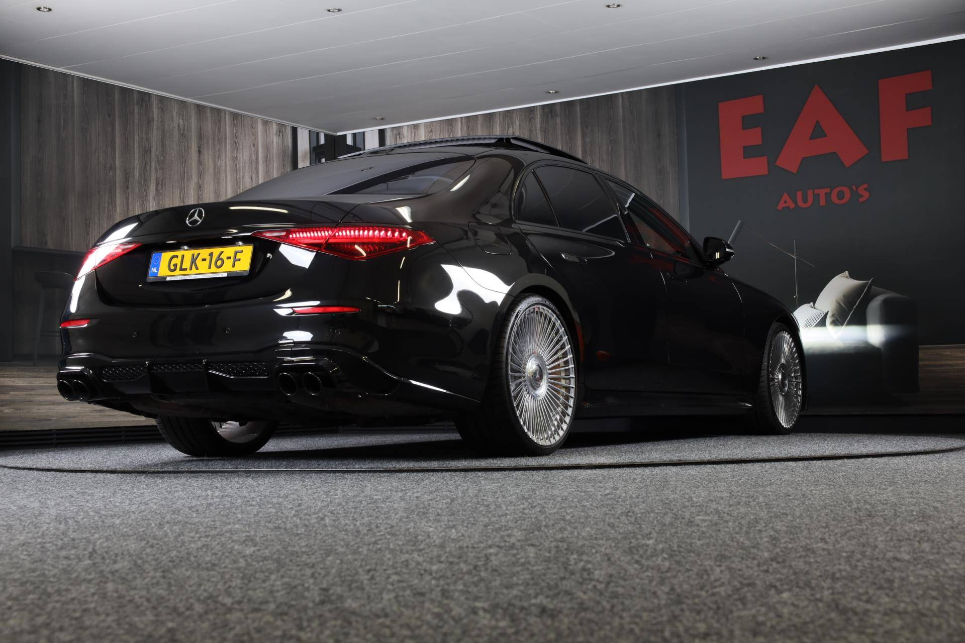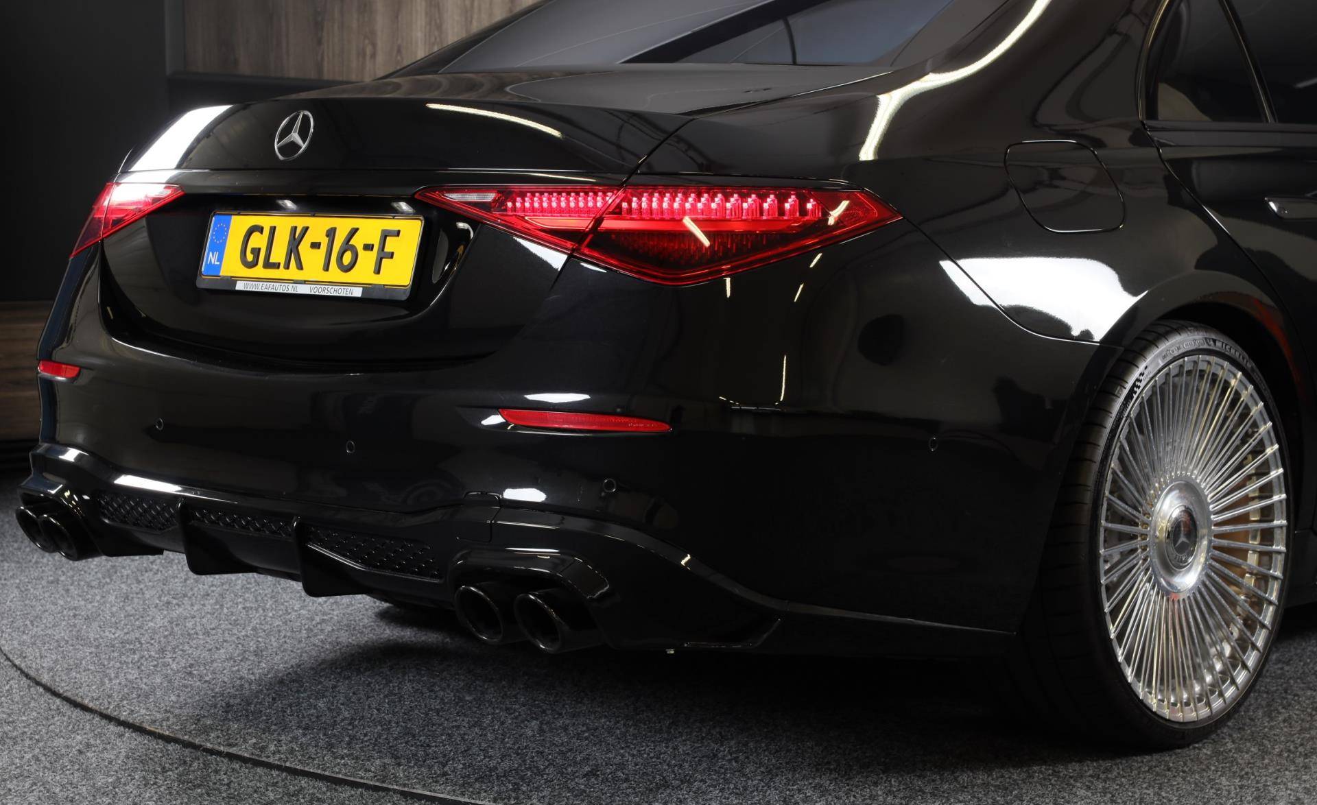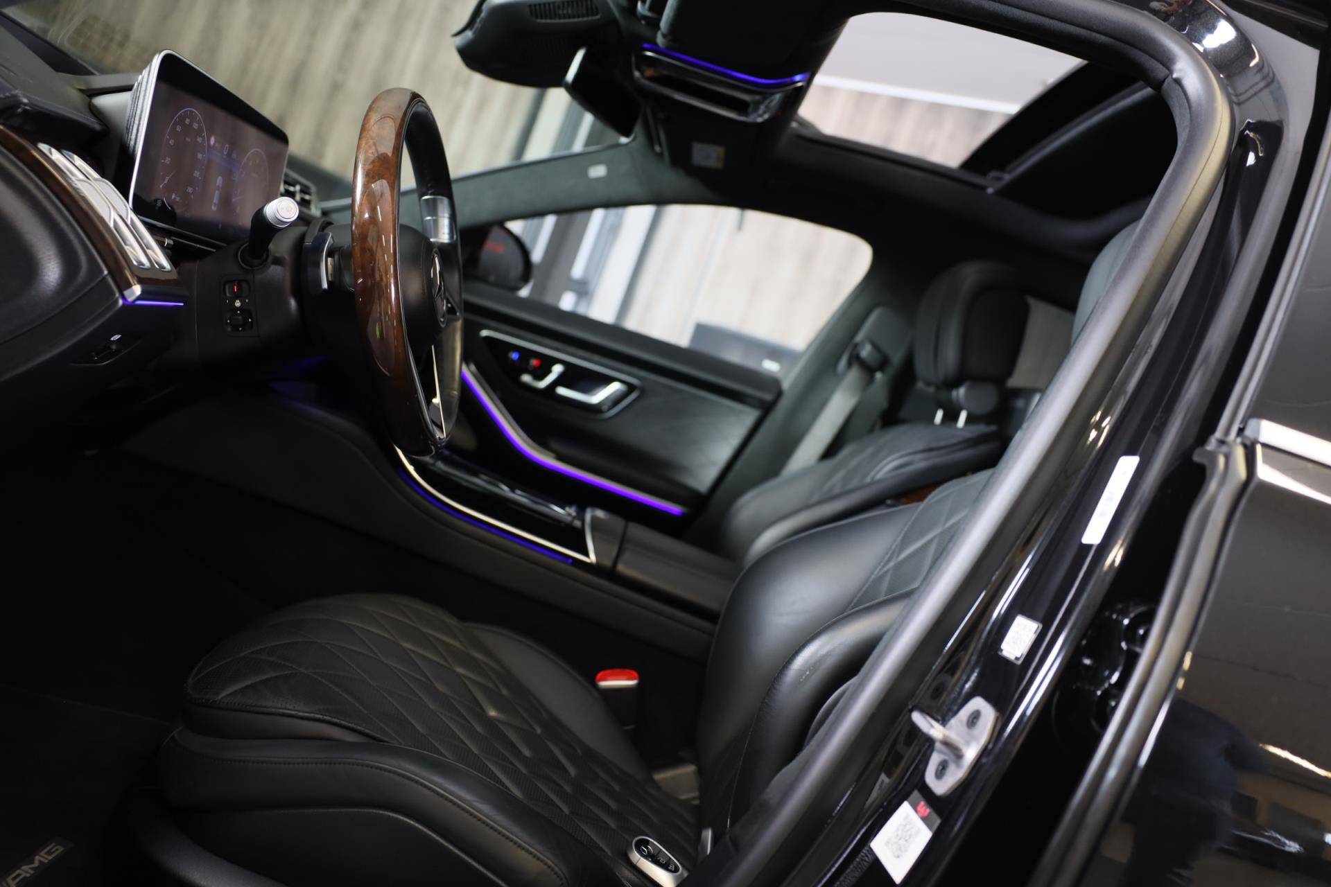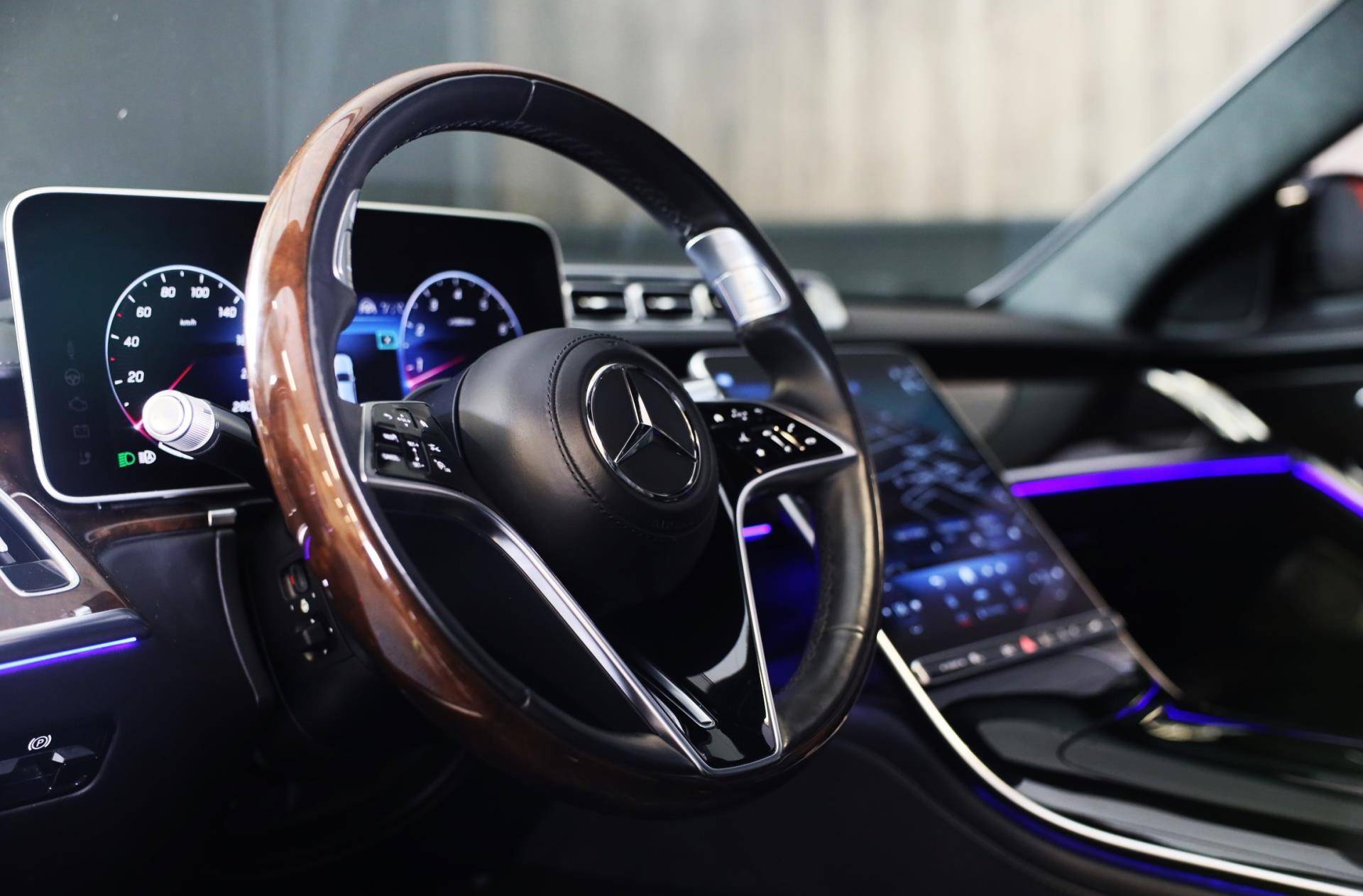 De Mercedes-Benz S-klasse vertegenwoordigt het beste van degelijk Duits design. Als ook de uitstraling een beetje pittig mag, komt de AMG Line Exterieur mooi van pas. Een krachtige motor geeft deze auto zijn sportieve prestaties. Dankzij de luchtvering hebben alle vier de wielen optimaal contact met de weg. En ondertussen elimineert ze het effect van oneffenheden. De vierwielaandrijving is niet alleen heel prettig op onverharde wegen en nat wegdek, maar ook als u de bergen in gaat, bijvoorbeeld op wintersport. Leren bekleding versterkt de topklasse uitstraling van het interieur. Ongeacht hoe koud het buiten is, het verwarmbare stuurwiel samen met de achterbankverwarming zorgt ervoor dat iedereen in de auto zich snel opwarmt. U past de stoelen moeiteloos aan, ze zijn elektrisch in te stellen en hebben bovendien een geheugen. Voel die ruimte eens! Lekker veel licht door het elektrisch bediende glazen panoramadak. Ook open dak, een elektrisch bedienbare achterklep, elektrische zonnerollo voor de achterruit, 22 inch lichtmetalen velgen, LED koplampen en AMG Line Exterieur zijn aan boord.