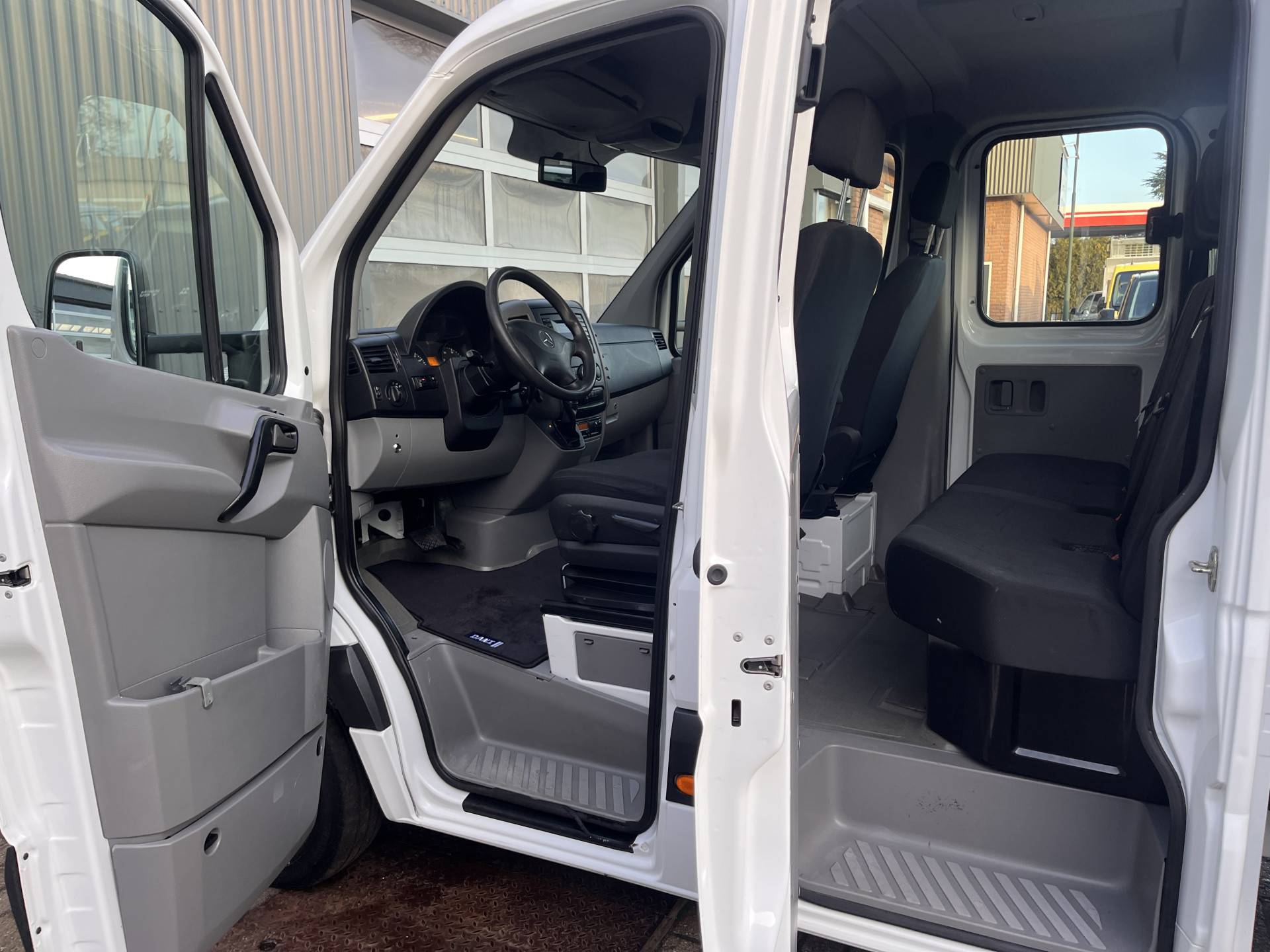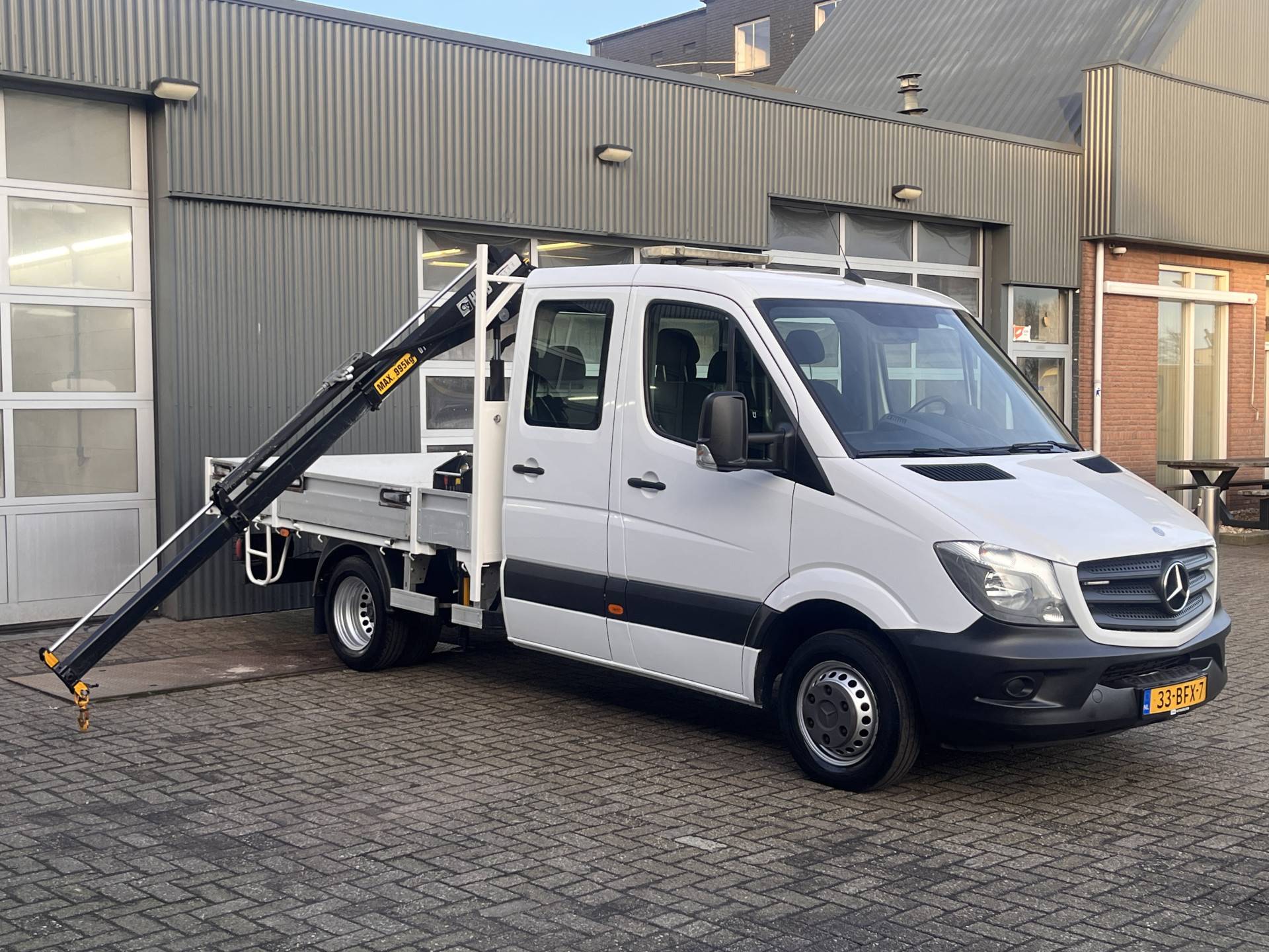 Een zeer nette Mercedes Sprinter 513 CDI 130pk Dubbele cabine Hiab Laadkraan 017T2 Trekhaak 2000 kg Airco 6 persoons uitvoering Open laadbak Pick-up Euro 6 Bakwagen P-up Tachograaf 1e eigenaar ex gemeente